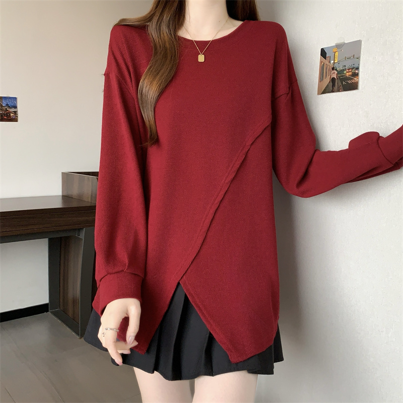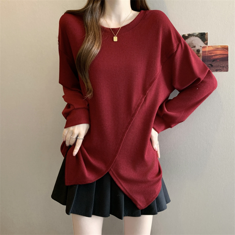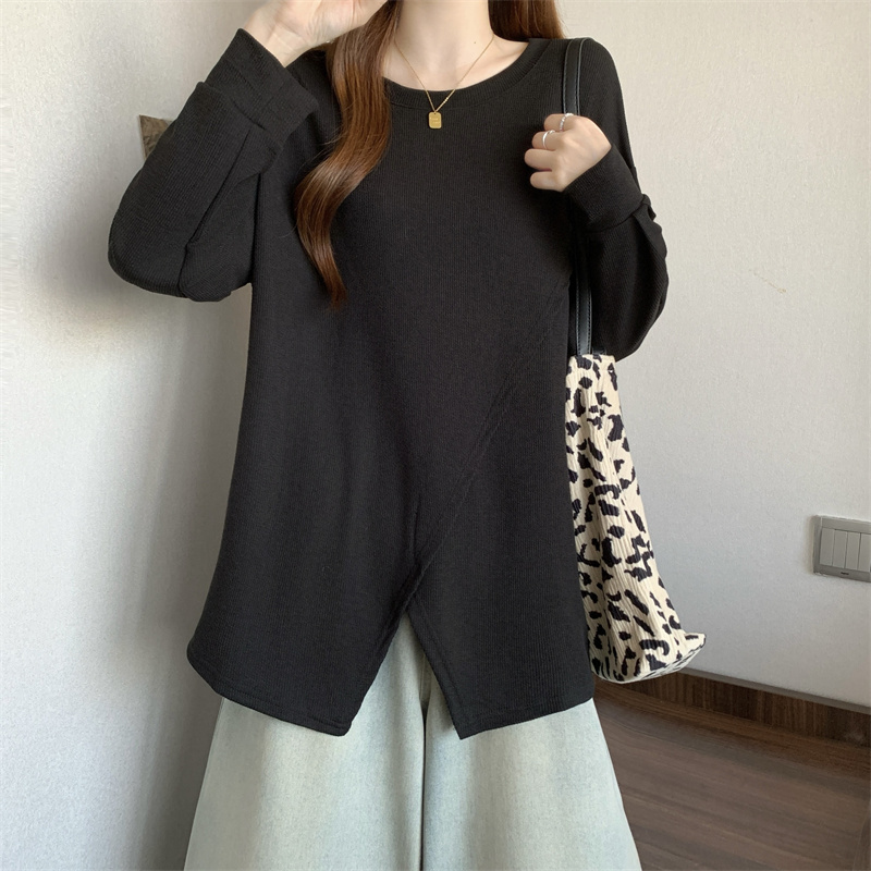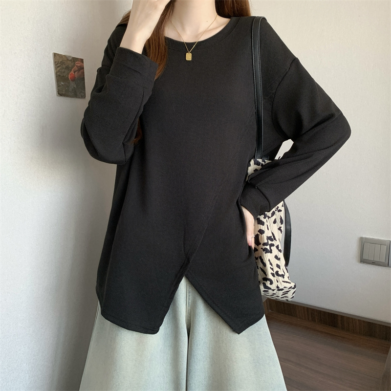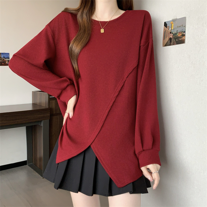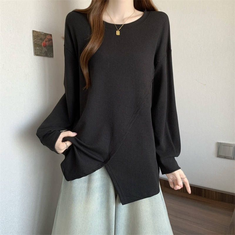 MY15992# 大码胖MM 设计感不规则长袖T恤洋气百搭遮肉上衣女裝貨源服裝批發
