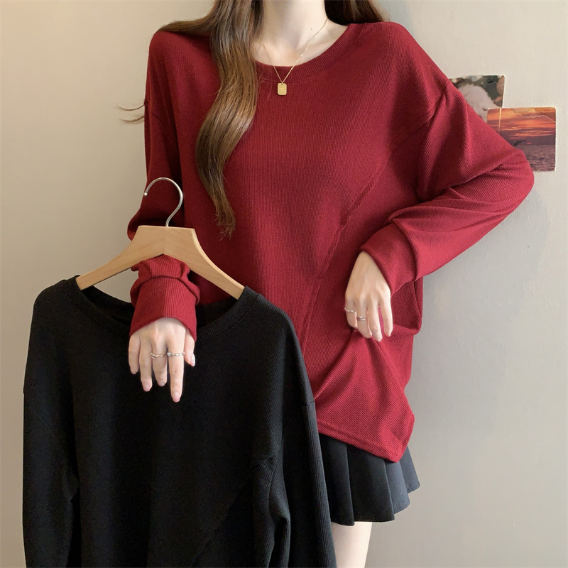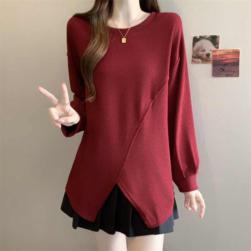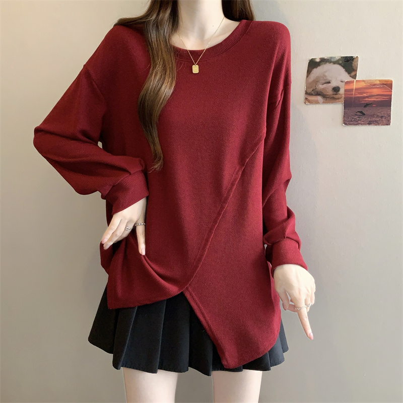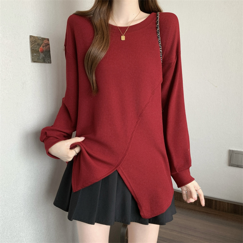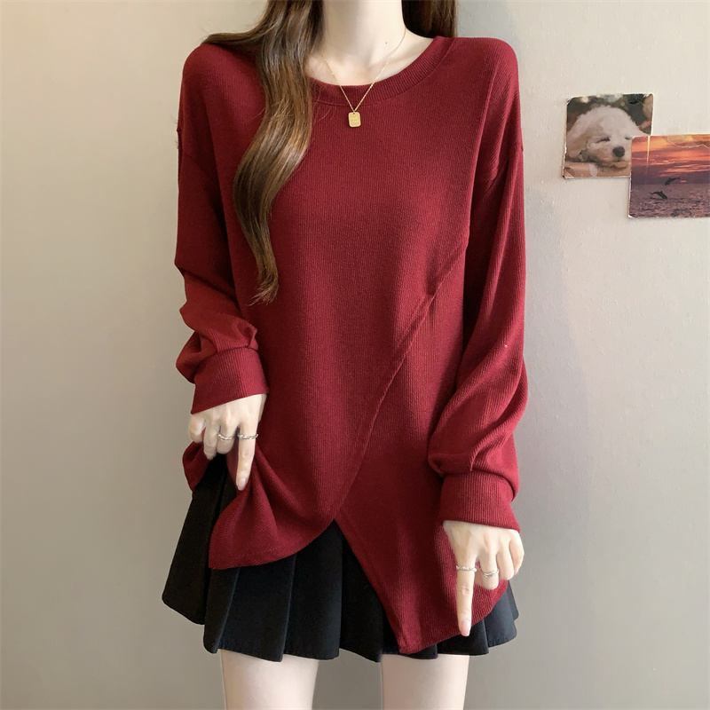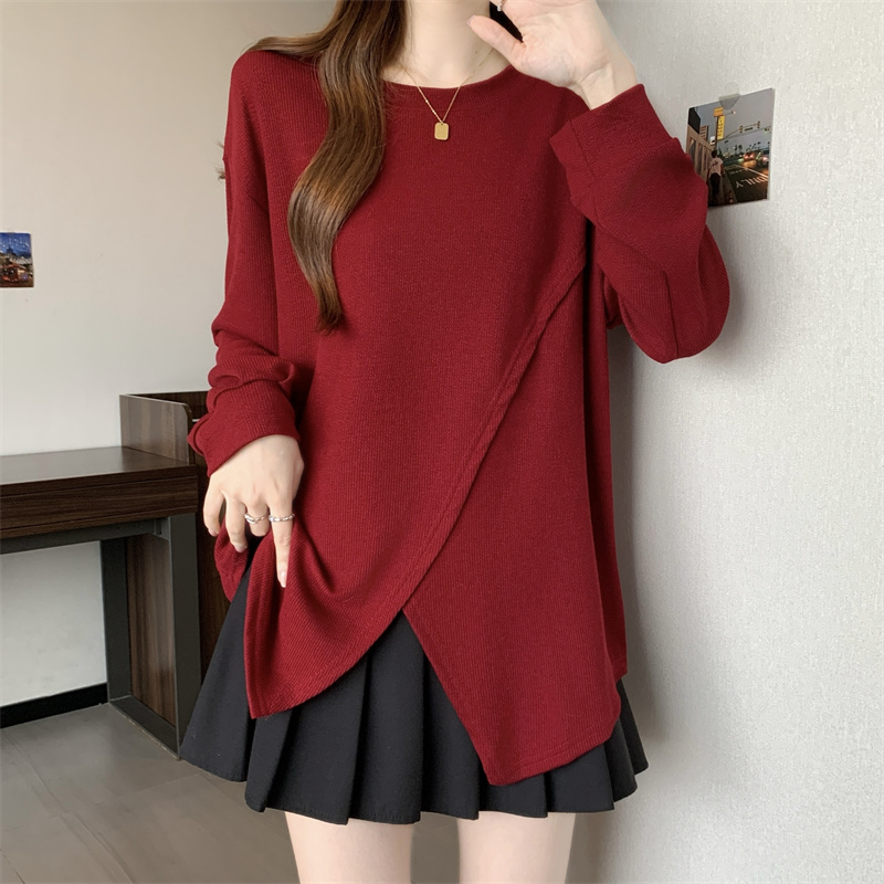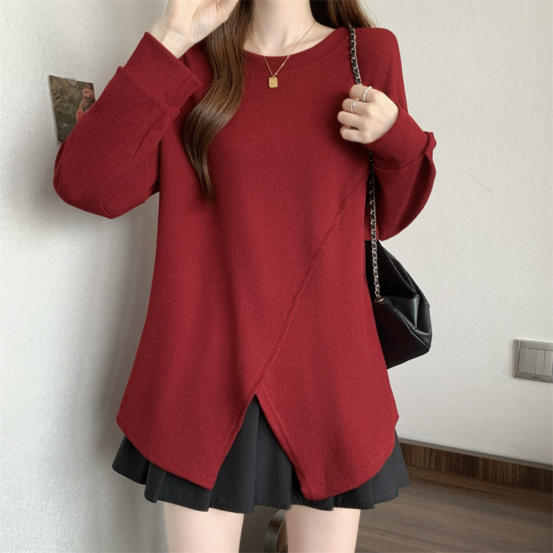 MY15992# 大码胖MM 设计感不规则长袖T恤洋气百搭遮肉上衣女裝貨源服裝批發