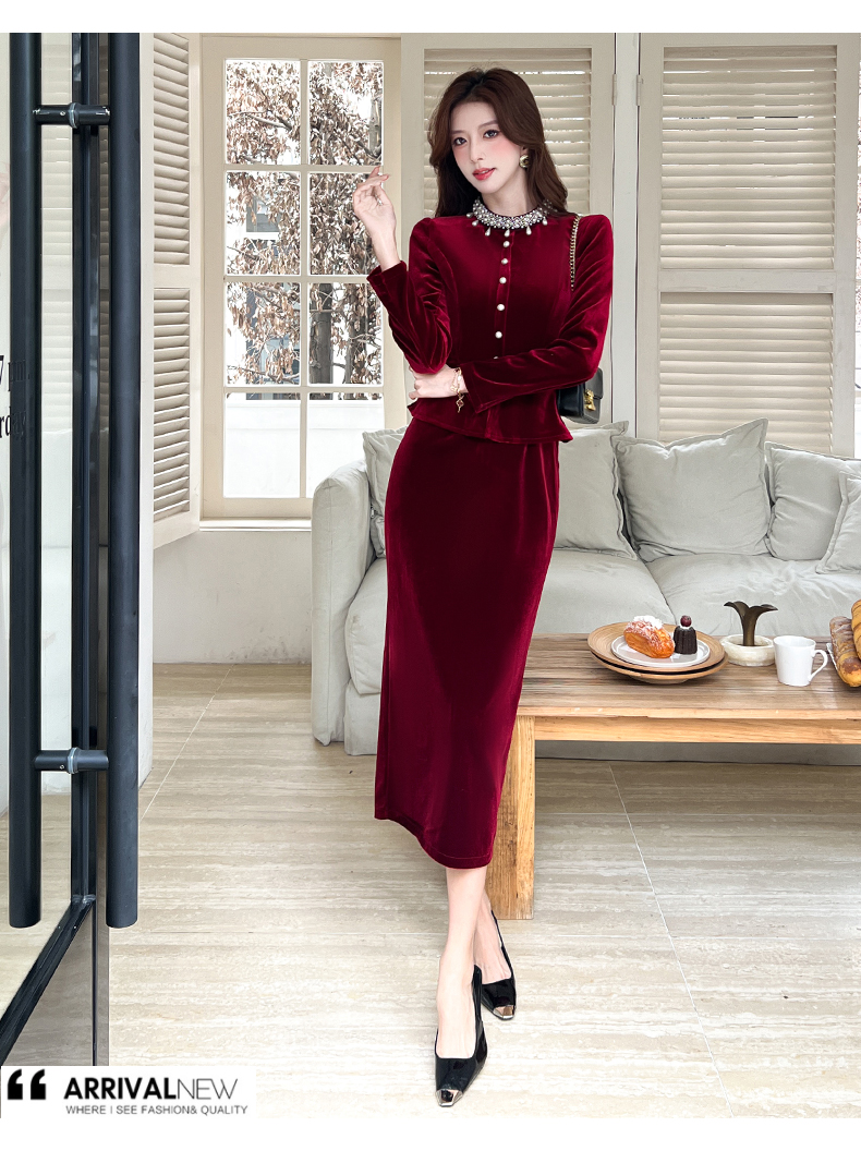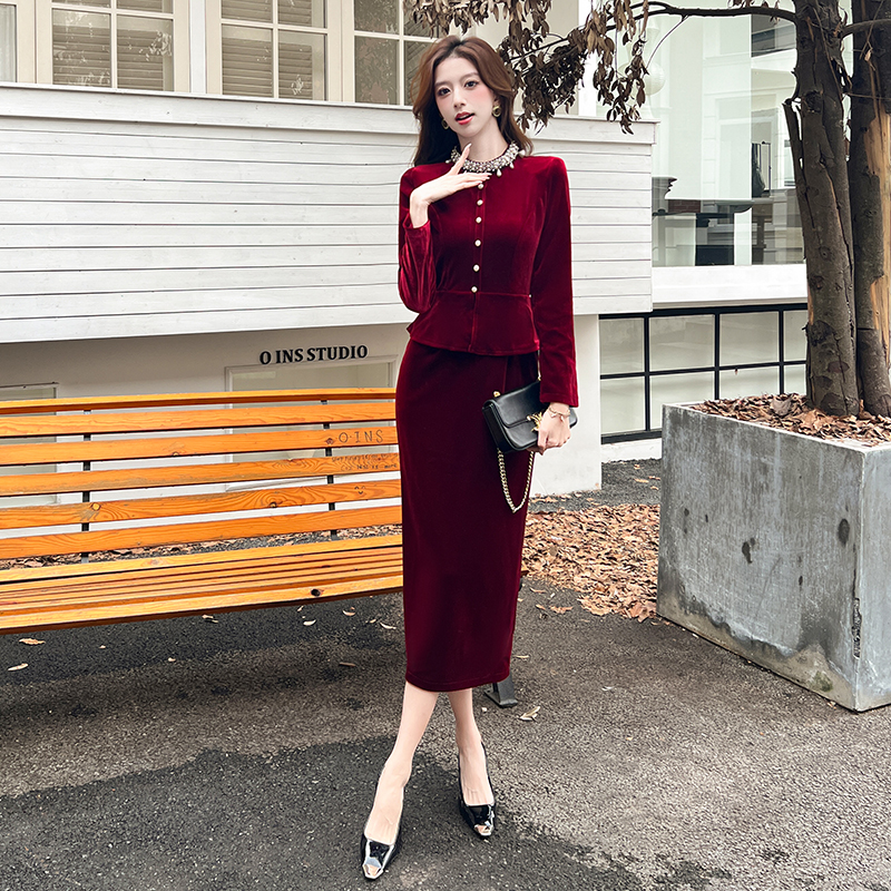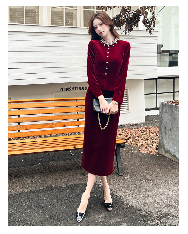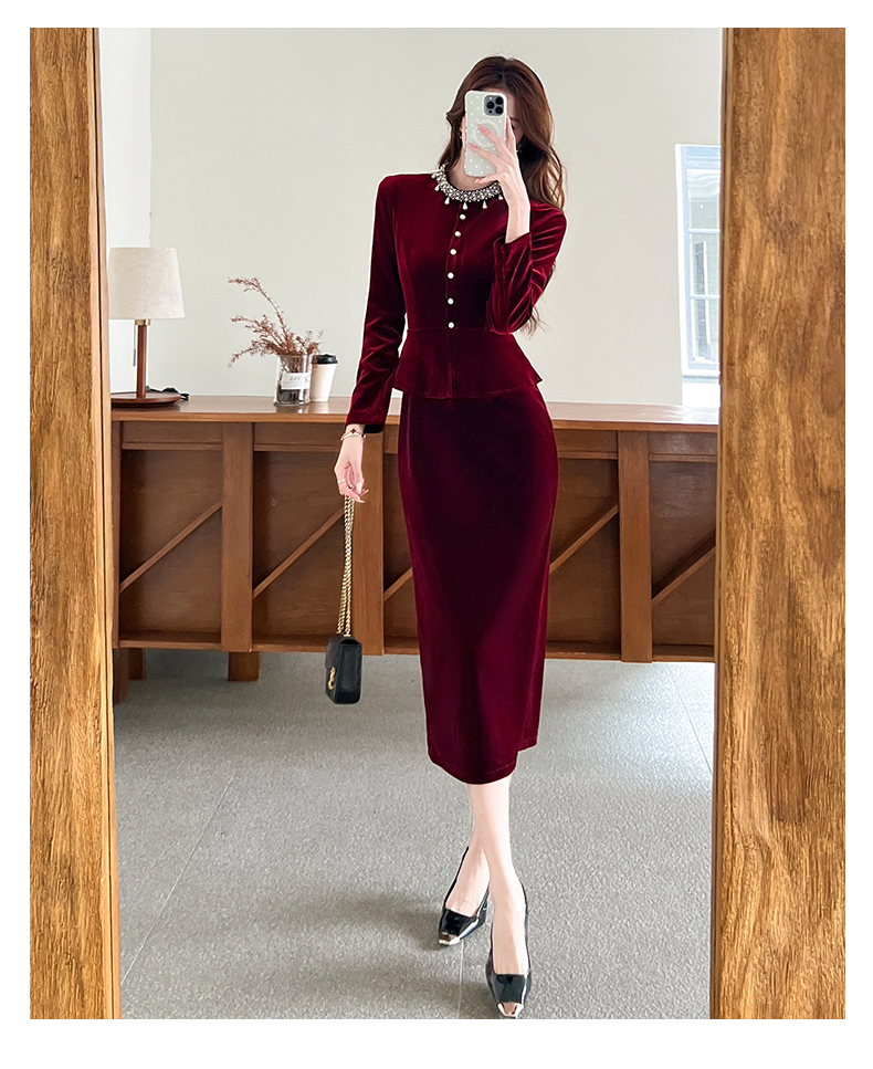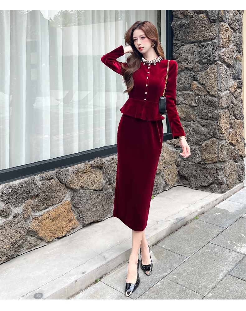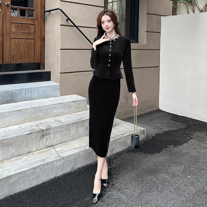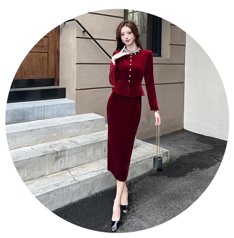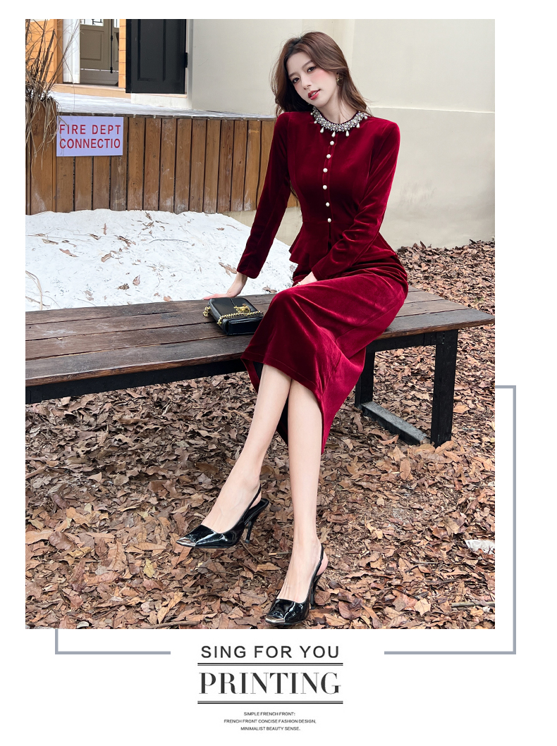 MY16006# 时尚金丝绒长裙包臀连衣裙女裝貨源服裝批發