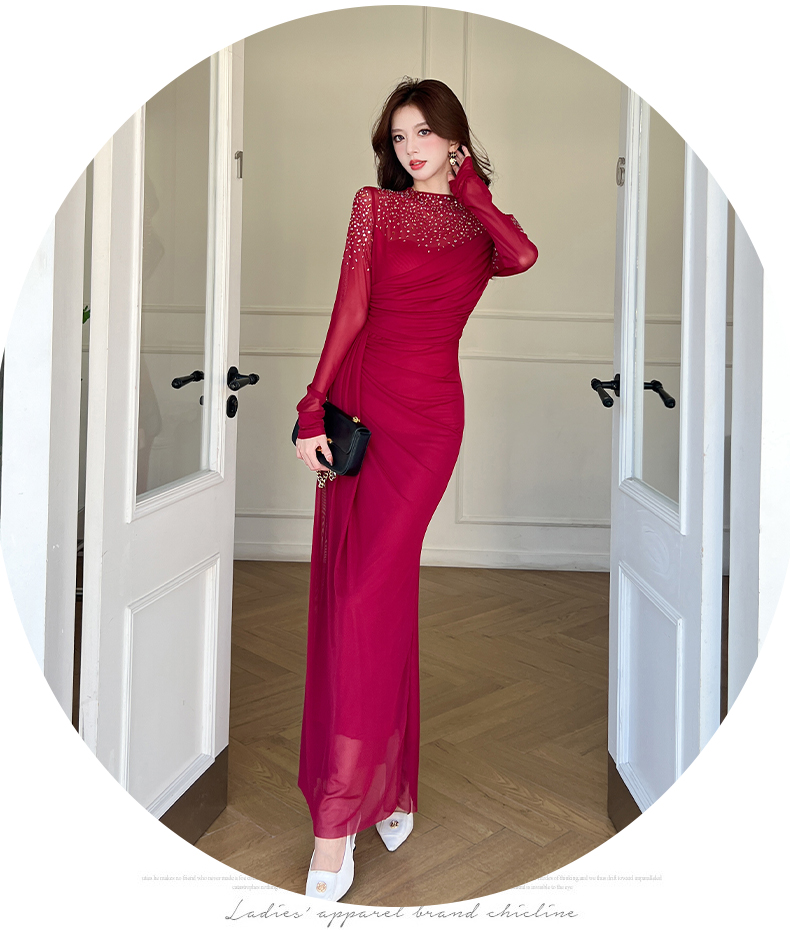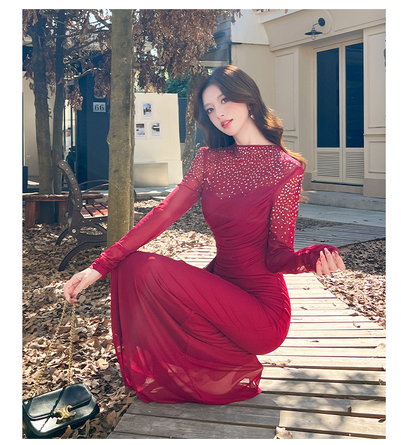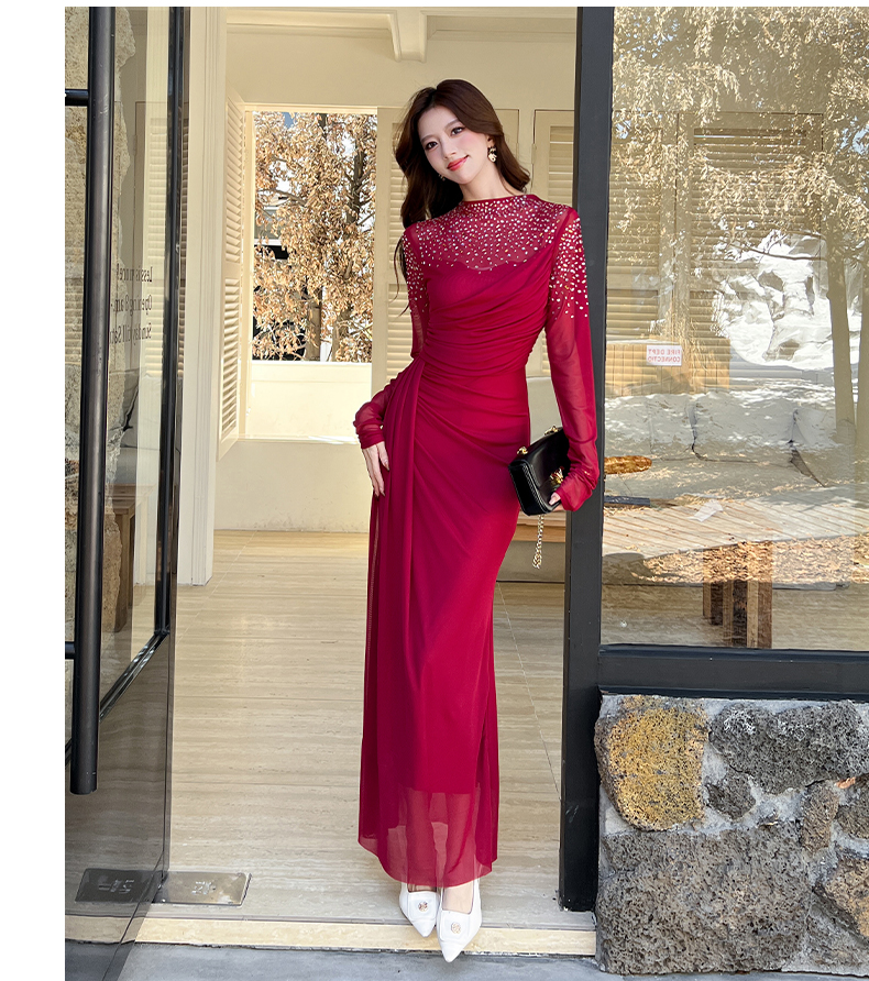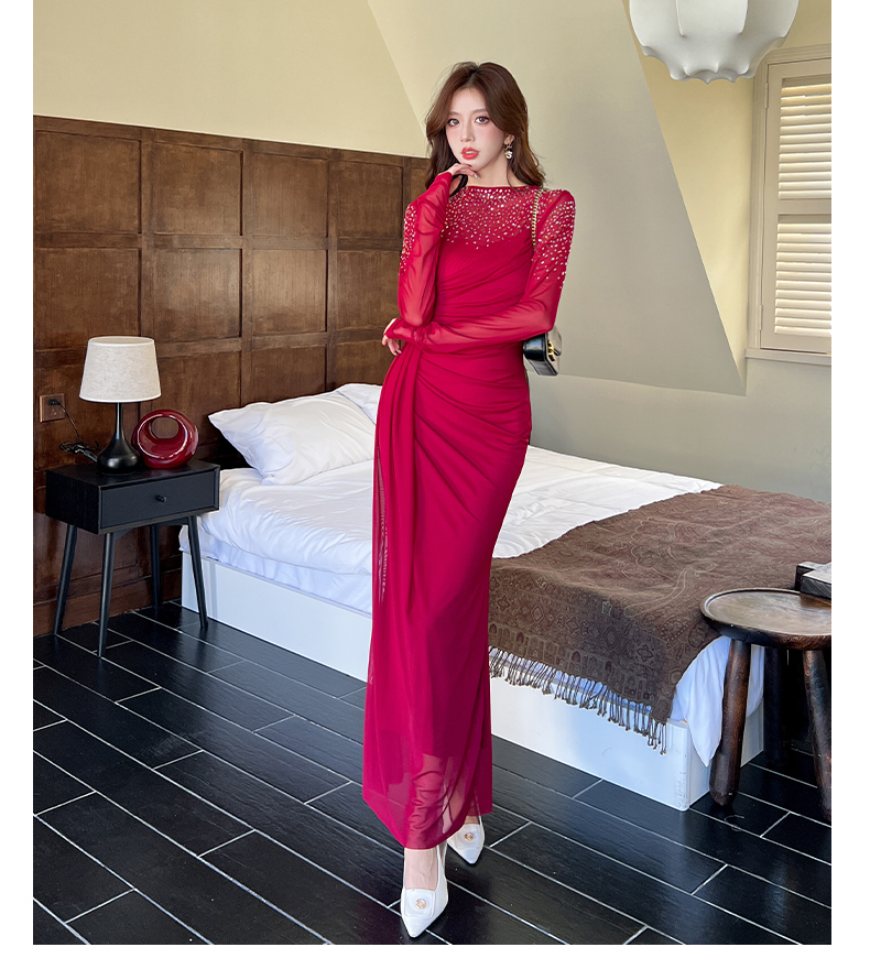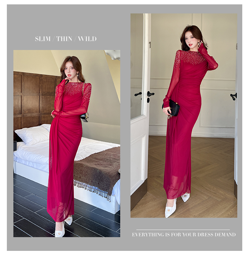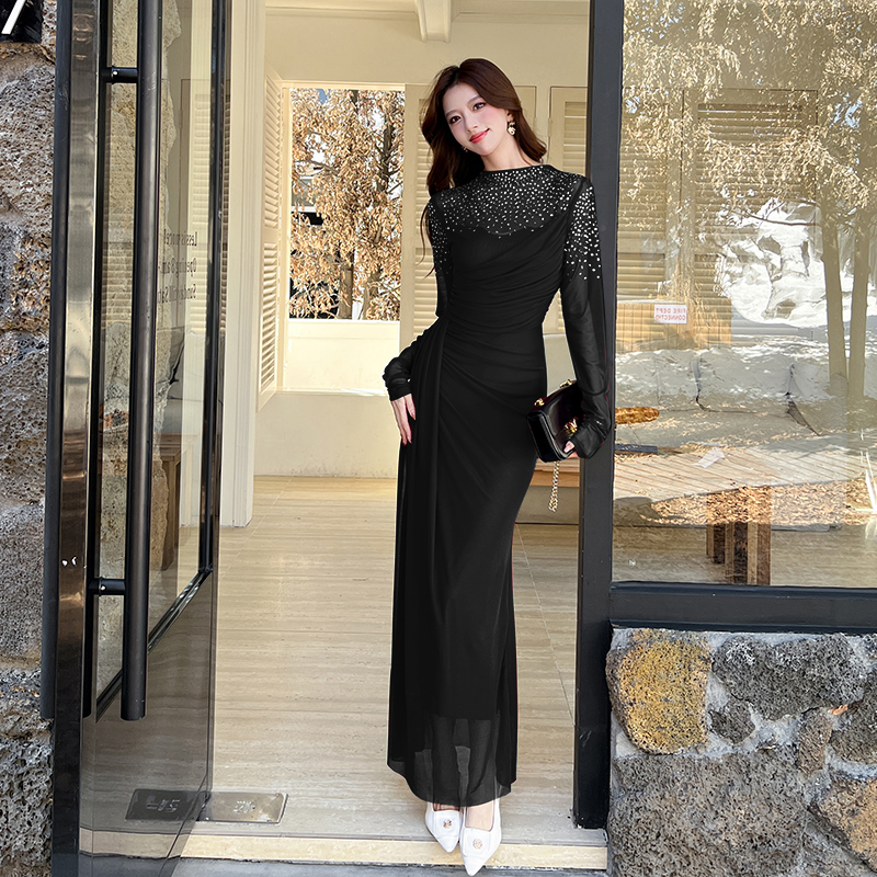 MY16012# 时尚烫钻长裙包臀连衣裙女裝貨源服裝批發