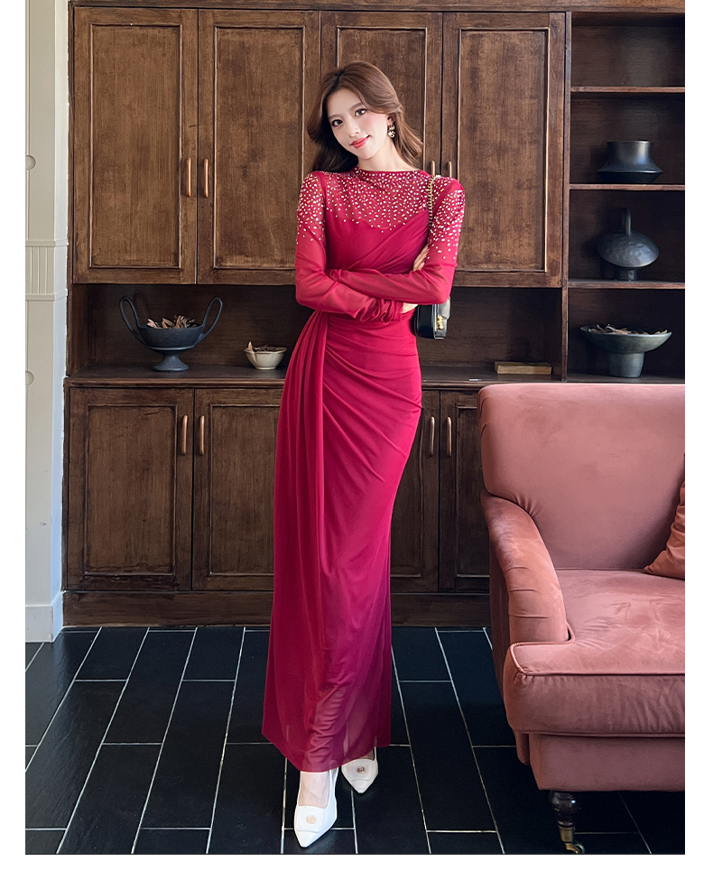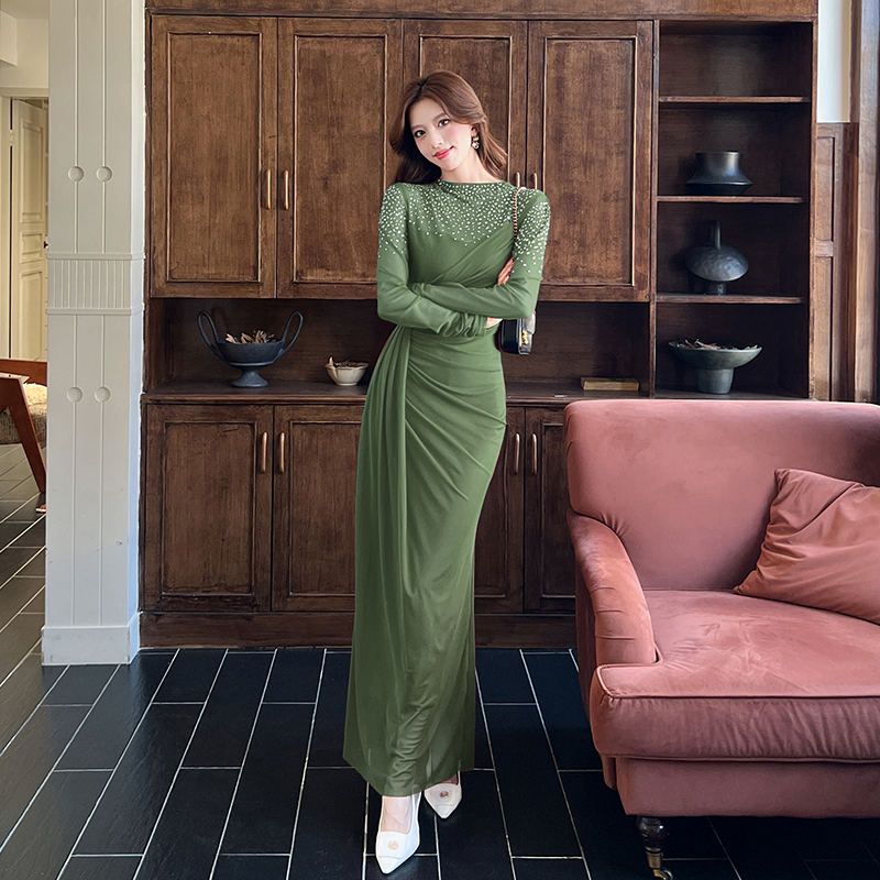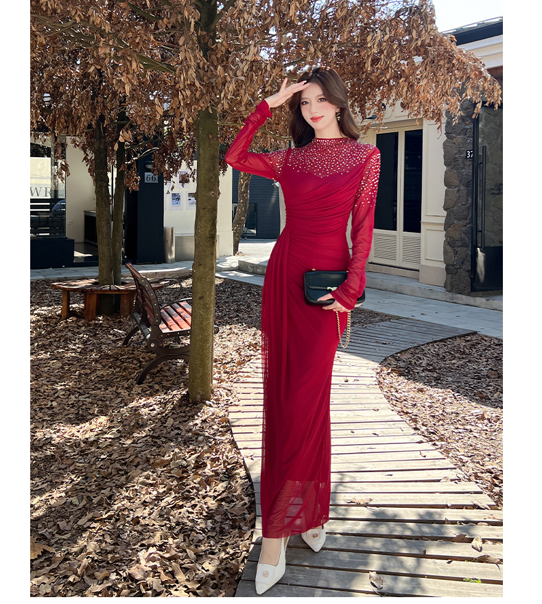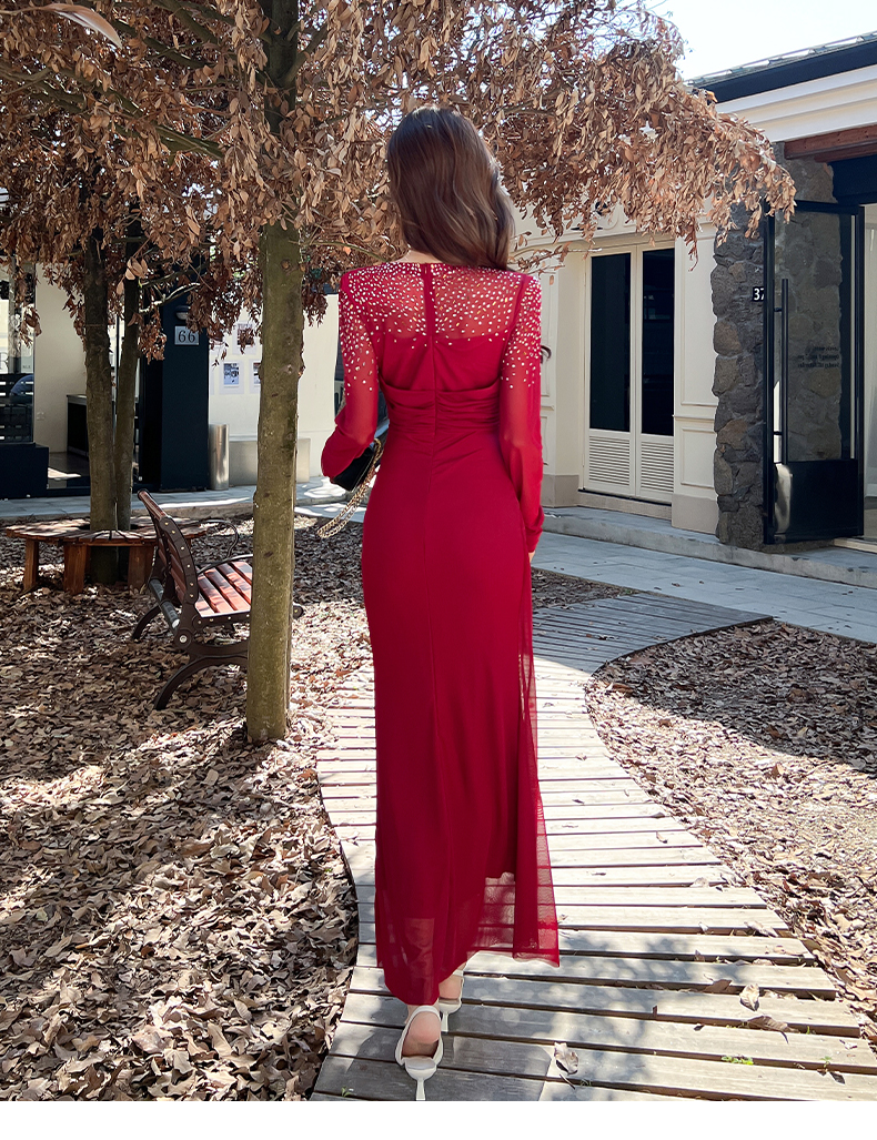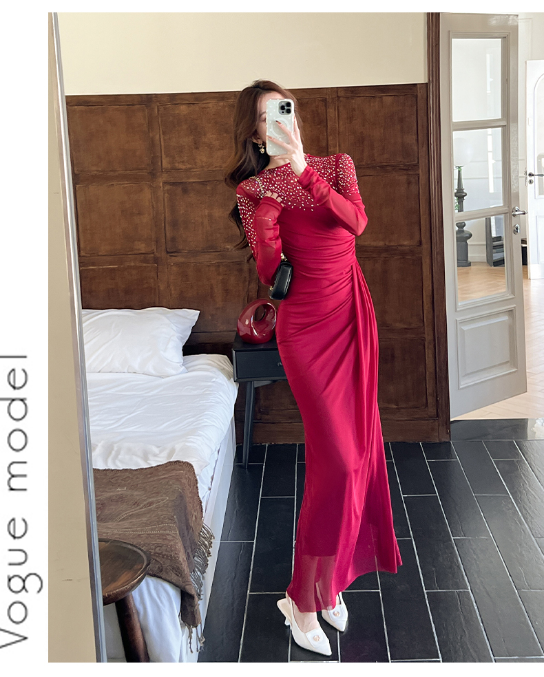 MY16012# 时尚烫钻长裙包臀连衣裙女裝貨源服裝批發
