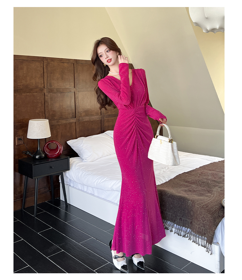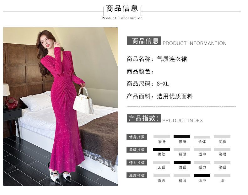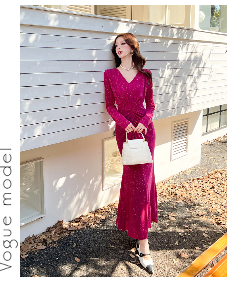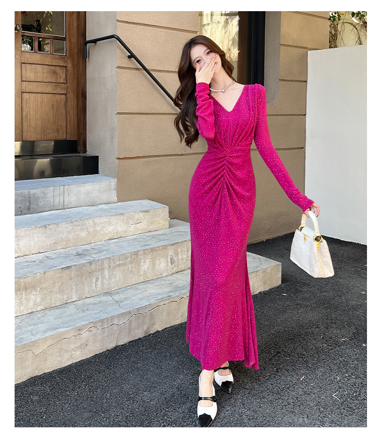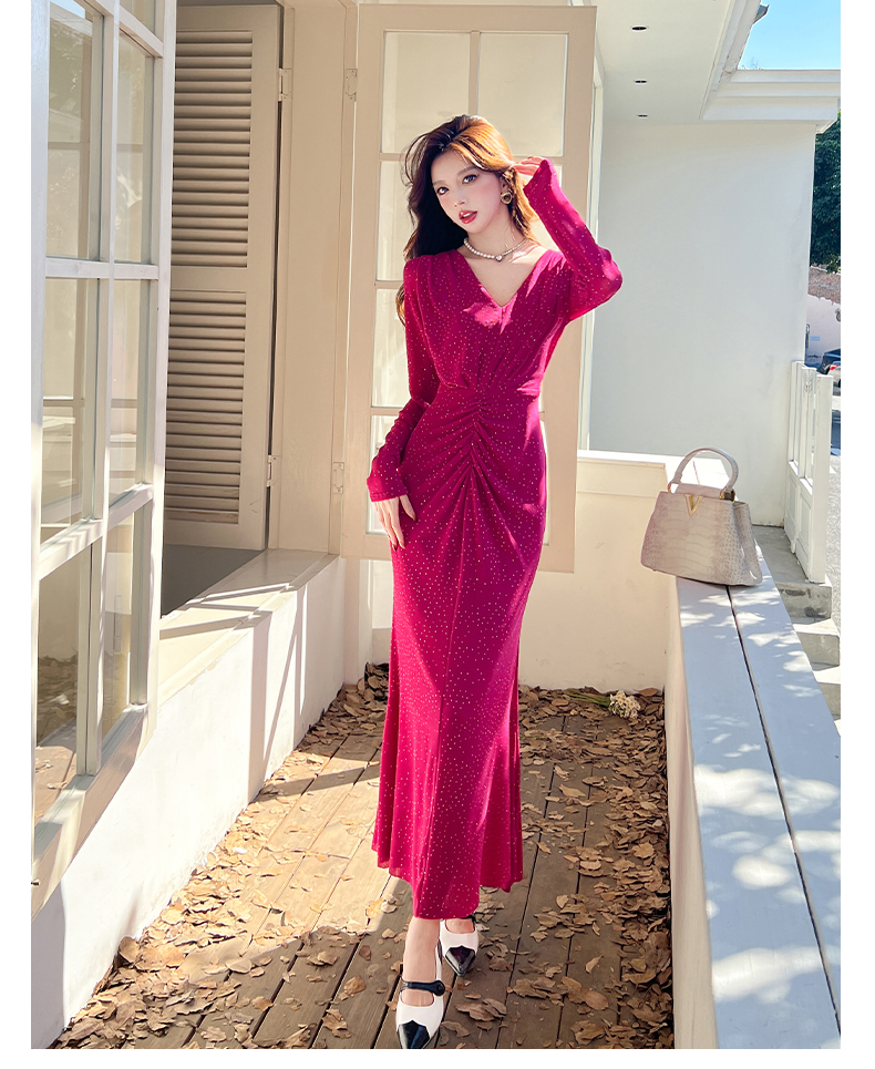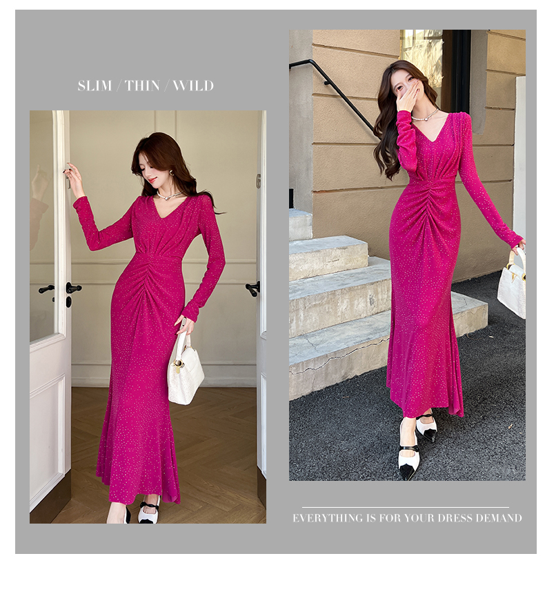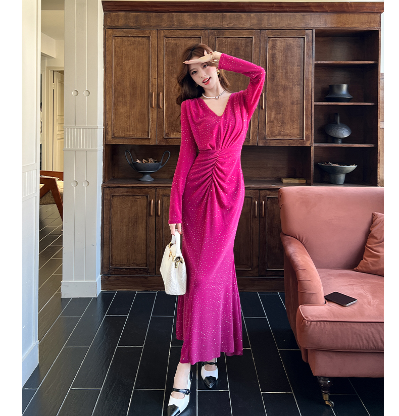 MY16014# 长袖v领长裙包臀连衣裙女裝貨源服裝批發