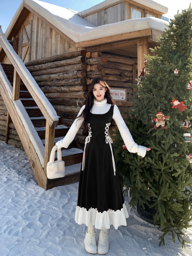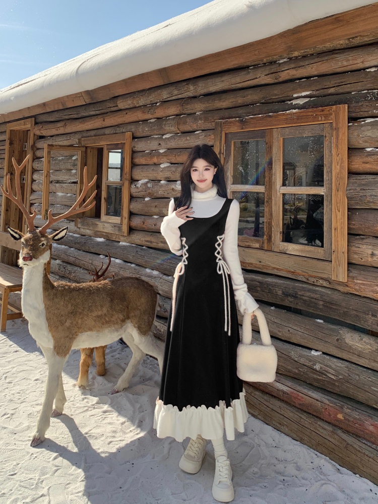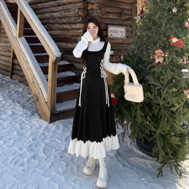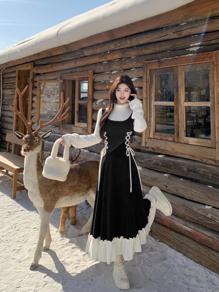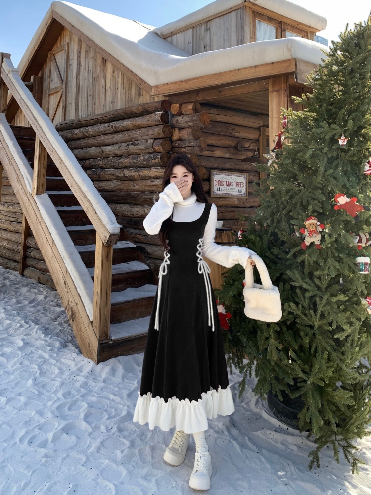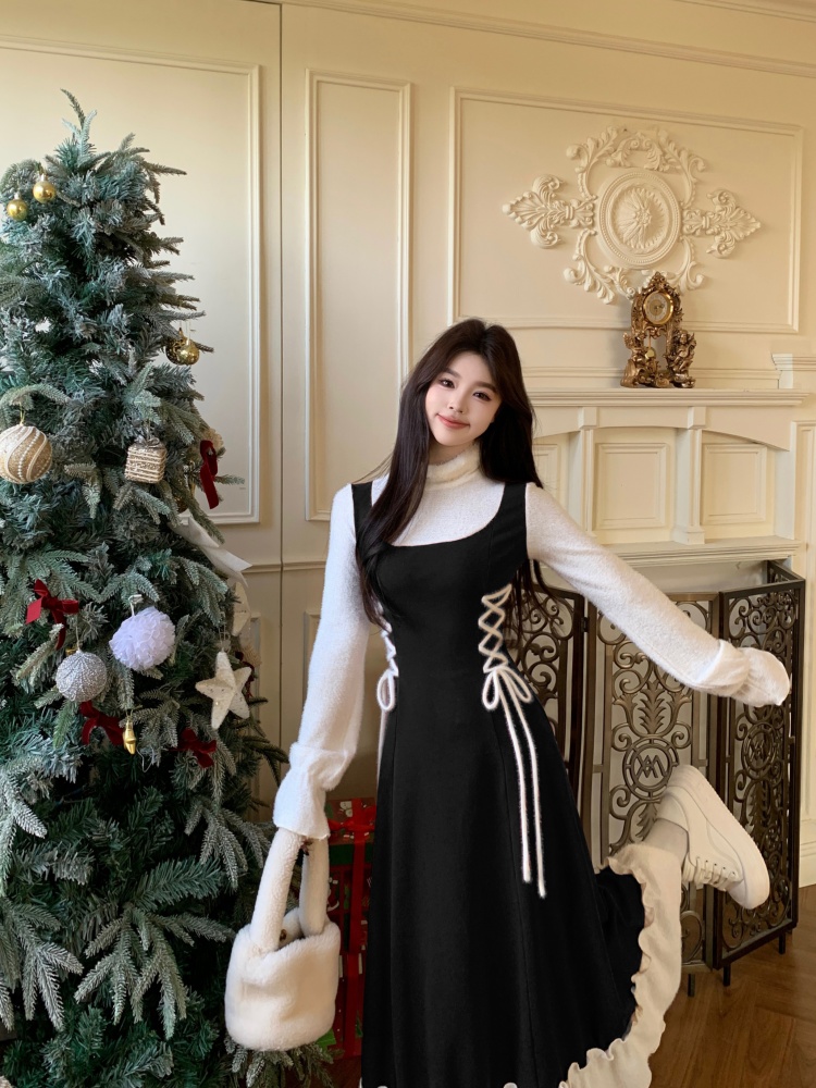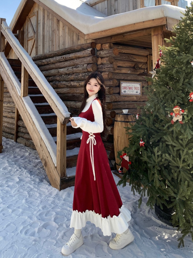 MY16030# 学院风红白撞色新款长袖连衣裙磨毛针织弹力收腰显瘦裙子女裝貨源服裝批發