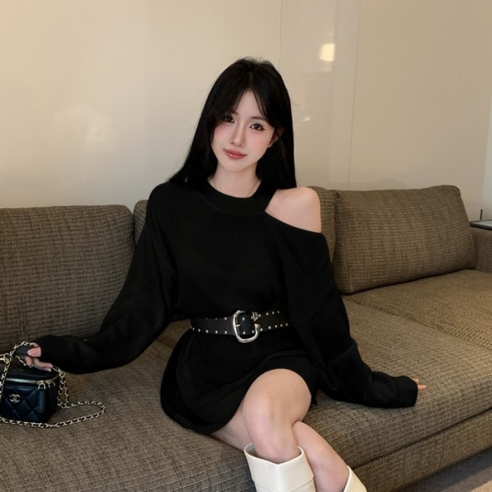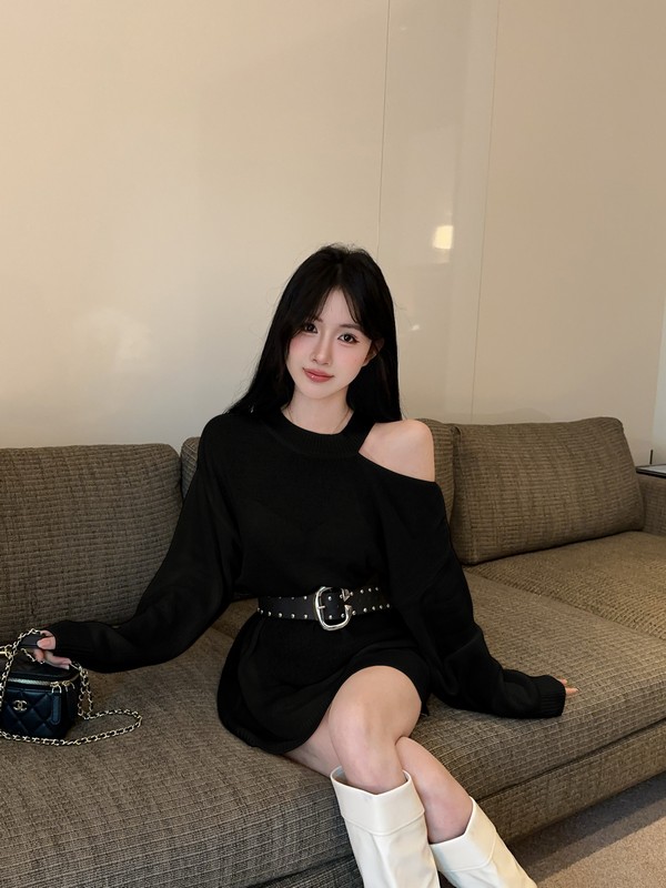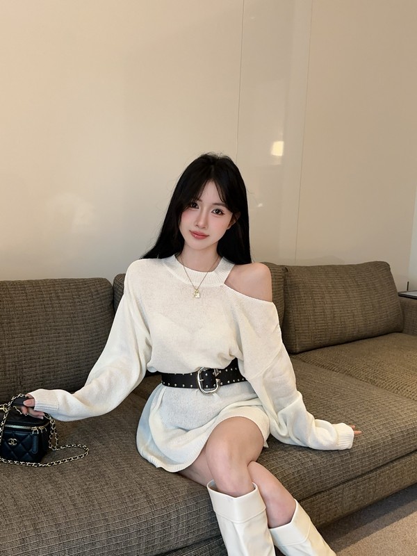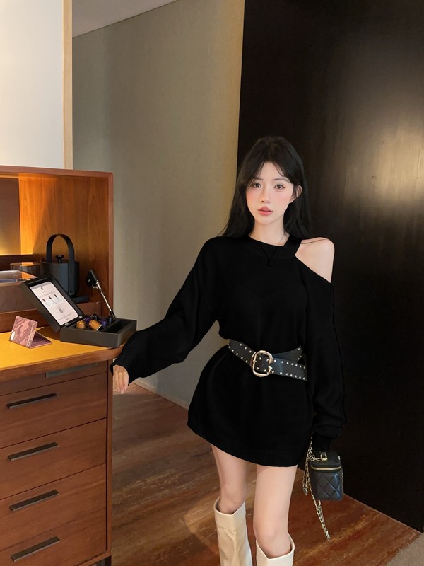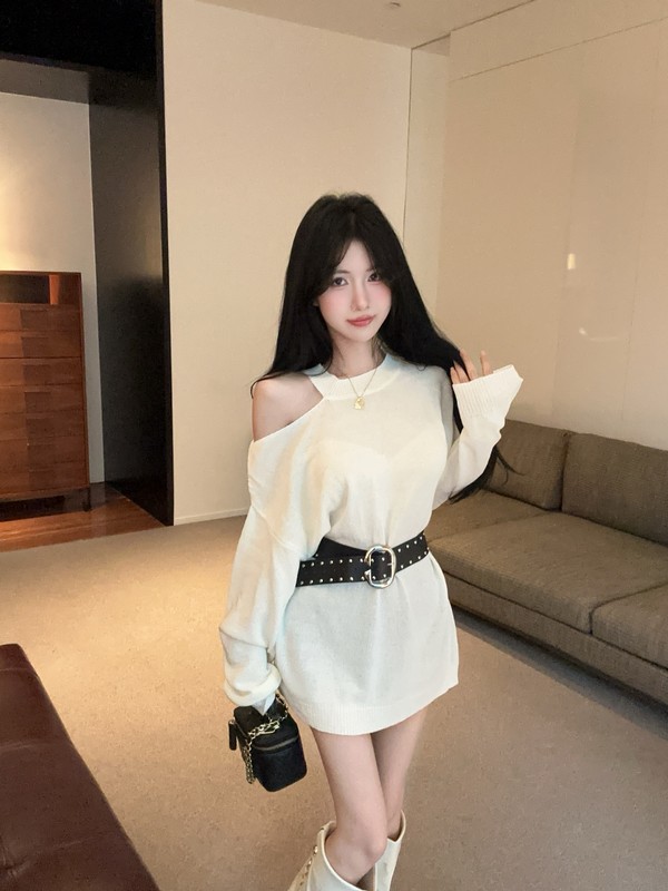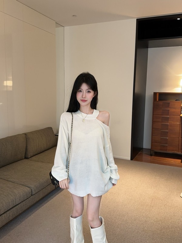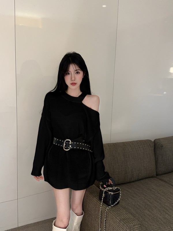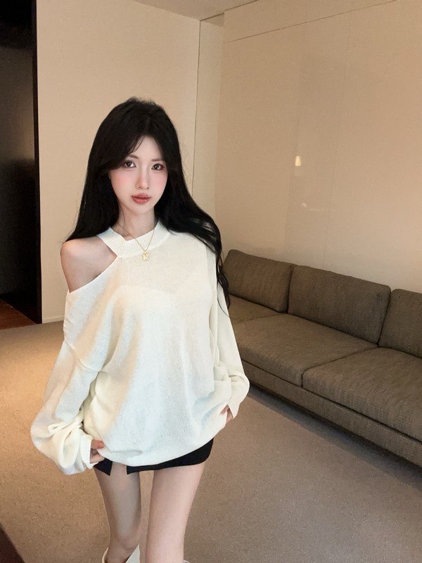 MY16035# 慵懒风露肩针织上衣秋季新款收腰显瘦辣妹上衣女裝貨源服裝批發