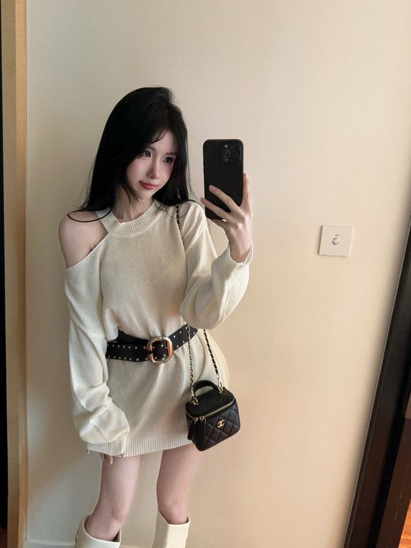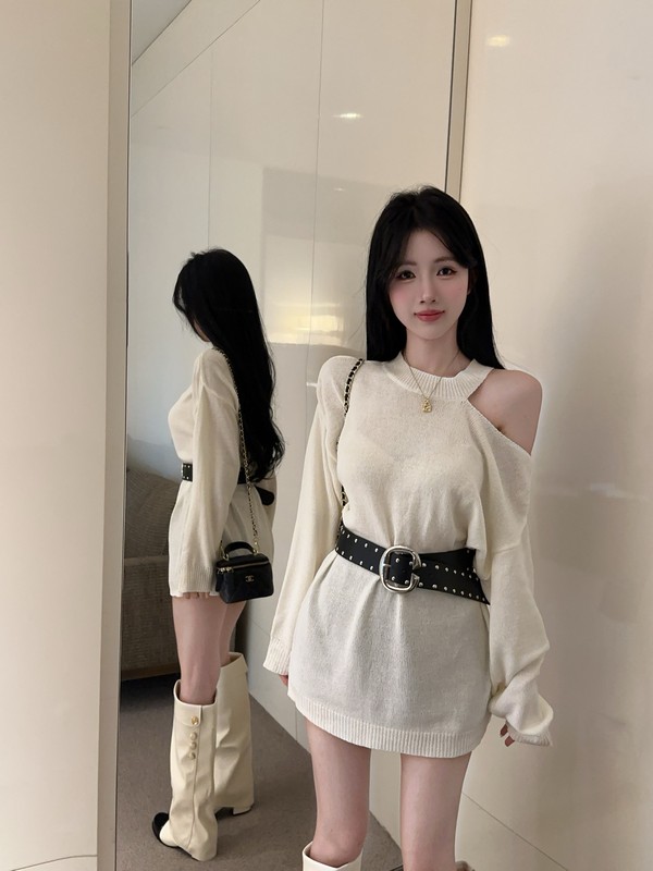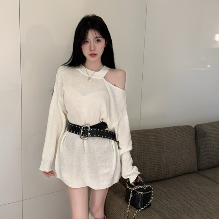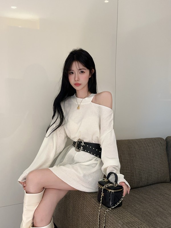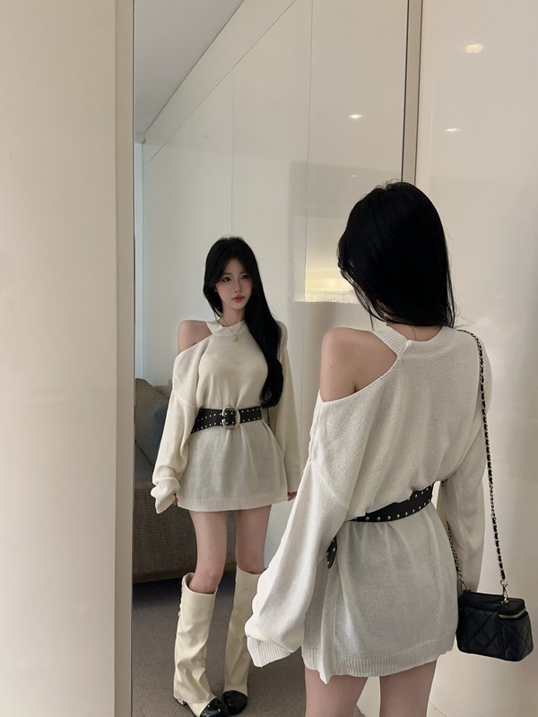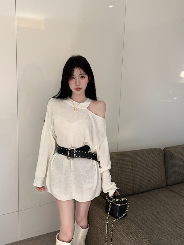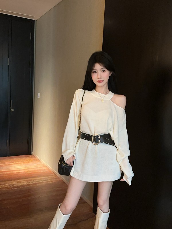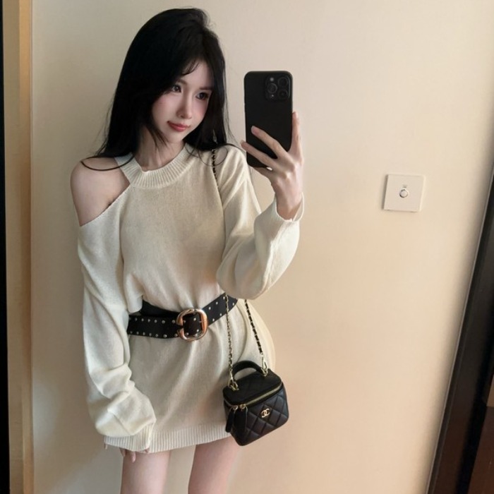 MY16035# 慵懒风露肩针织上衣秋季新款收腰显瘦辣妹上衣女裝貨源服裝批發
