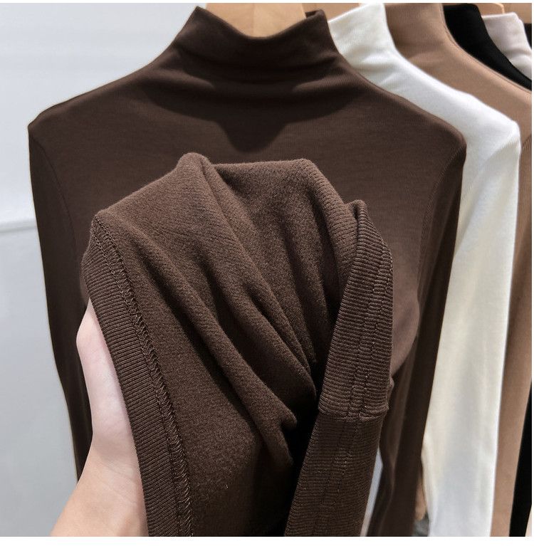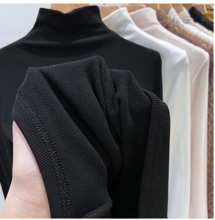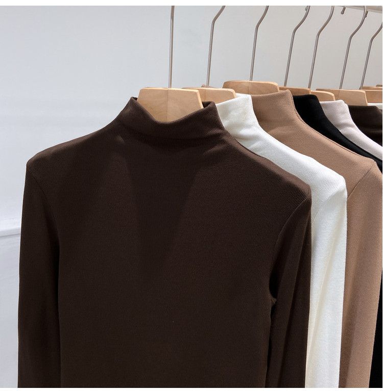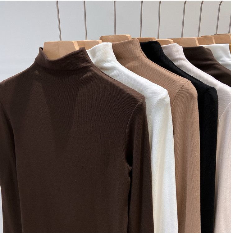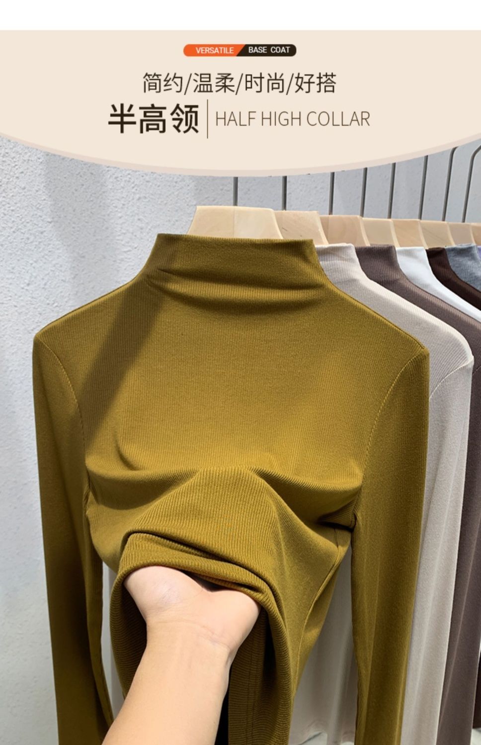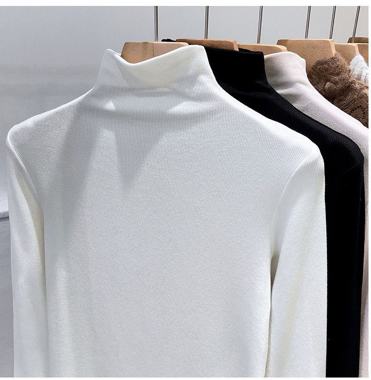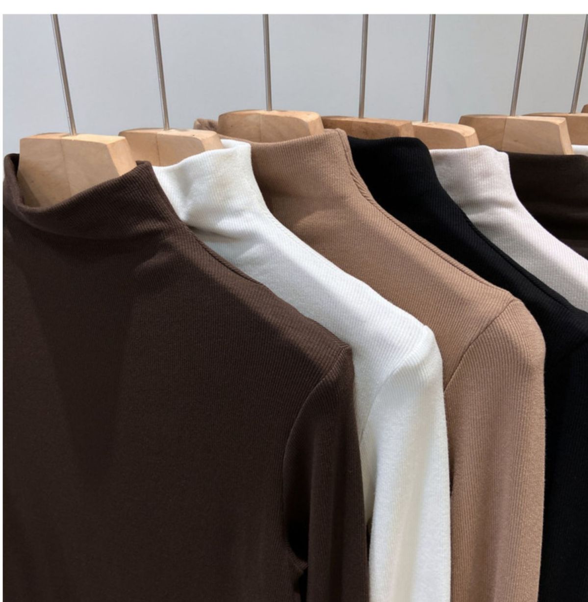 MY16045# 网红爆款半高领打底衫内搭洋气针织长袖T恤高级感上衣大码女女裝貨源服裝批發