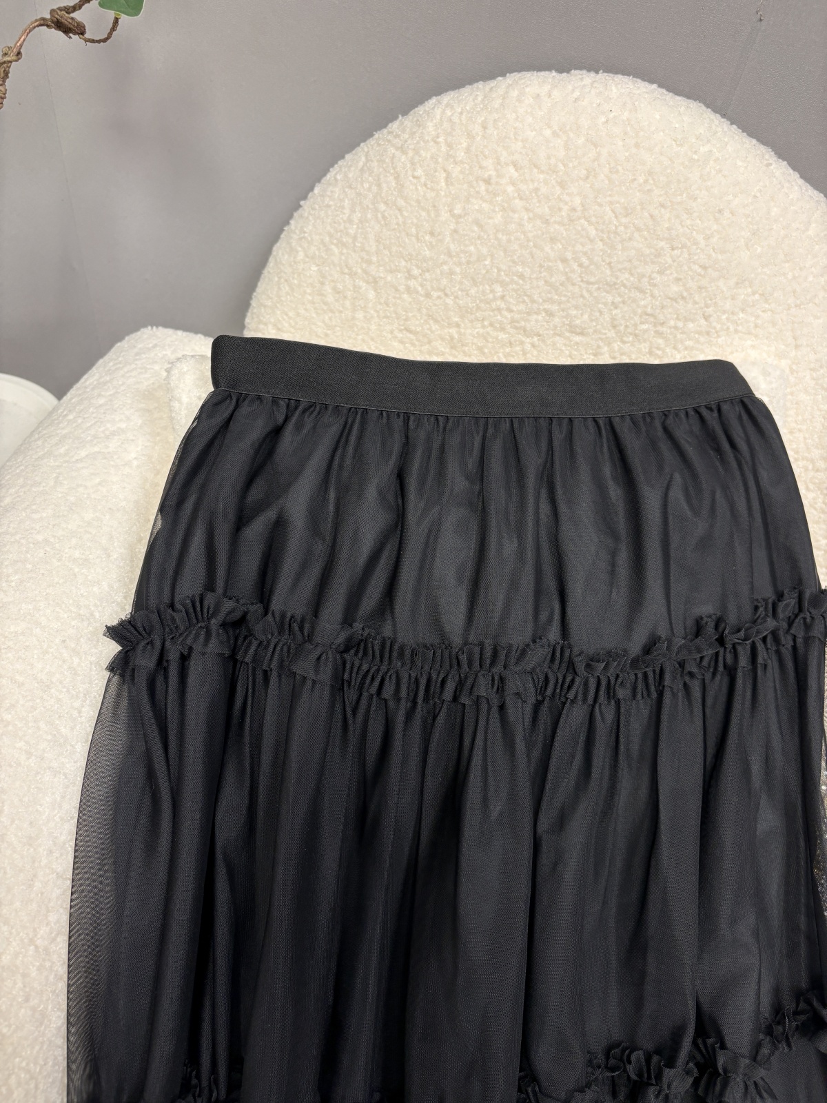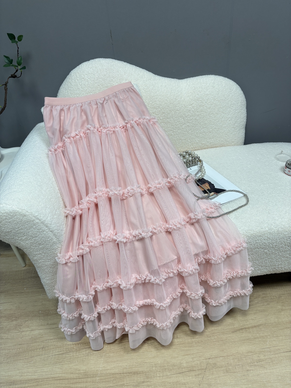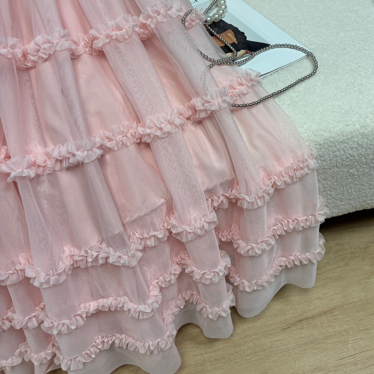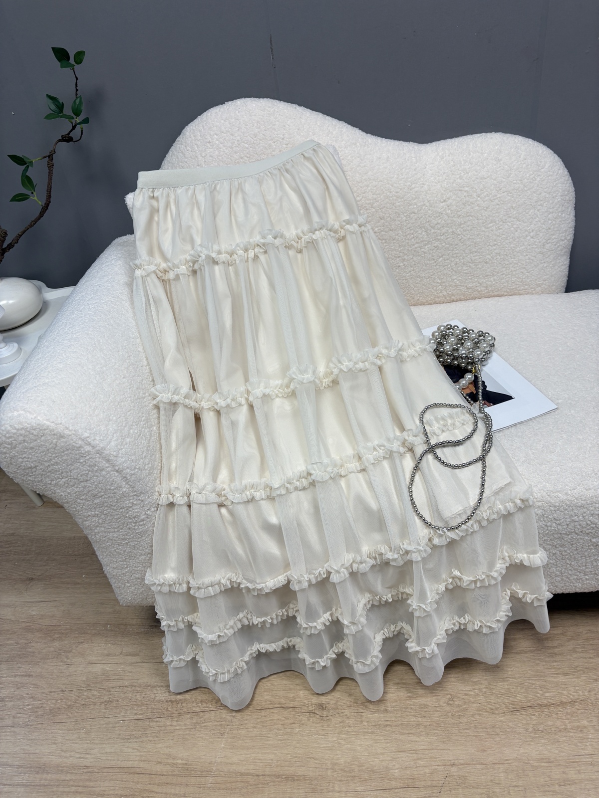 MY16051# 韩系chic氛围感木耳边拼接蛋糕裙甜美减龄纱裙半身长裙女裝貨源服裝批發