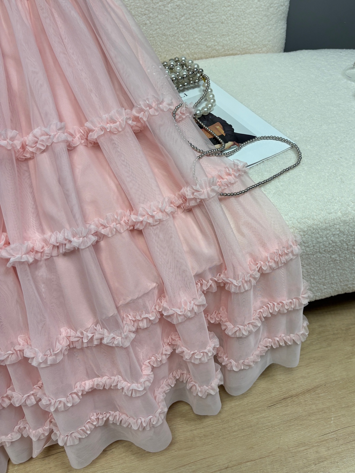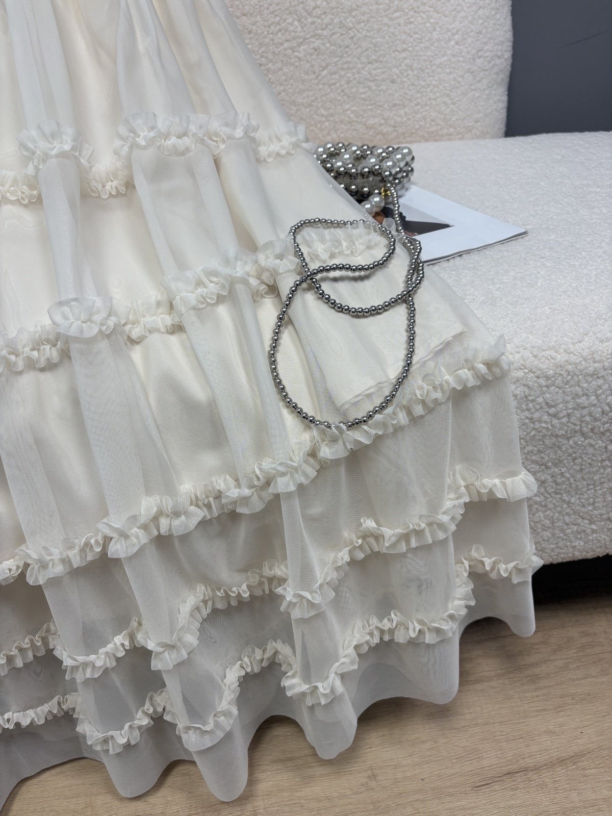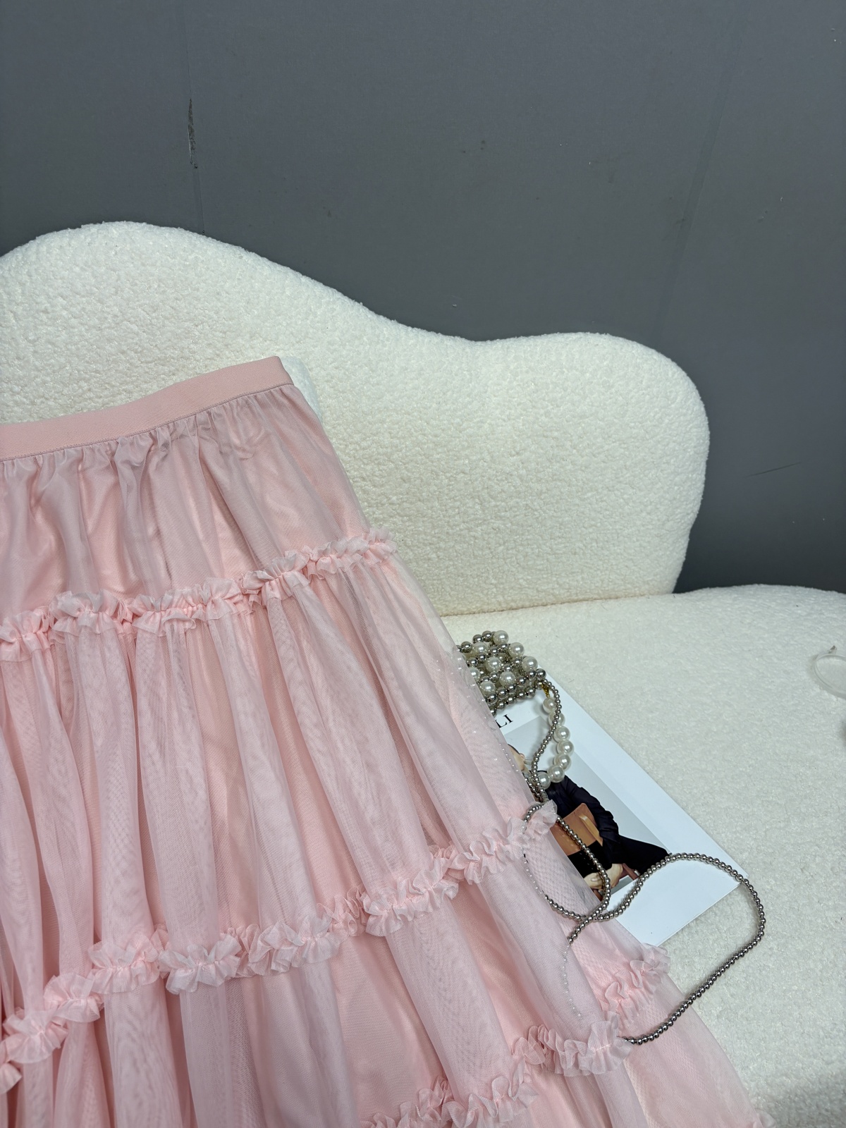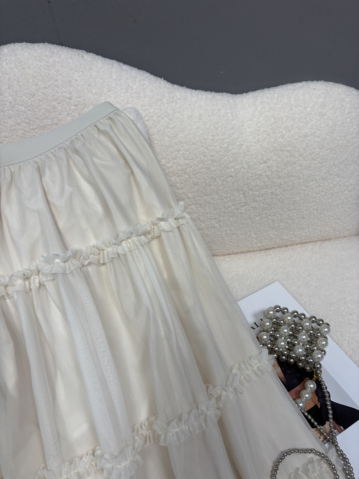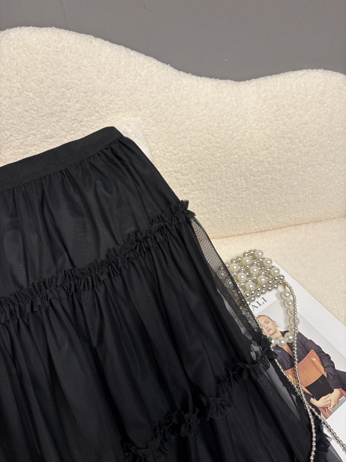 MY16051# 韩系chic氛围感木耳边拼接蛋糕裙甜美减龄纱裙半身长裙女裝貨源服裝批發