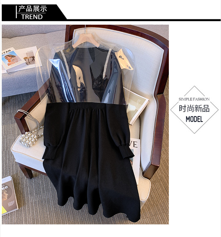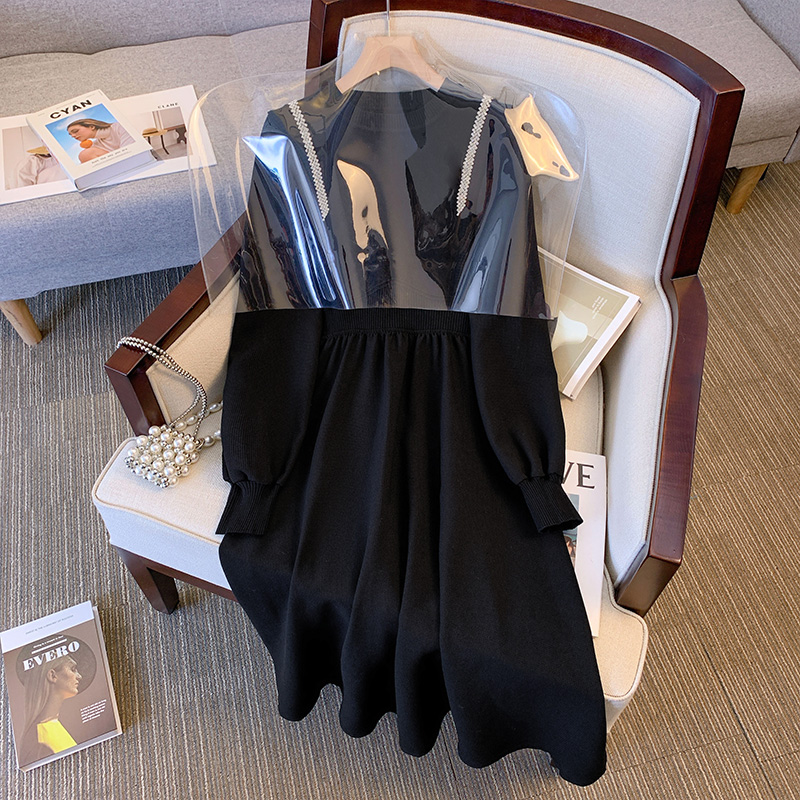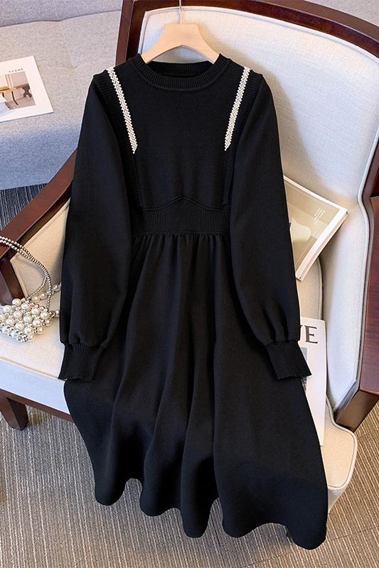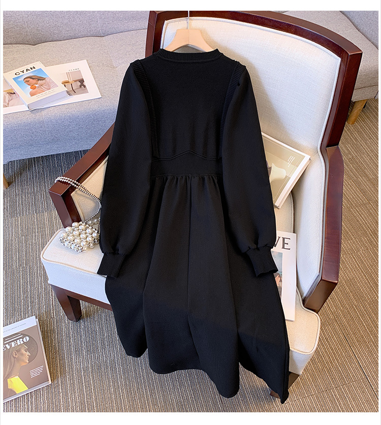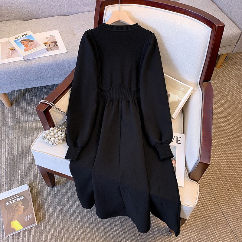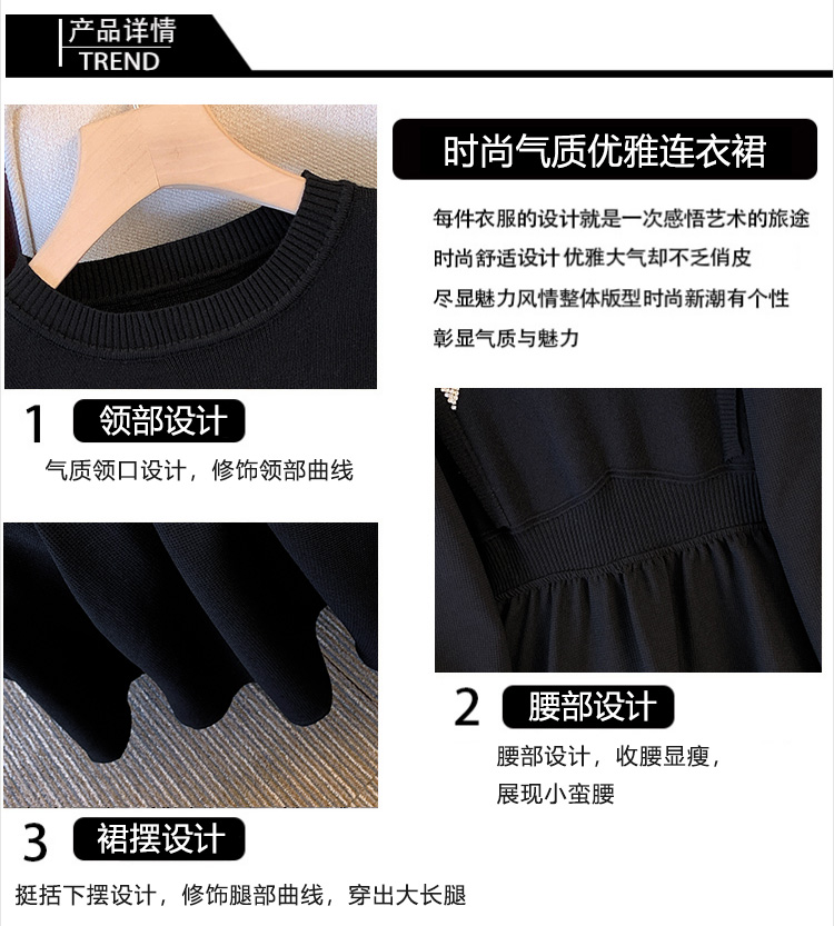 MY16058# 新款大码女装胖mm圆领收腰针织内搭打底假两件连衣裙女裝貨源服裝批發