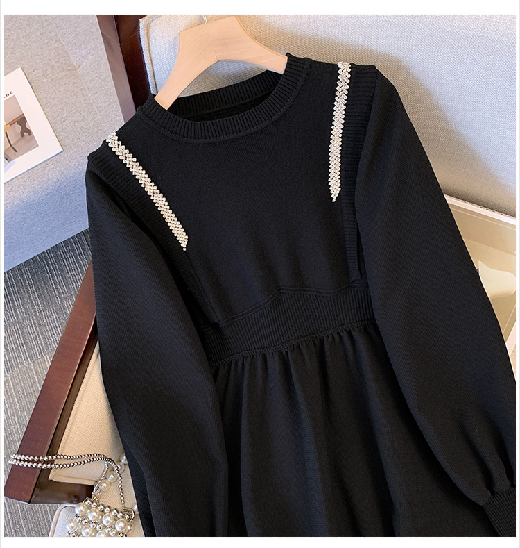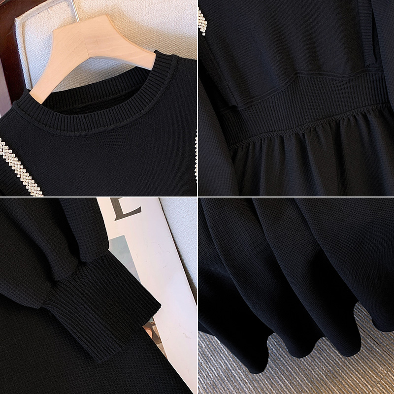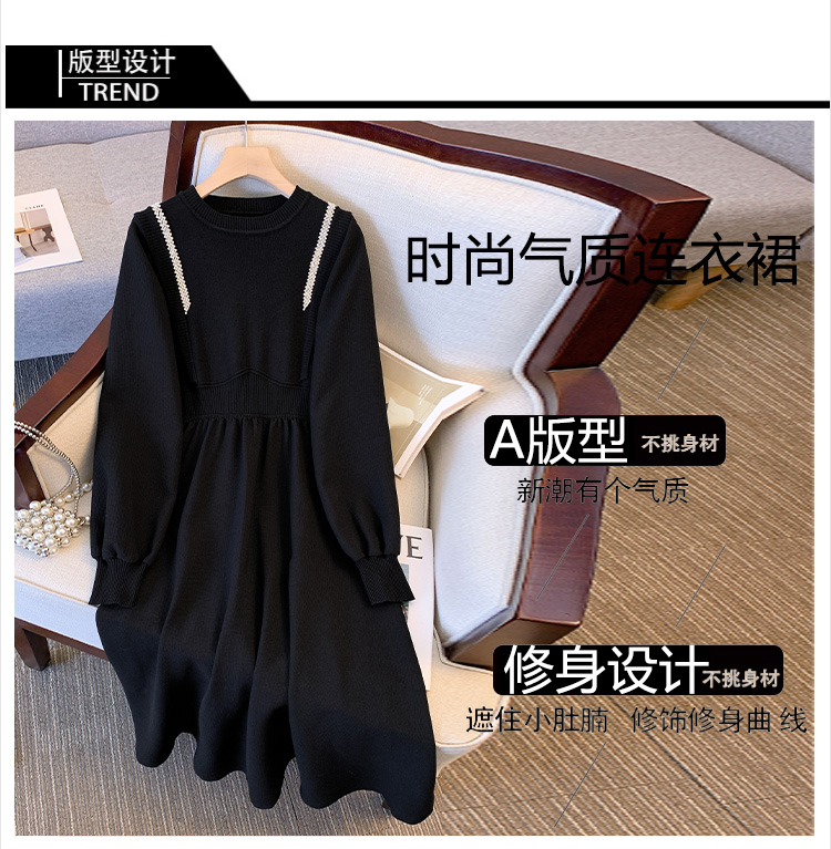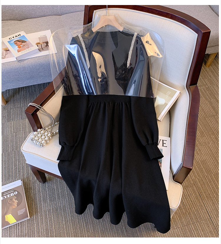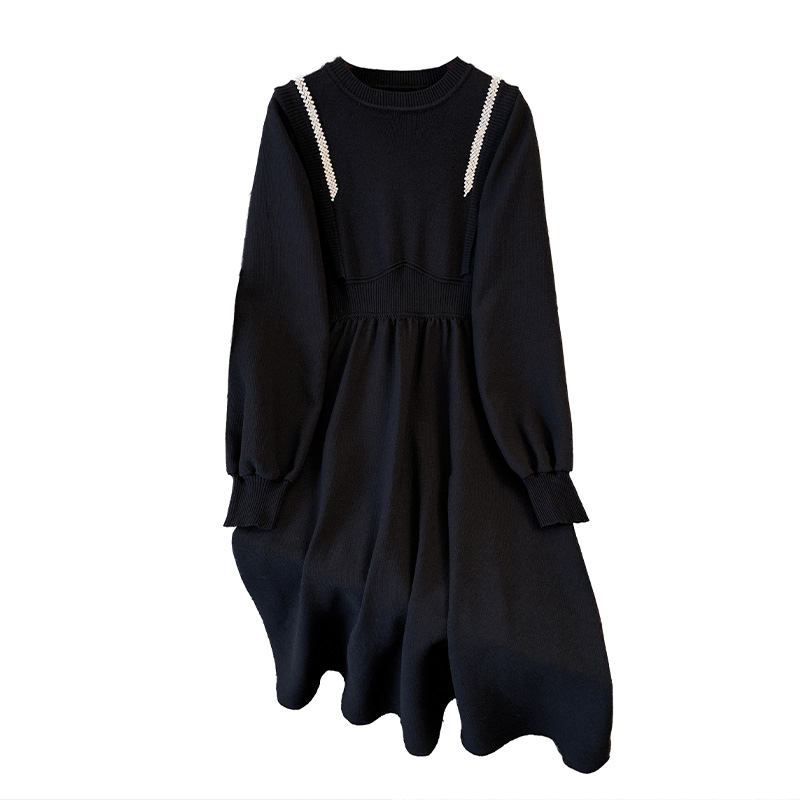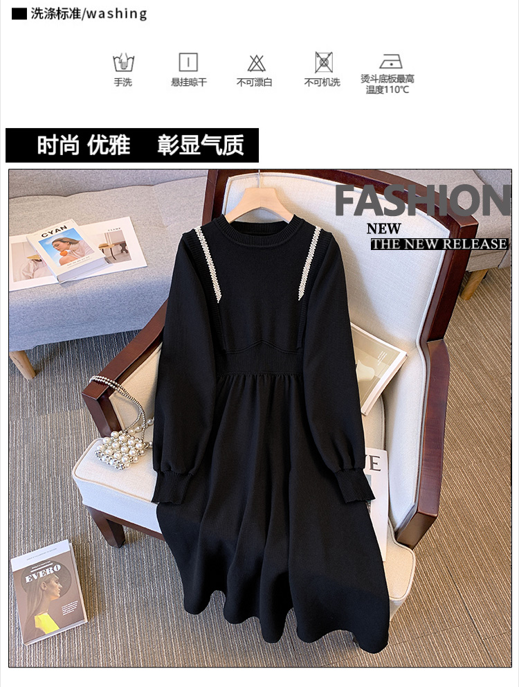 MY16058# 新款大码女装胖mm圆领收腰针织内搭打底假两件连衣裙女裝貨源服裝批發