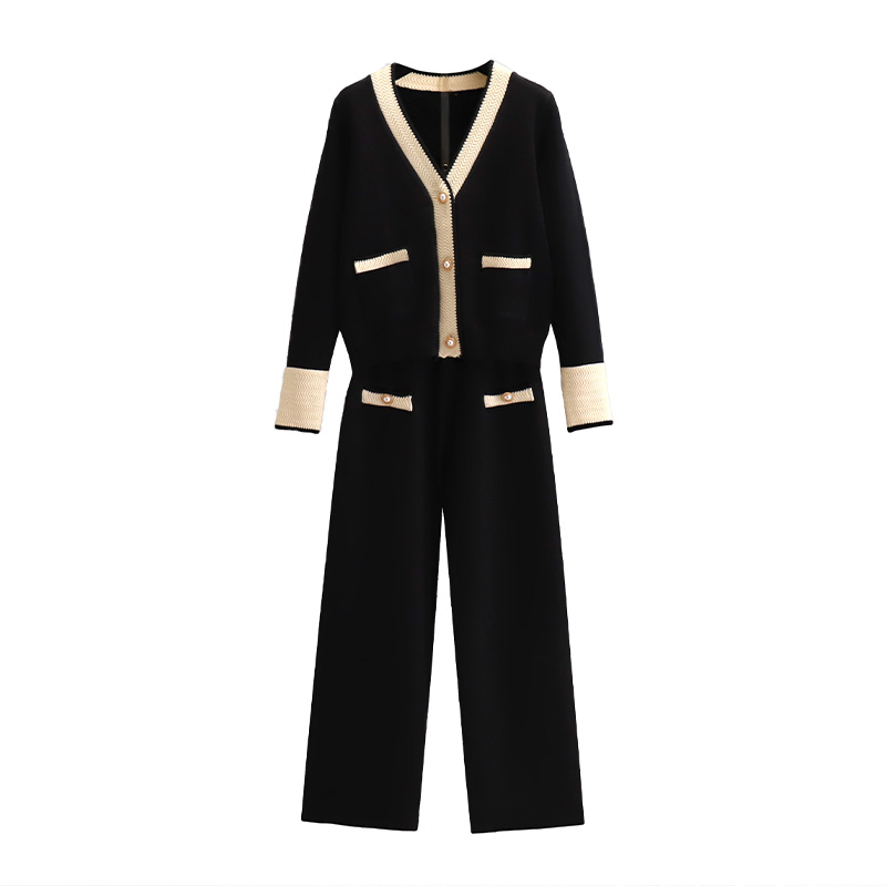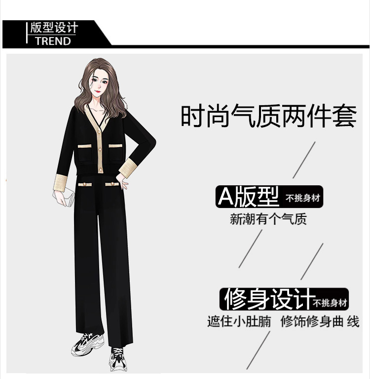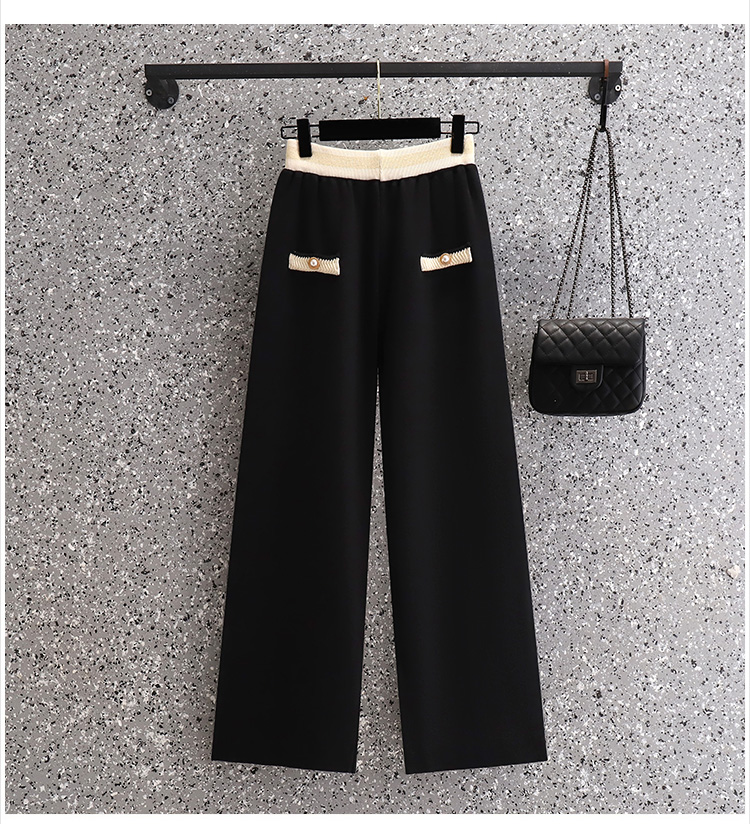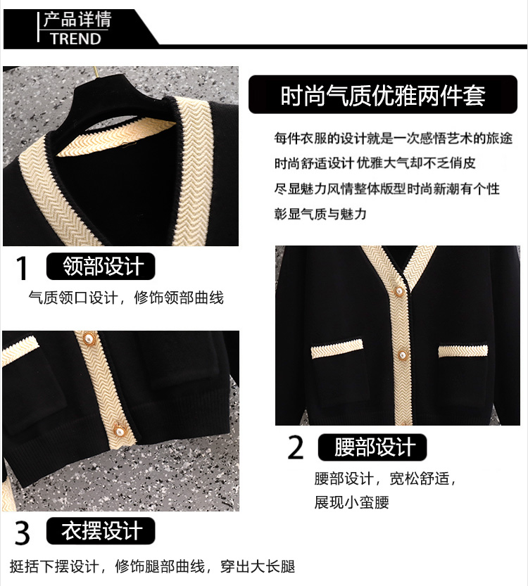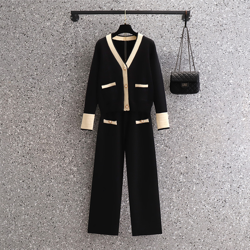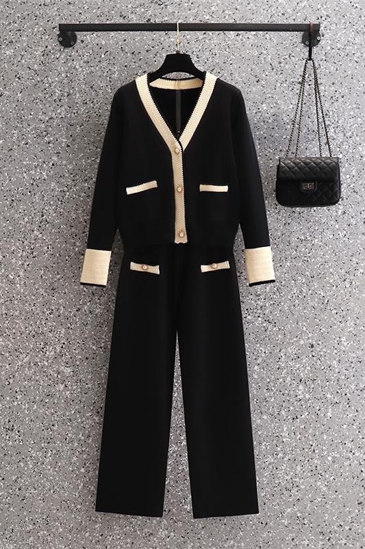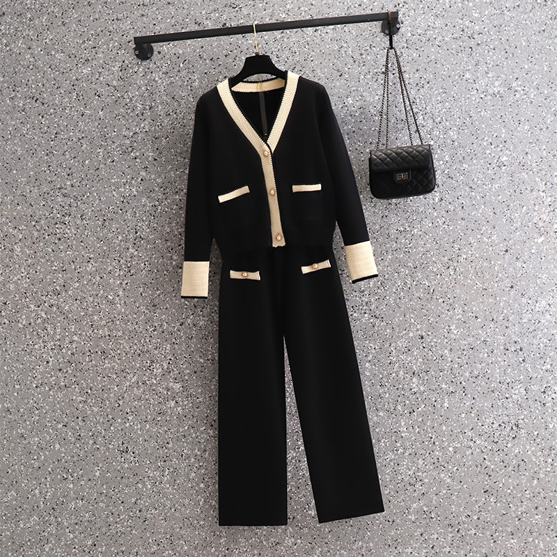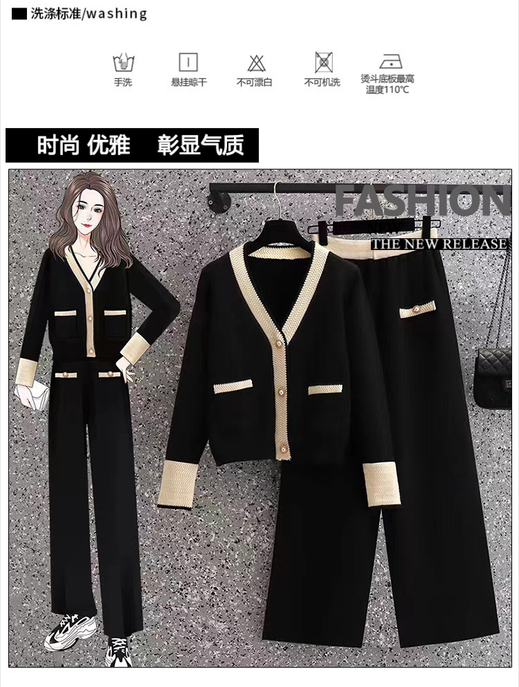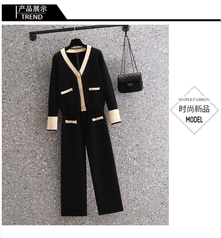 MY16059# 新款大码女装胖mm小香风针织外套减龄阔腿裤子两件套女裝貨源服裝批發