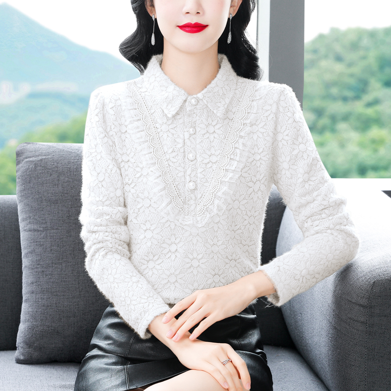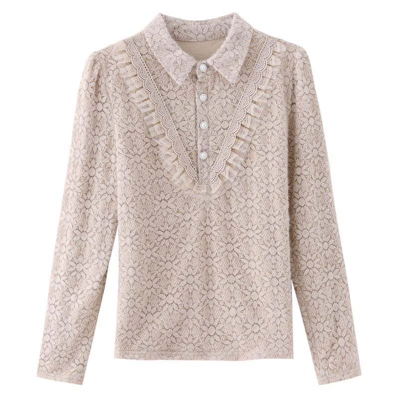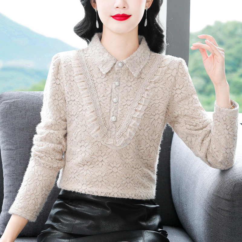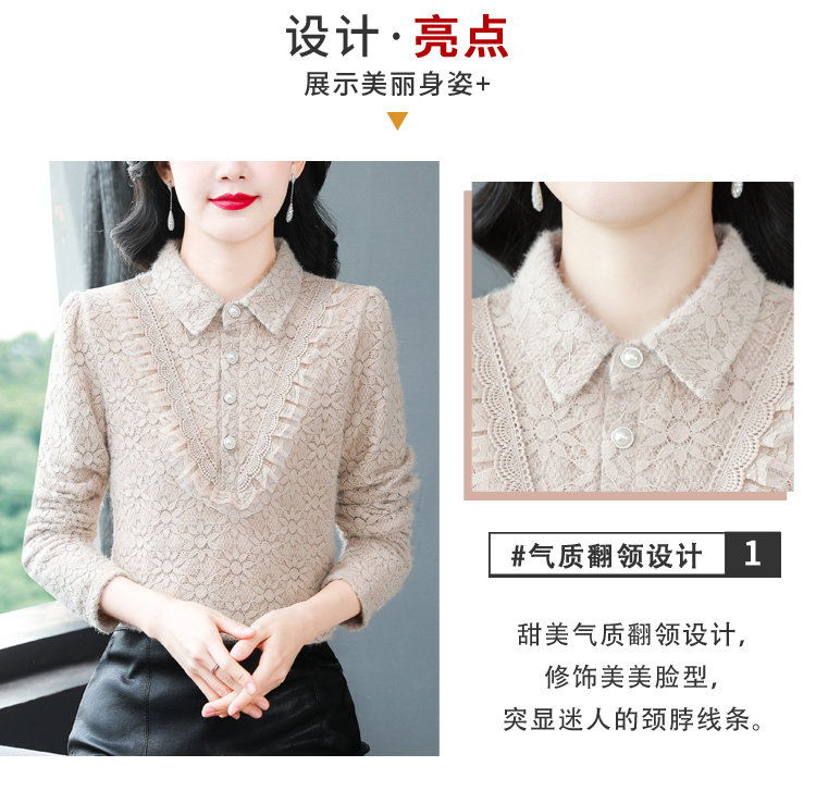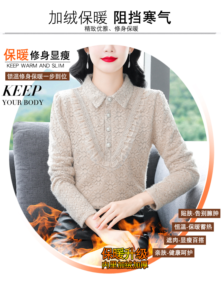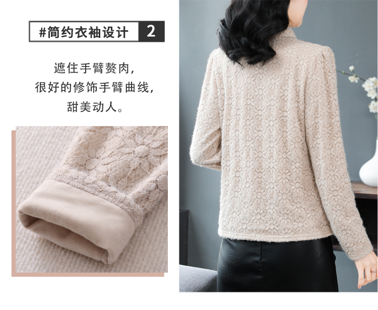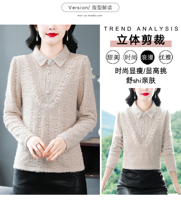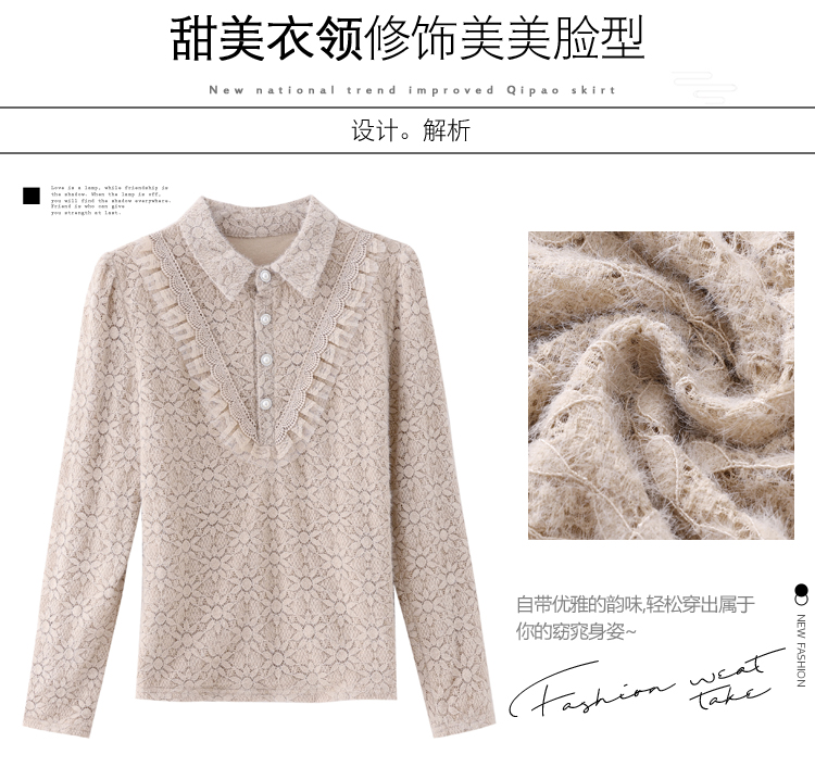 MY16073# 加绒/薄款羽毛纱蕾丝磨毛打底衫女百搭时尚内搭大码宽松显瘦小衫女裝貨源服裝批發