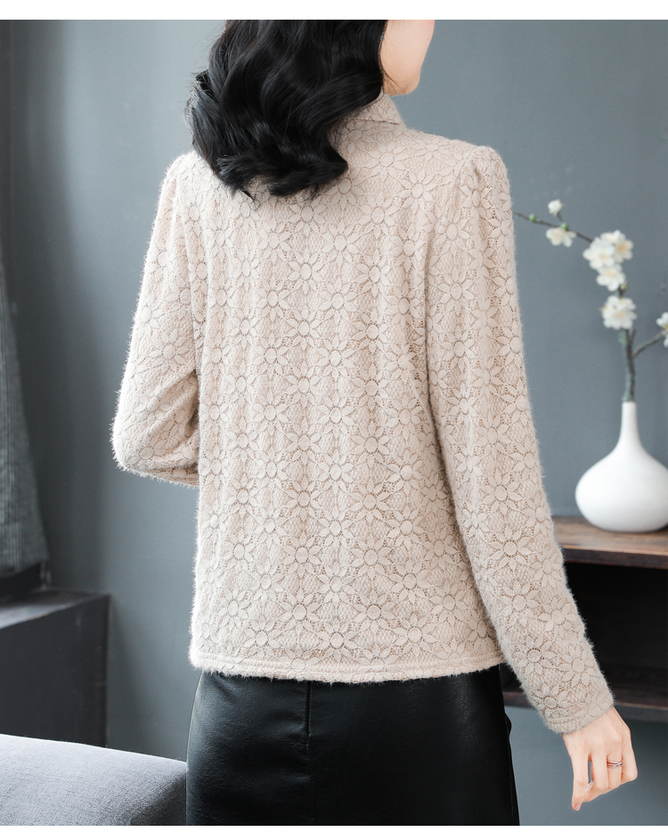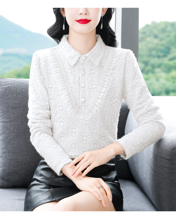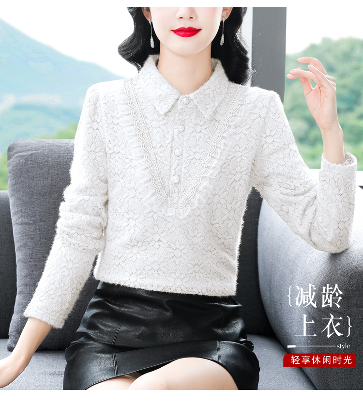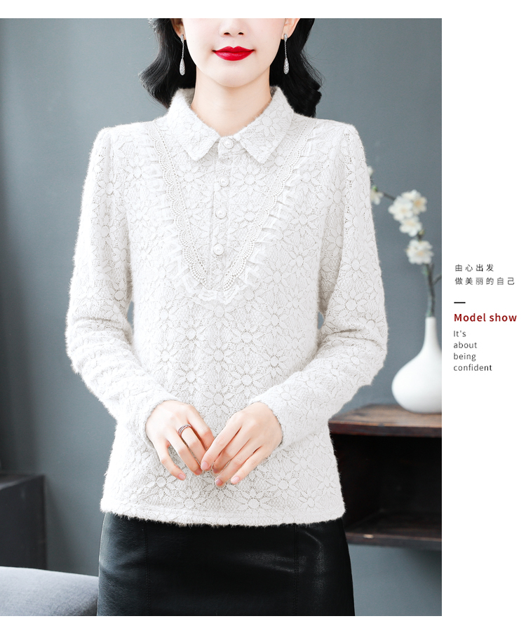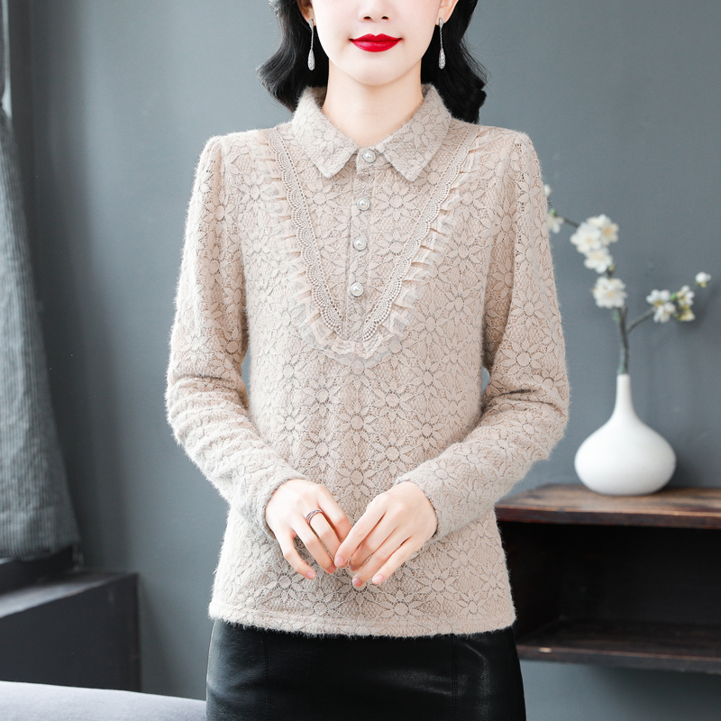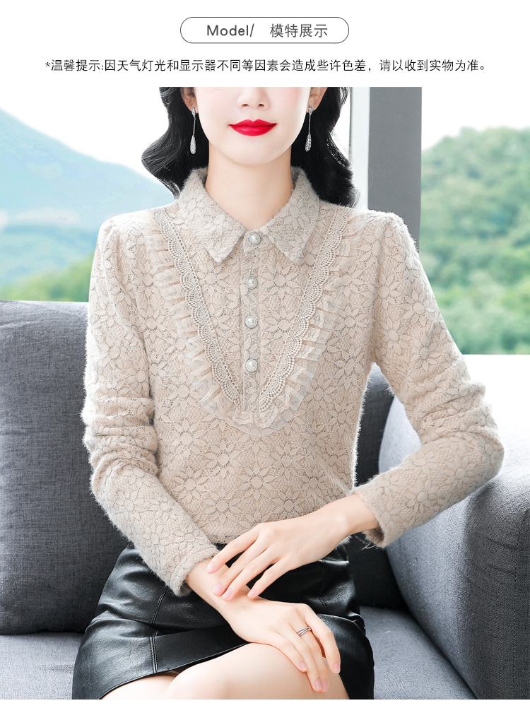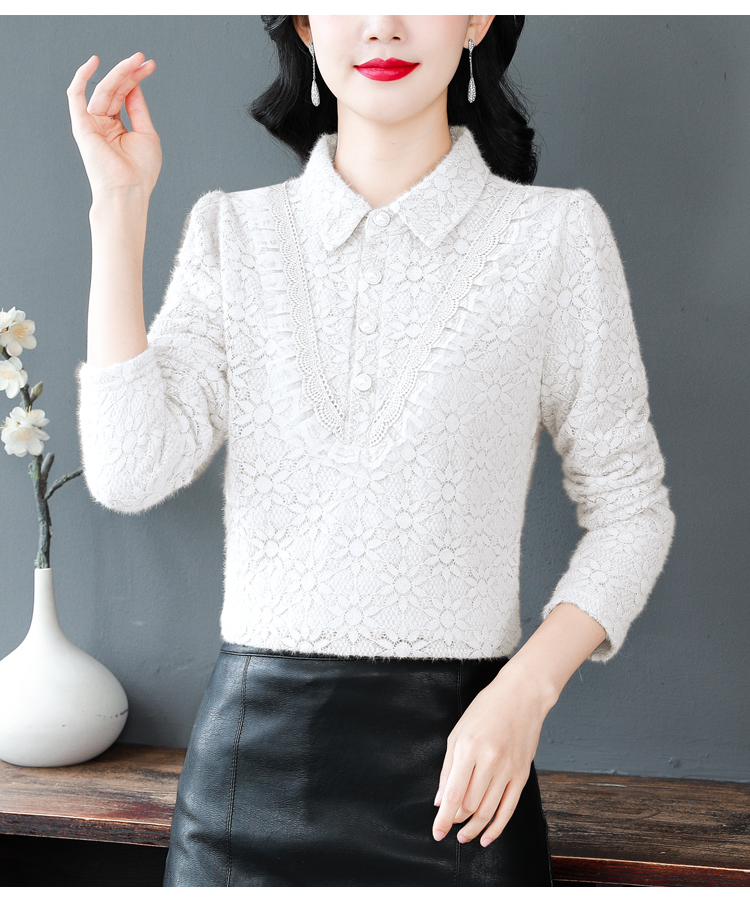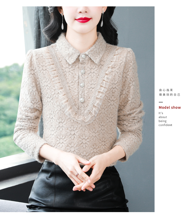 MY16073# 加绒/薄款羽毛纱蕾丝磨毛打底衫女百搭时尚内搭大码宽松显瘦小衫女裝貨源服裝批發
