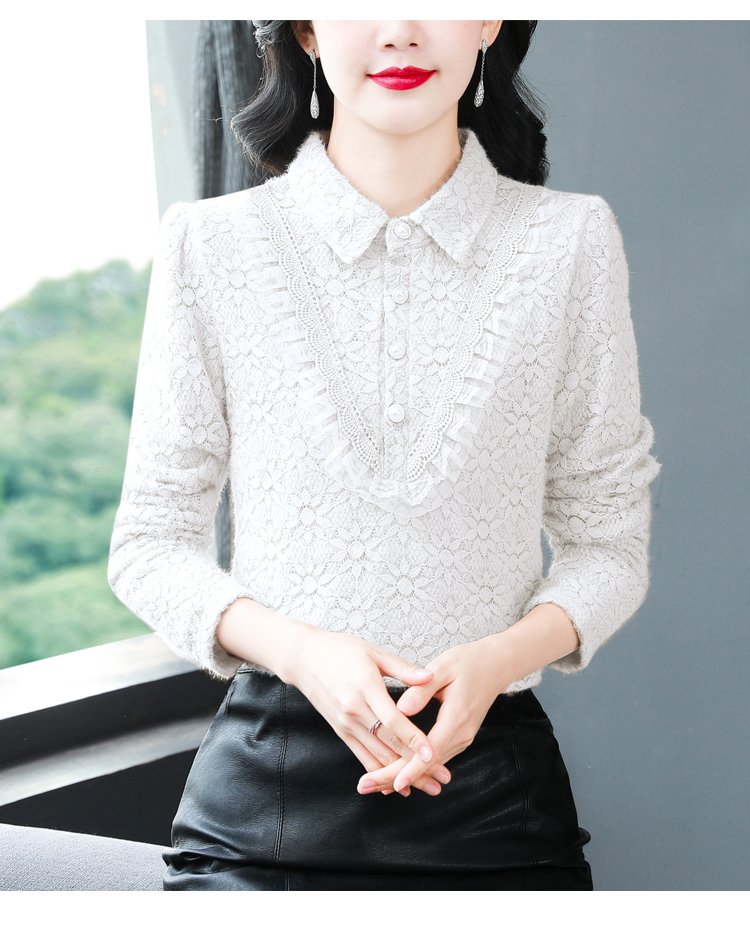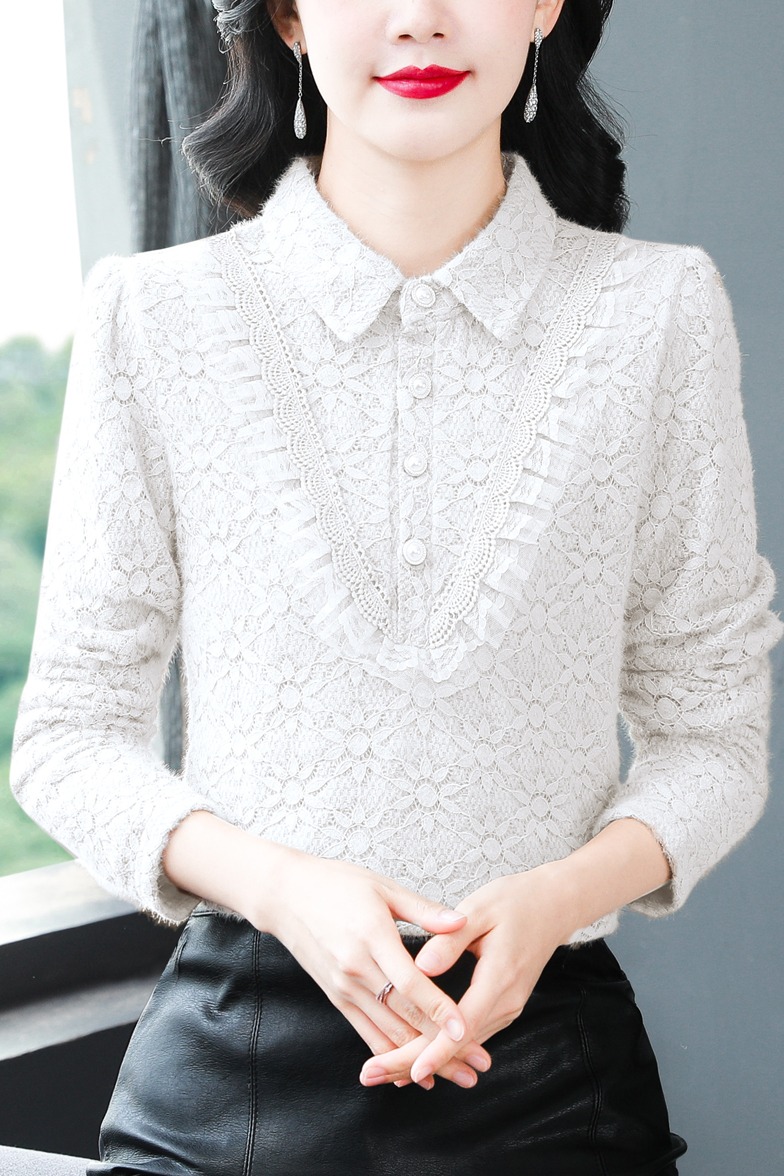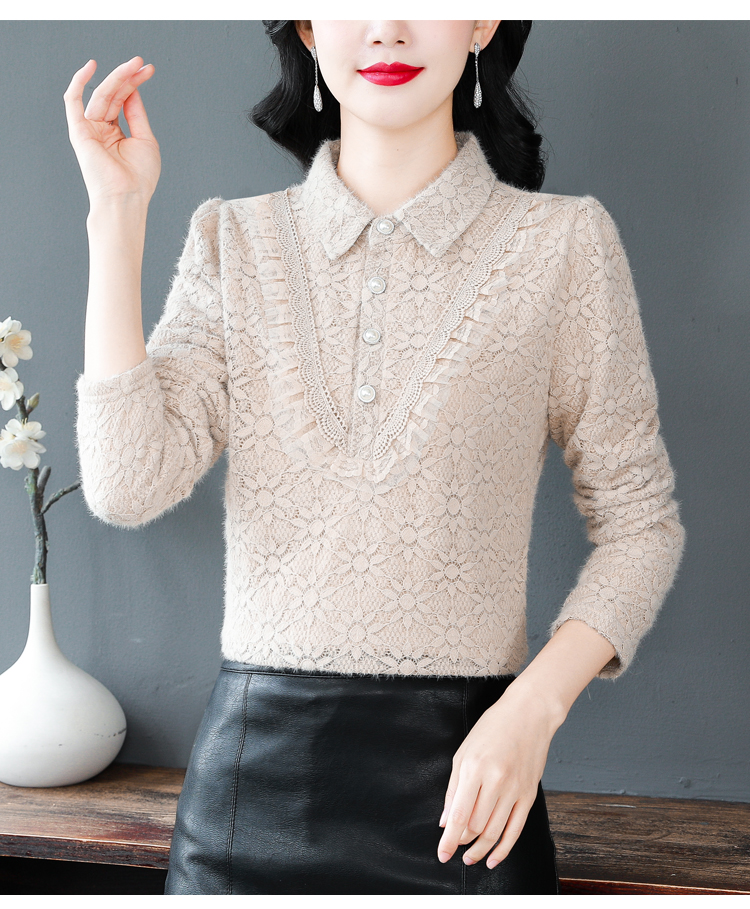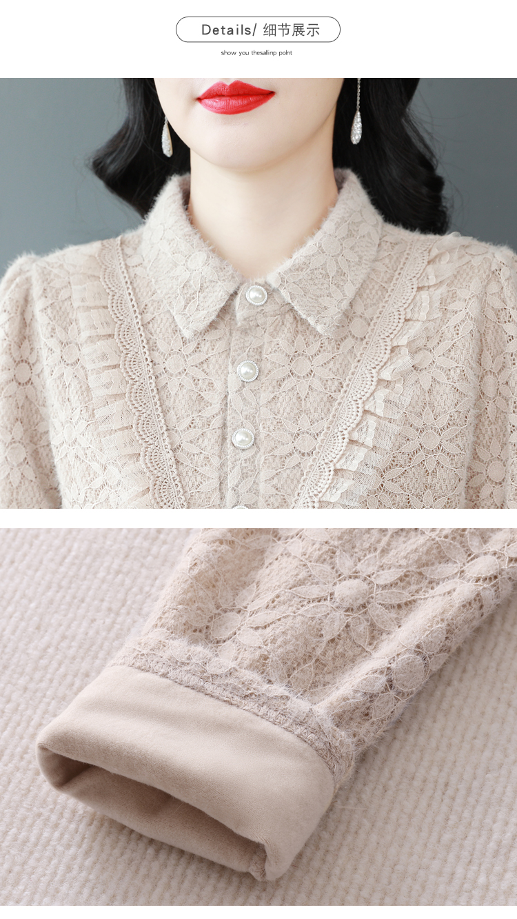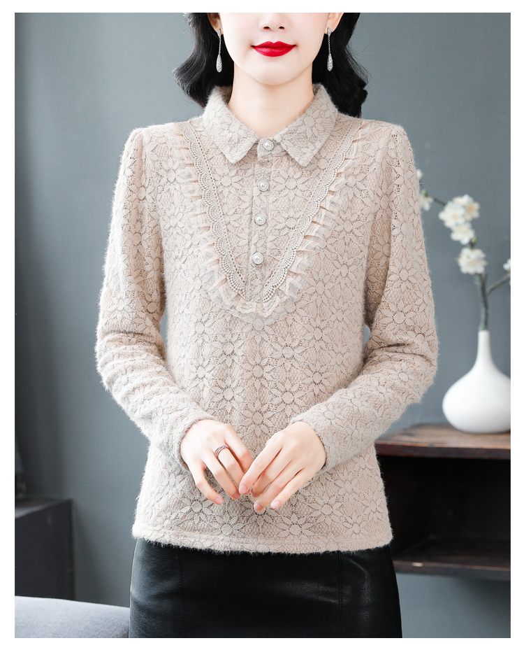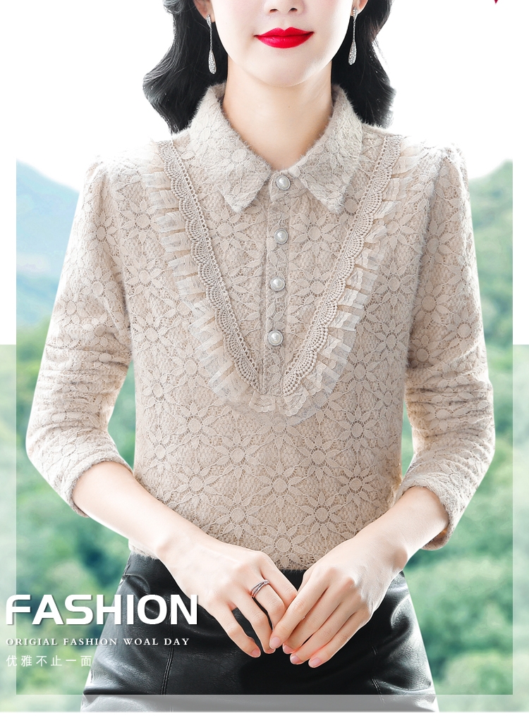 MY16073# 加绒/薄款羽毛纱蕾丝磨毛打底衫女百搭时尚内搭大码宽松显瘦小衫女裝貨源服裝批發