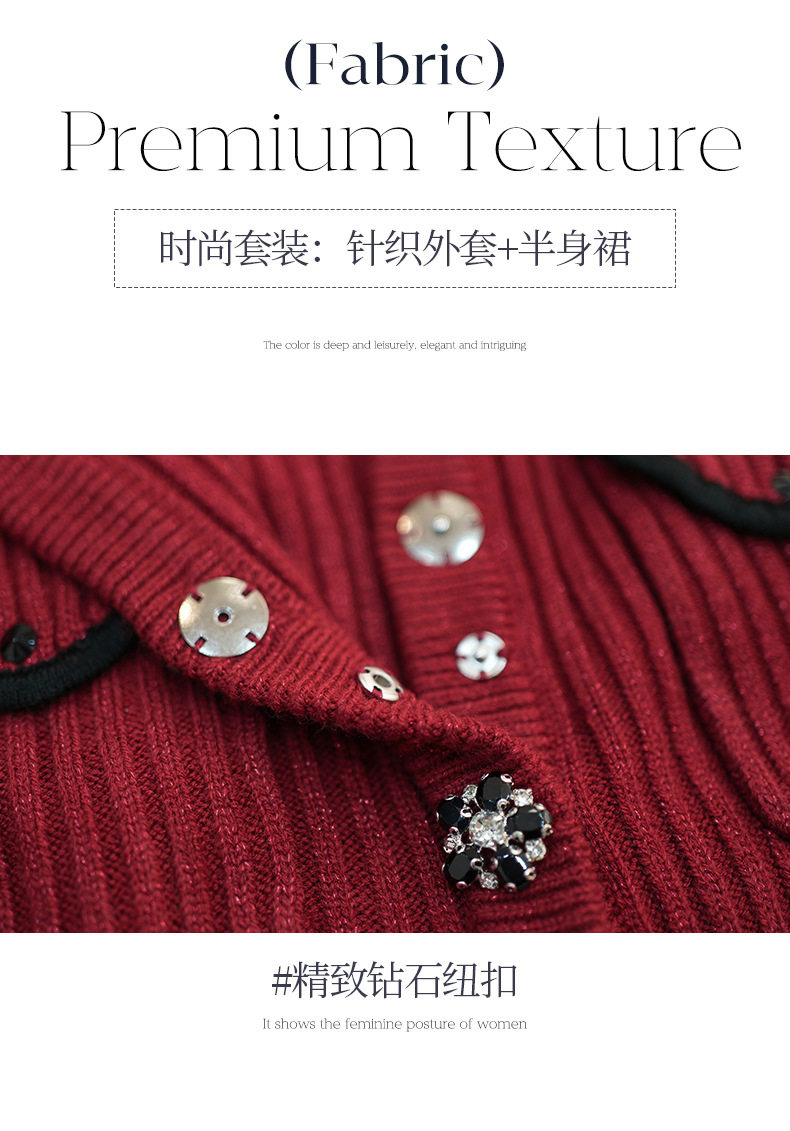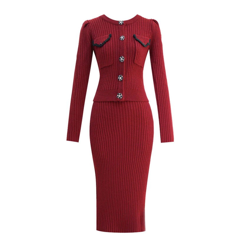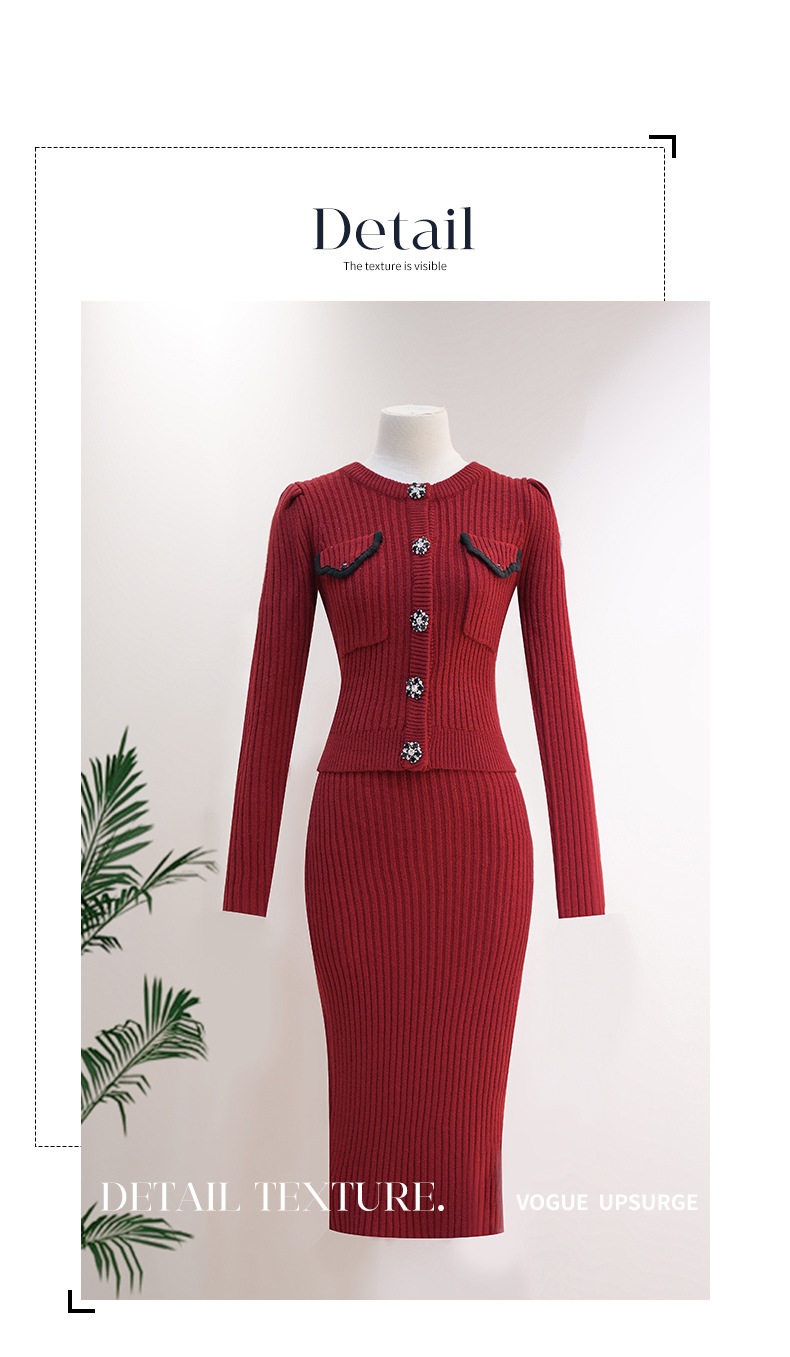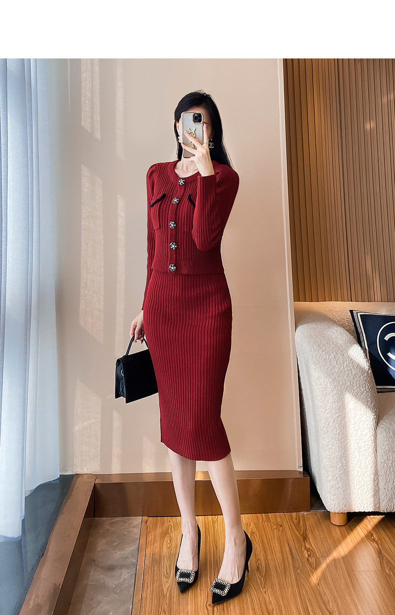MY16076# 韩国回门敬酒红色毛衣两件套外穿打底针织开衫包裙半身裙套装女裝貨源服裝批發