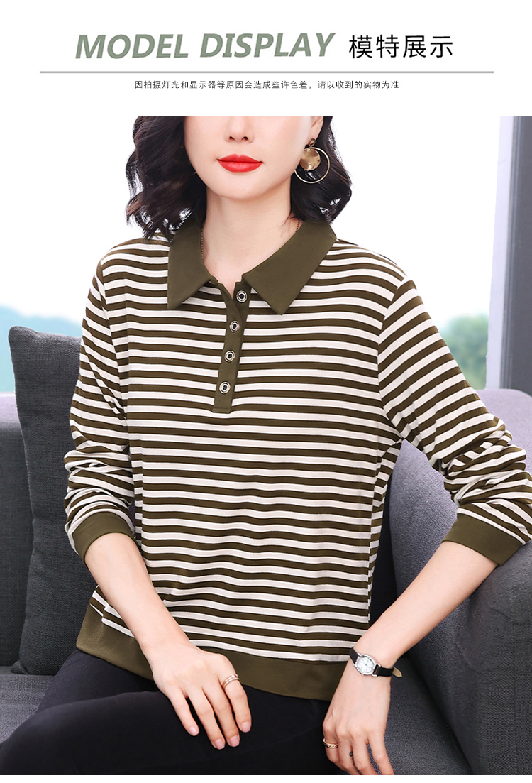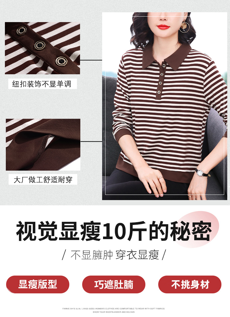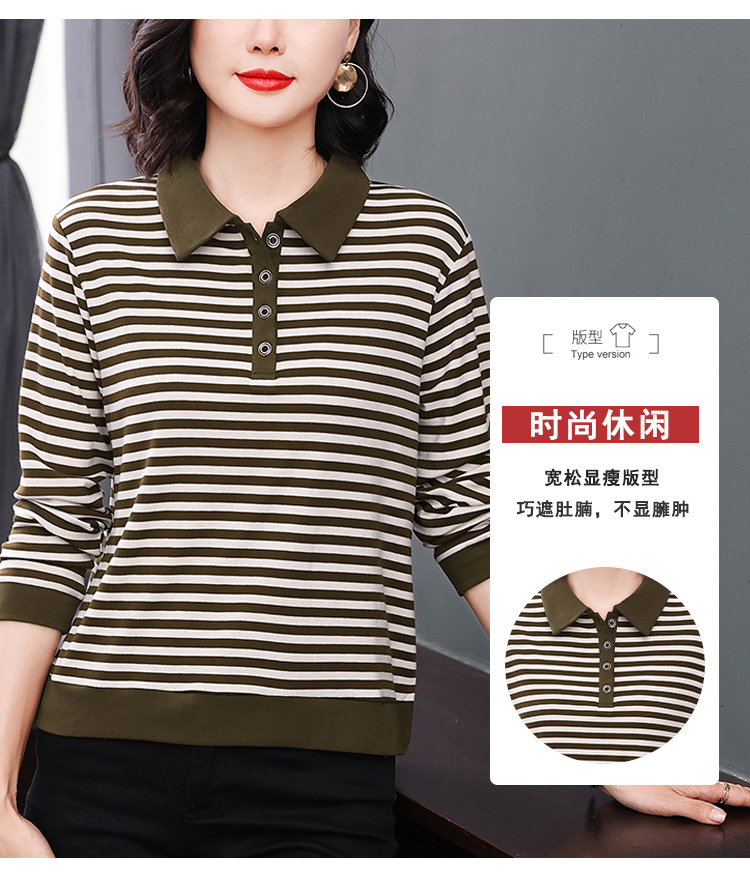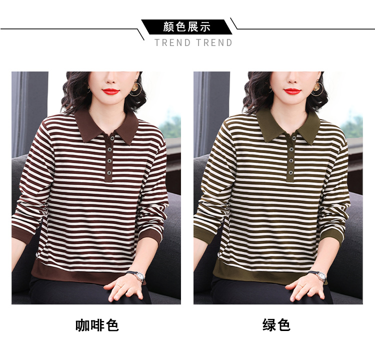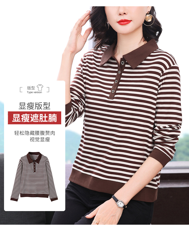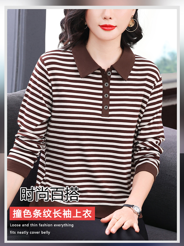 MY16099#新款时尚撞色条纹体恤衫宽松长袖休闲上衣女女裝貨源服裝批發