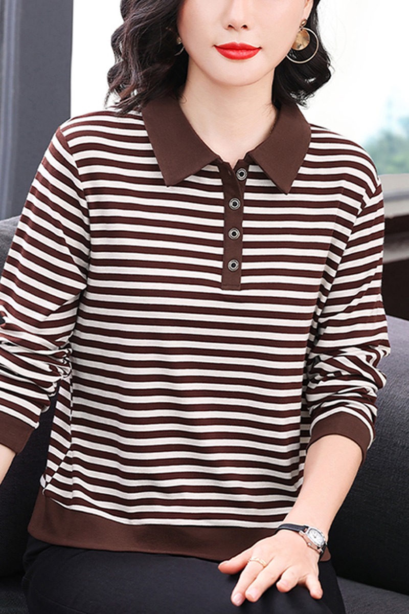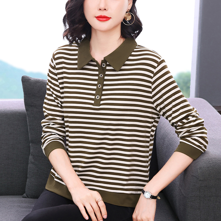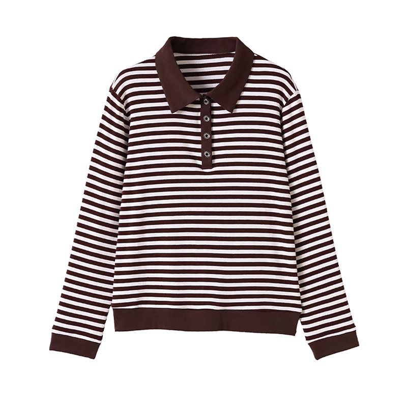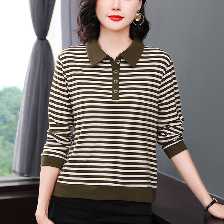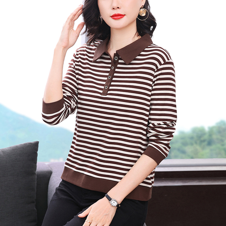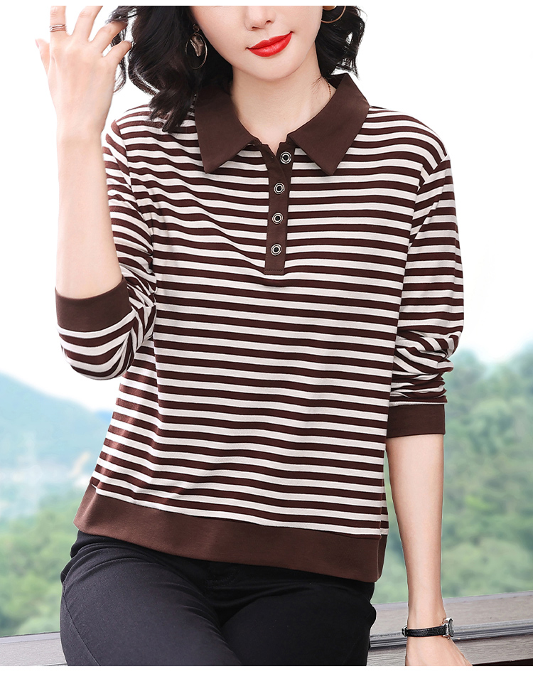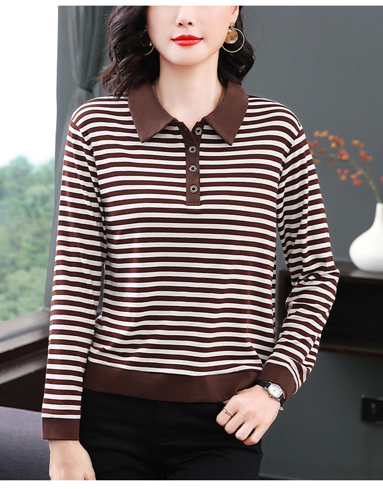 MY16099#新款时尚撞色条纹体恤衫宽松长袖休闲上衣女女裝貨源服裝批發