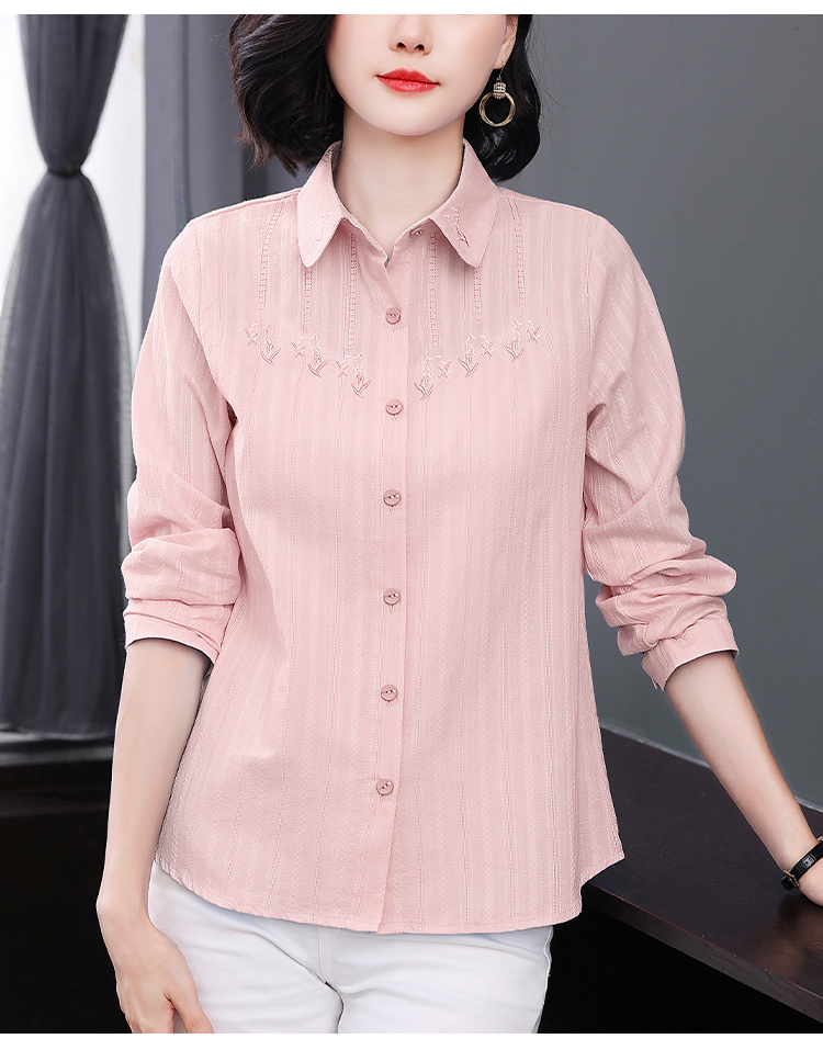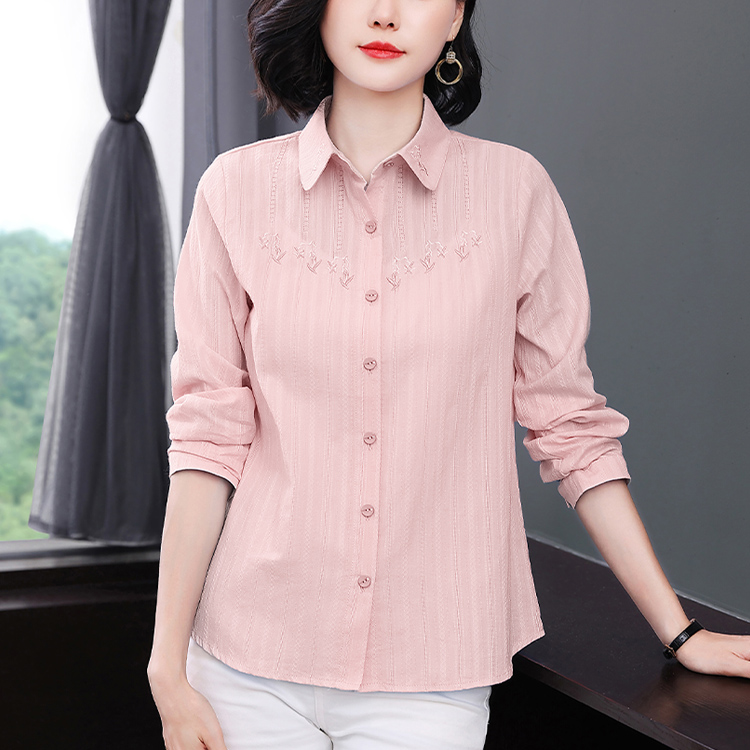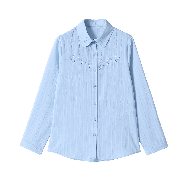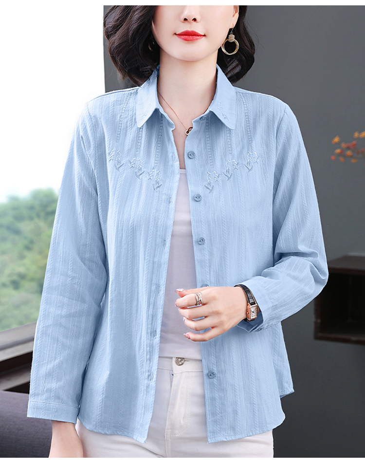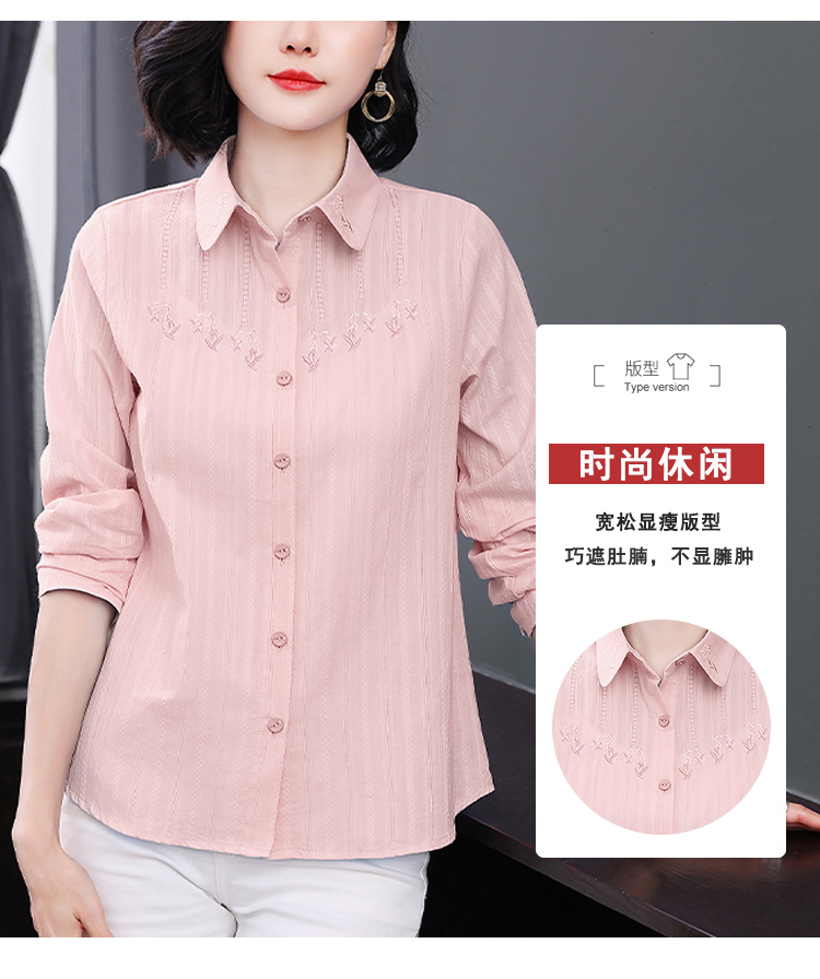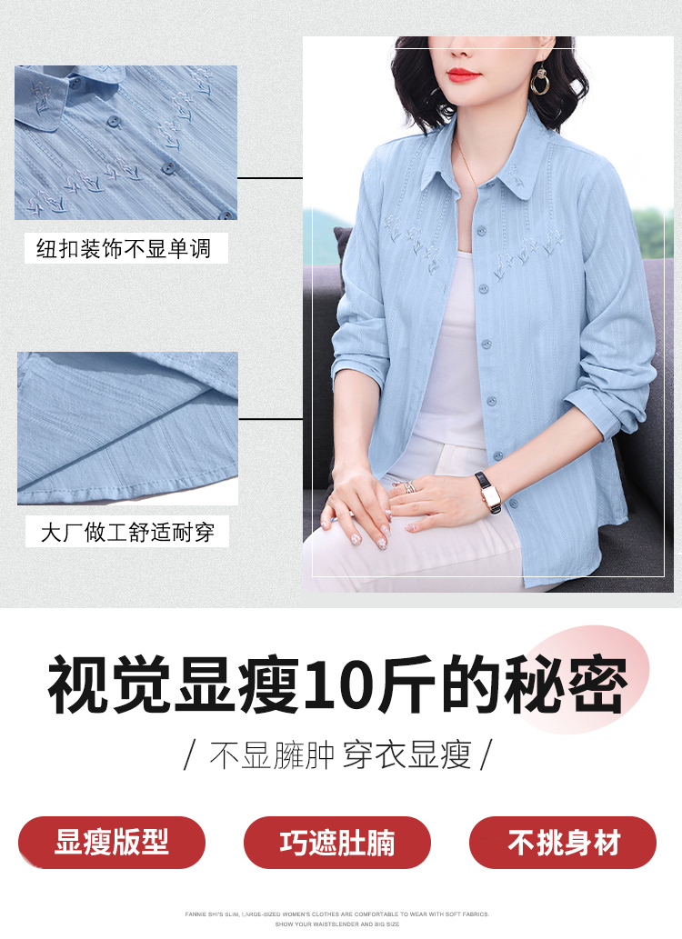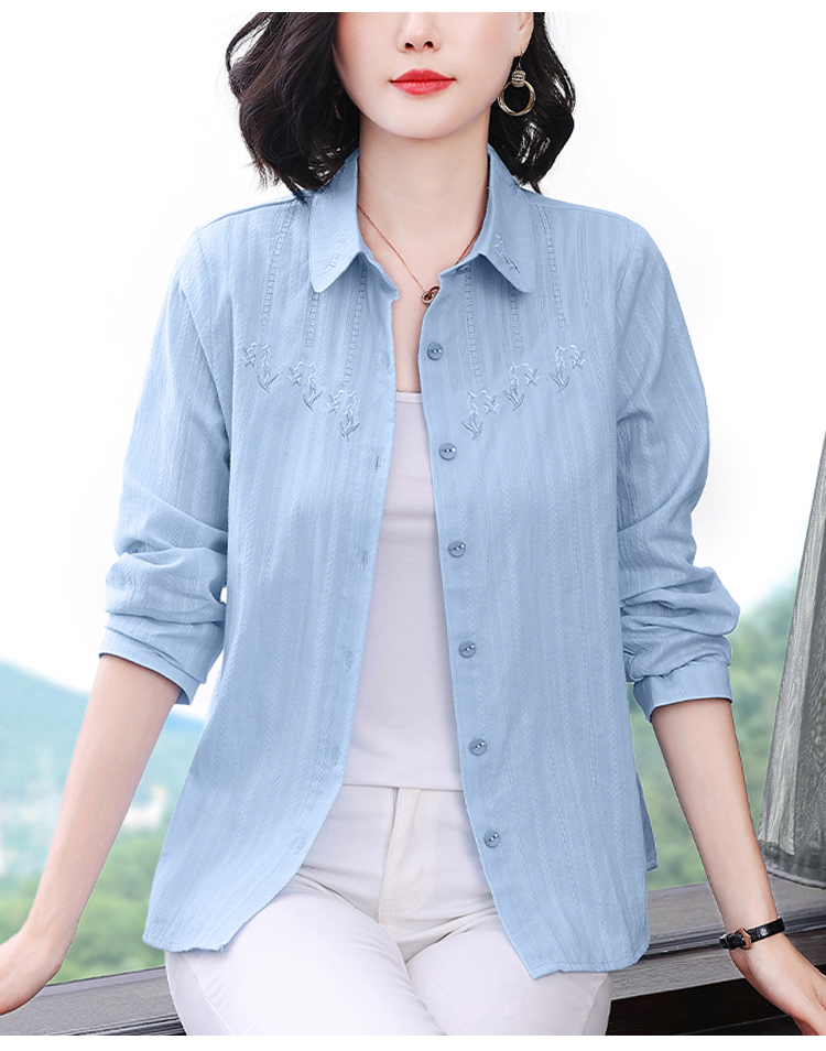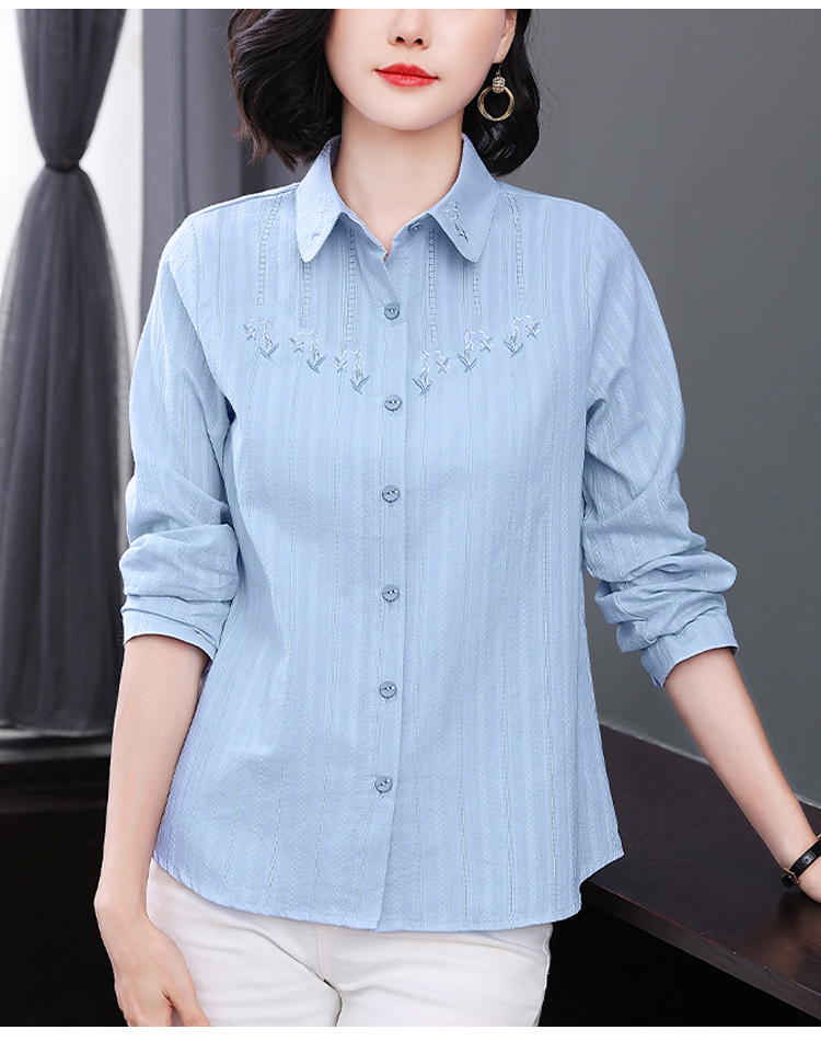 MY16102#纯棉长袖衬衫女上衣大码新款刺绣翻领休闲宽松单排扣女裝貨源服裝批發