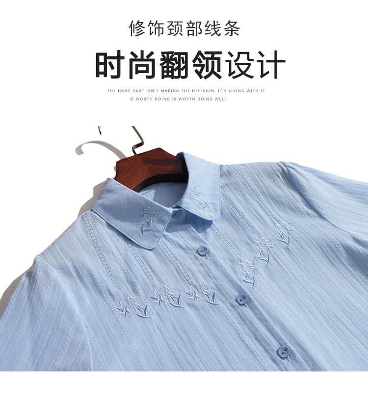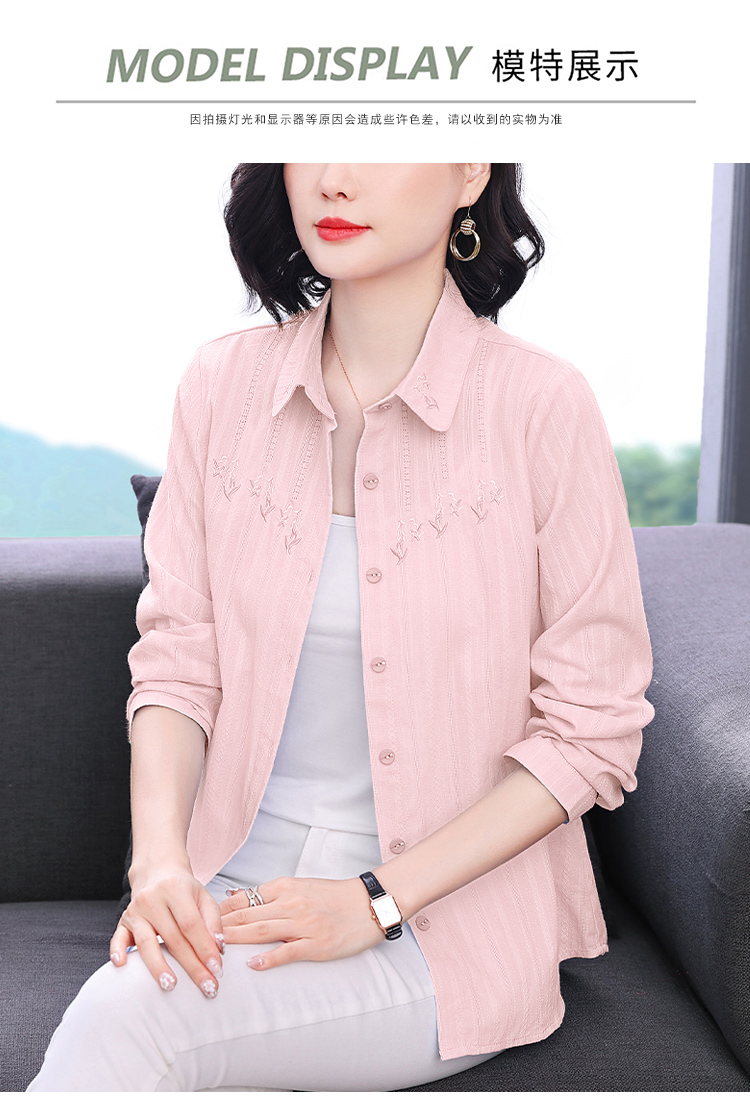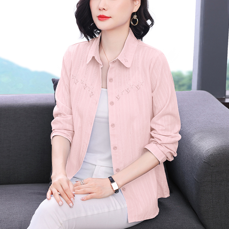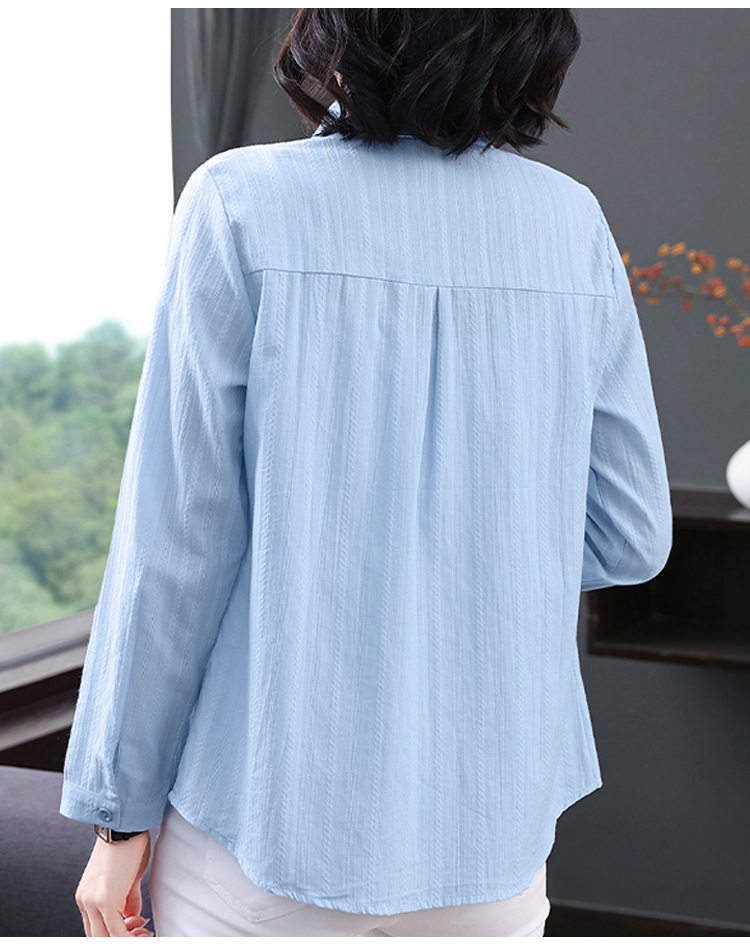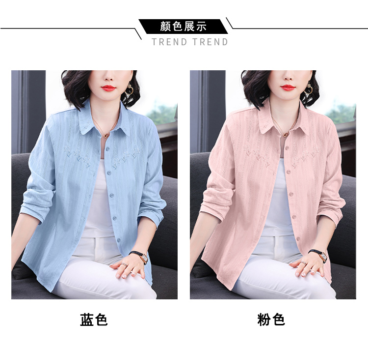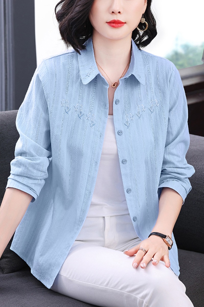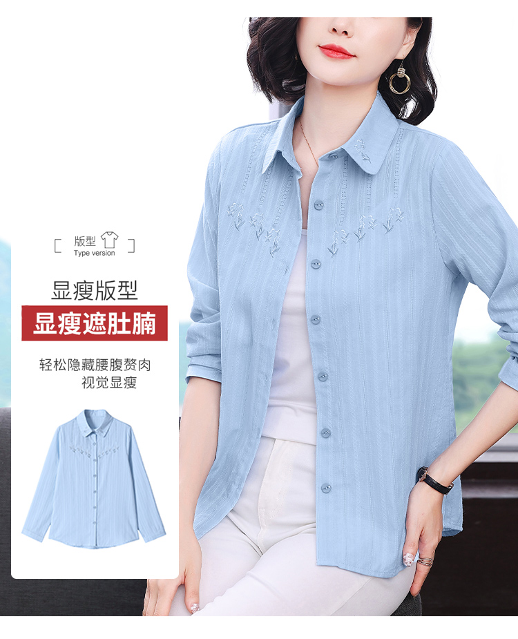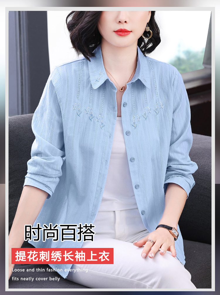 MY16102#纯棉长袖衬衫女上衣大码新款刺绣翻领休闲宽松单排扣女裝貨源服裝批發