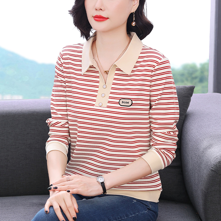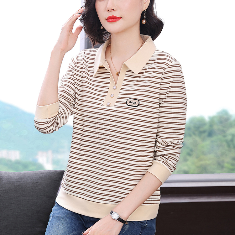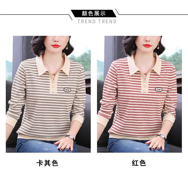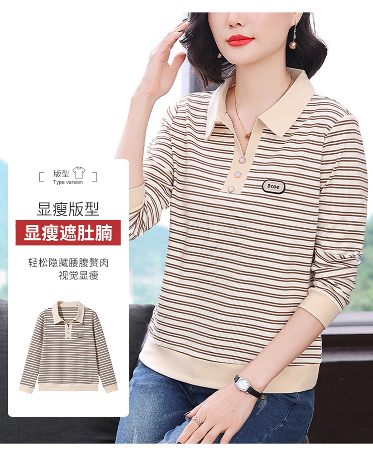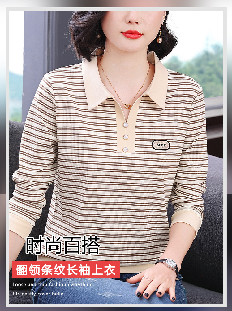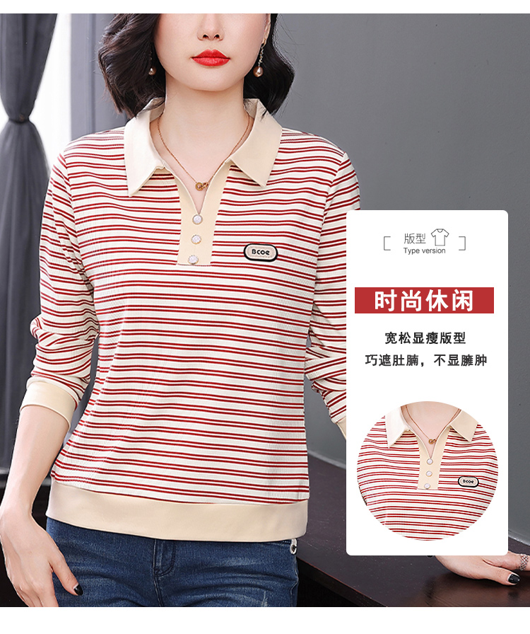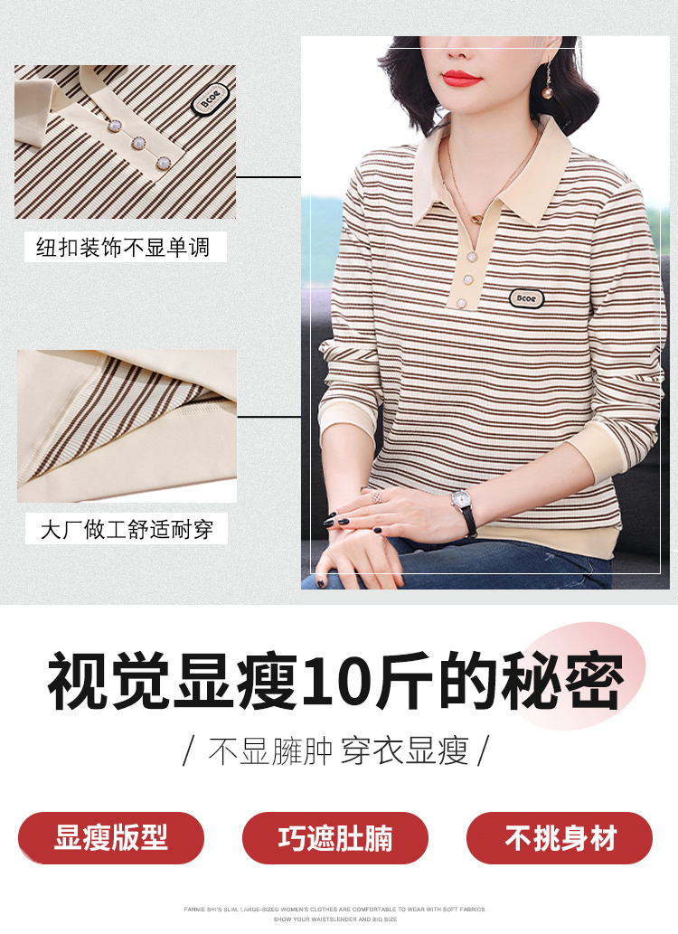 MY16106#长袖T恤新款宽松洋气减龄条纹大码百搭上衣女裝貨源服裝批發