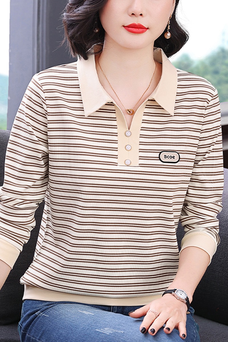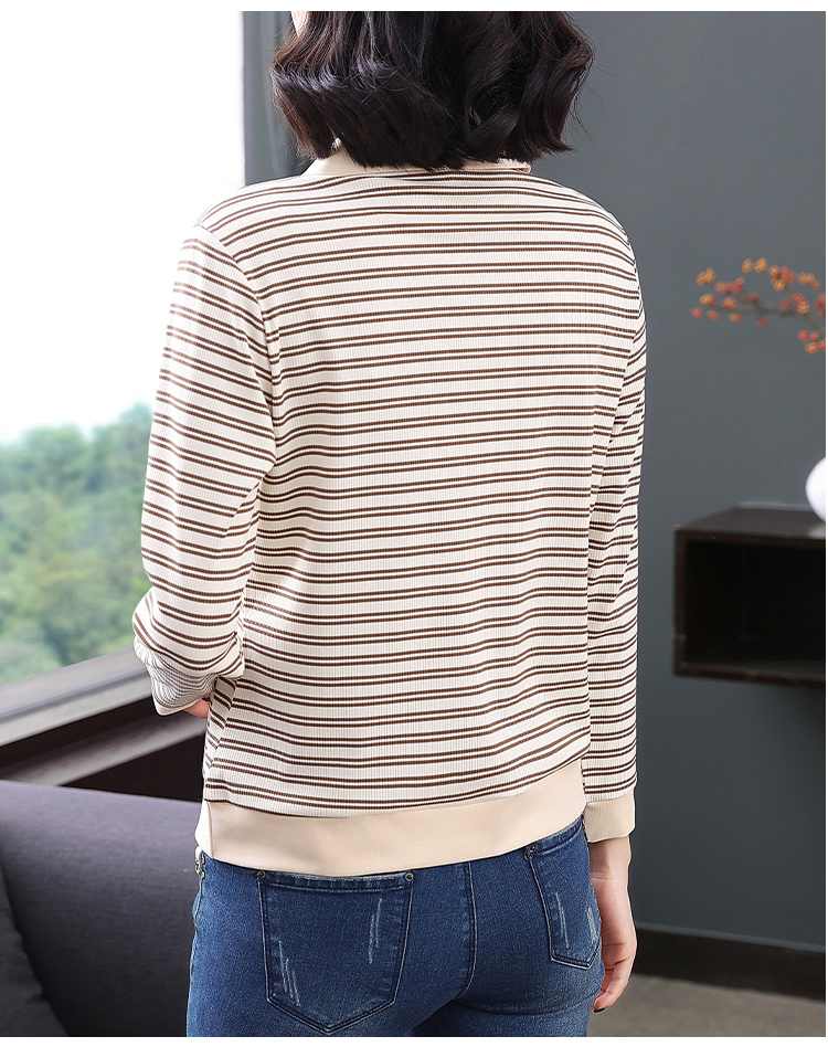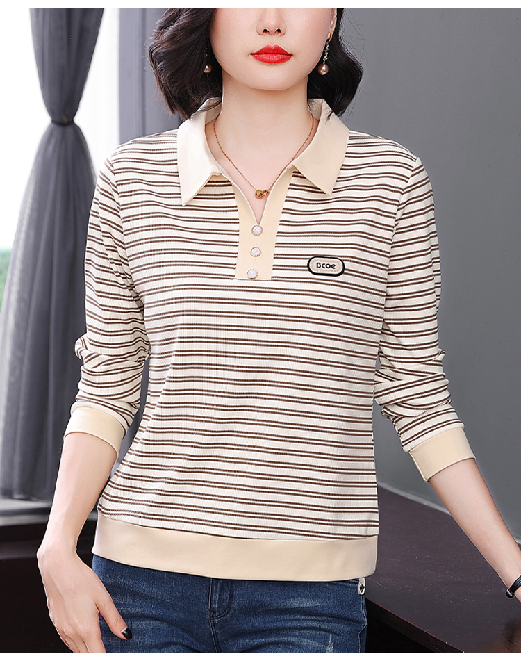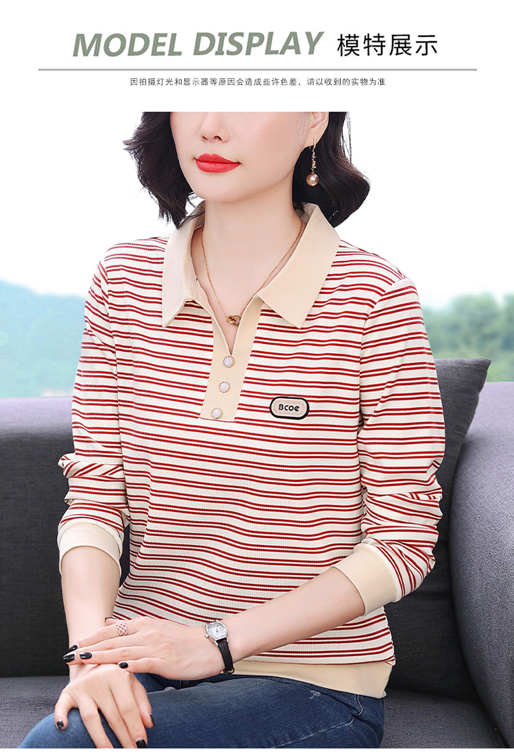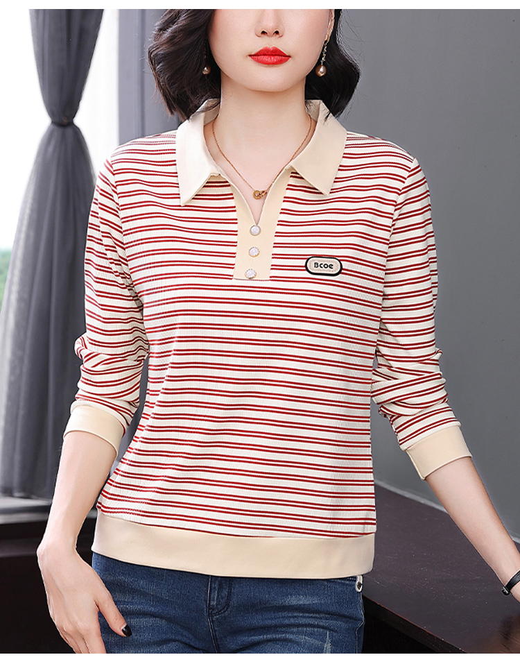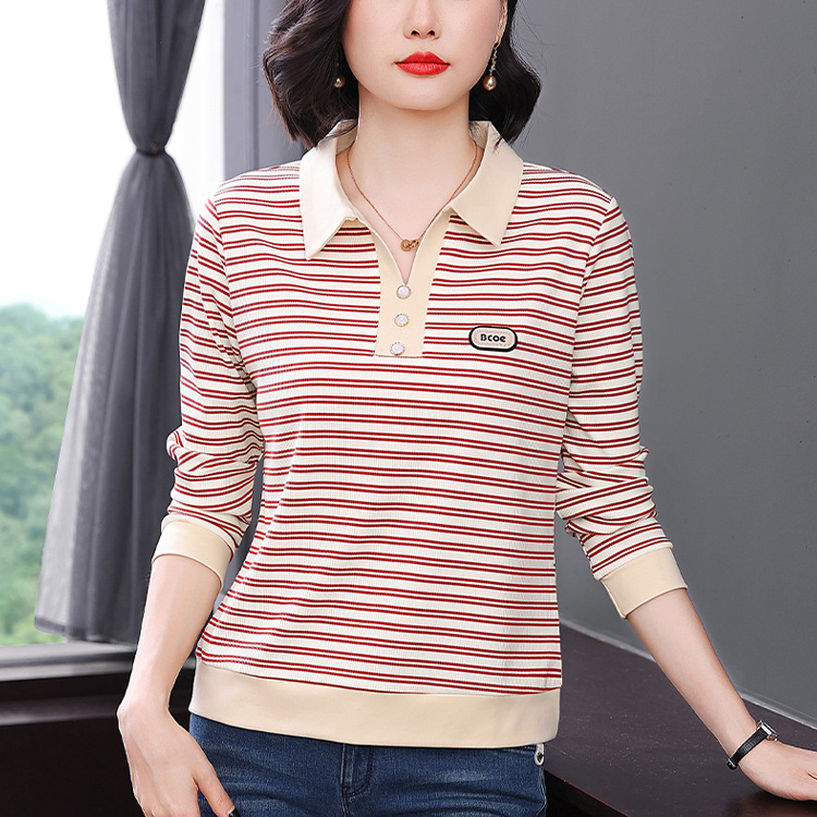 MY16106#长袖T恤新款宽松洋气减龄条纹大码百搭上衣女裝貨源服裝批發
