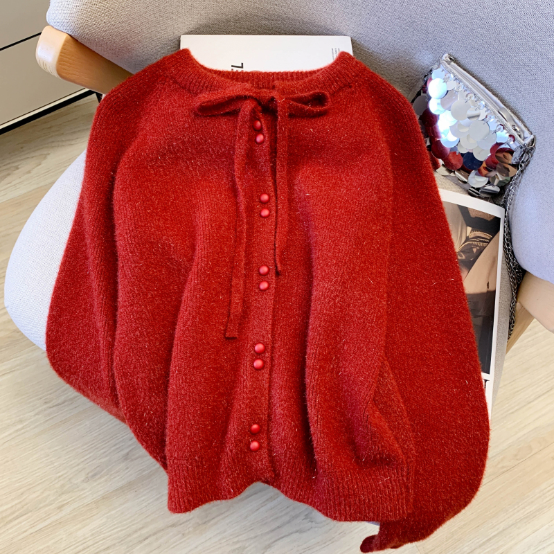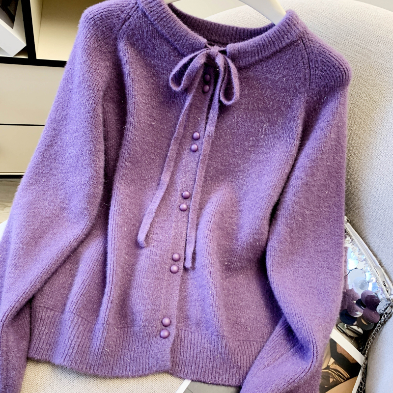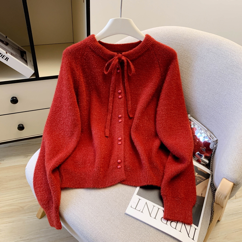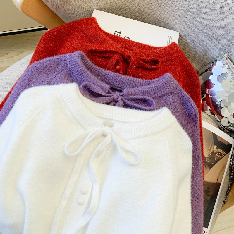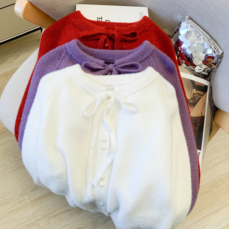 MY16123#韩版宽松显瘦小香风开衫蝴蝶结设计上衣减龄女潮女裝貨源服裝批發