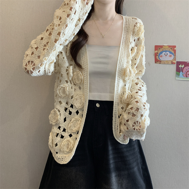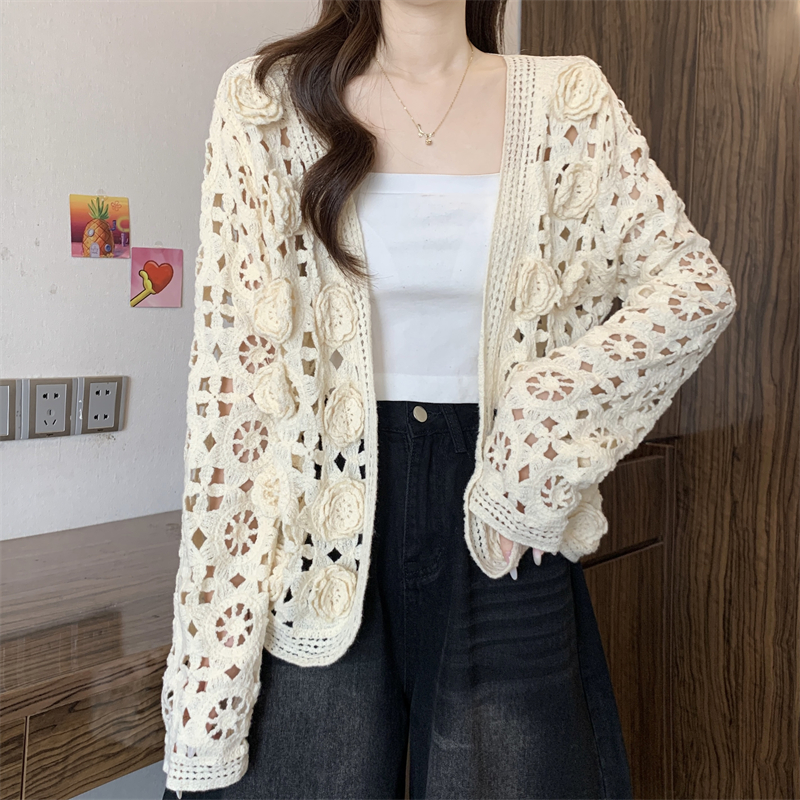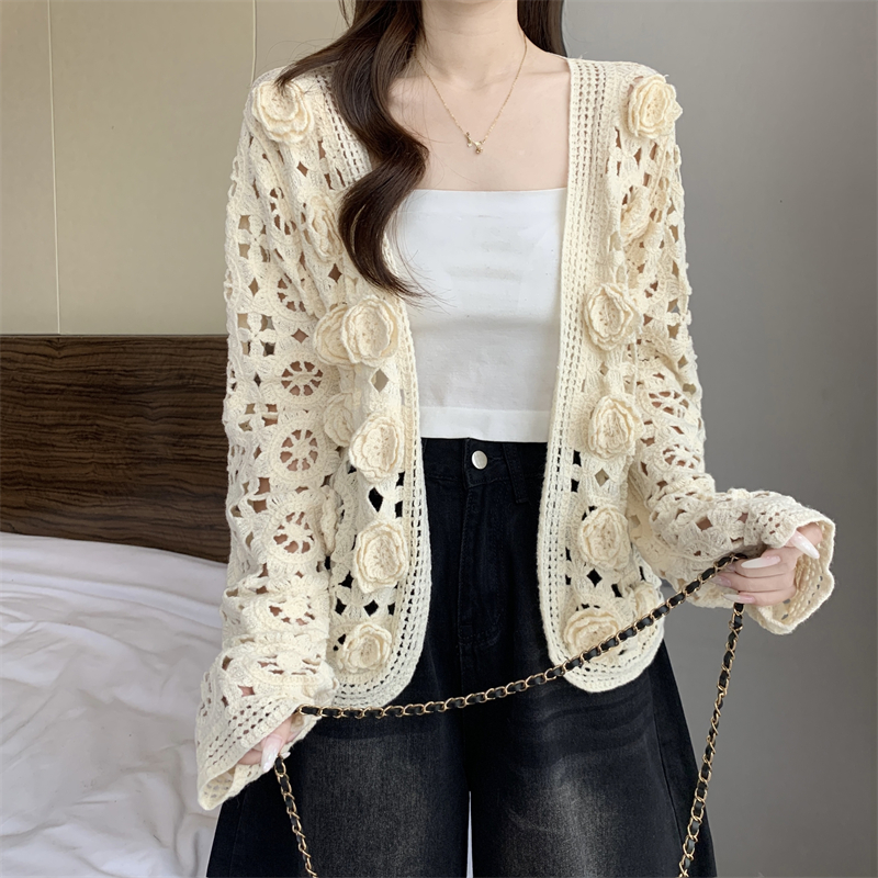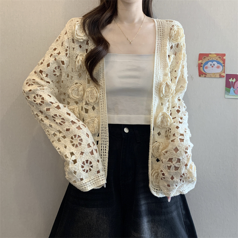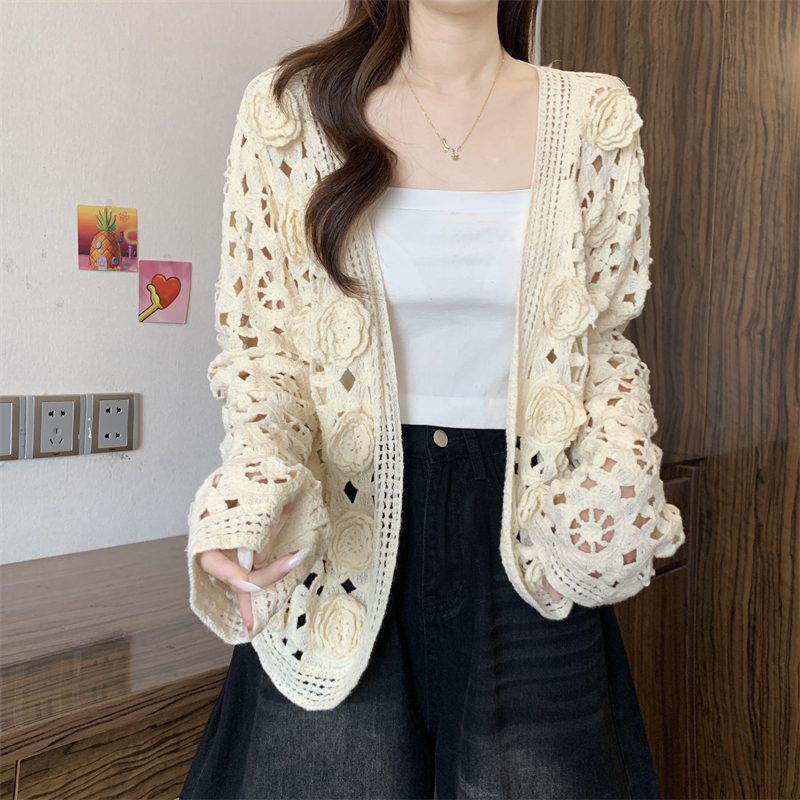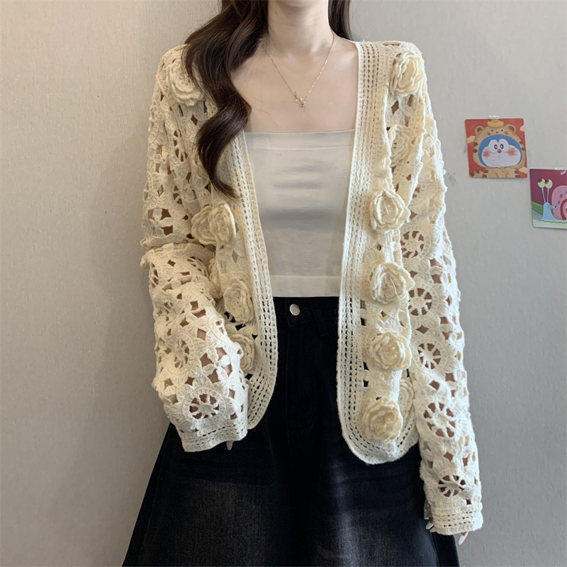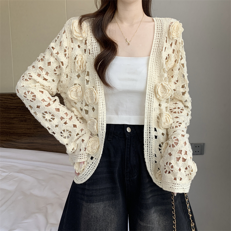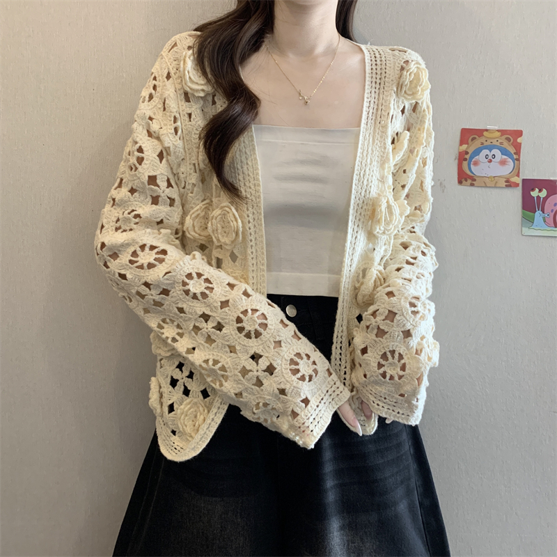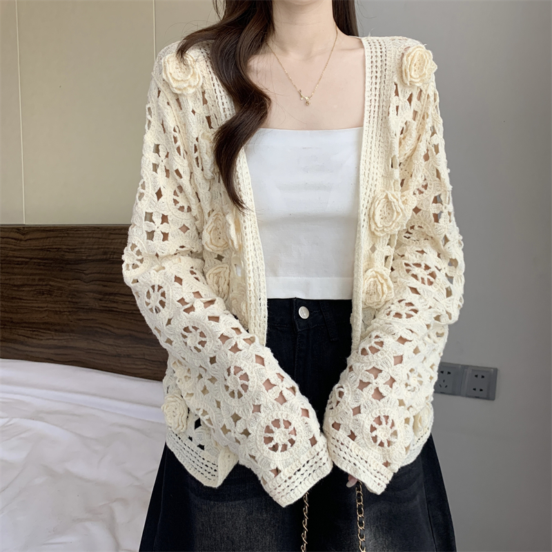 MY16125#大码法式钩花镂空立体花针织开衫女早春高级感防晒罩衫上衣女裝貨源服裝批發