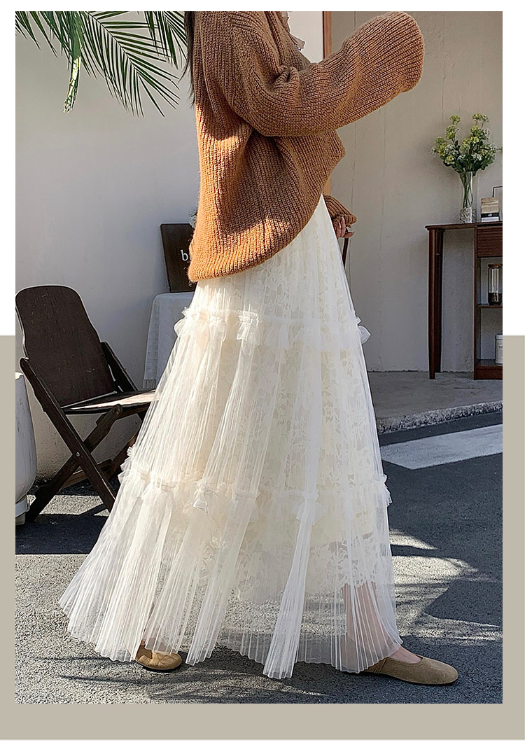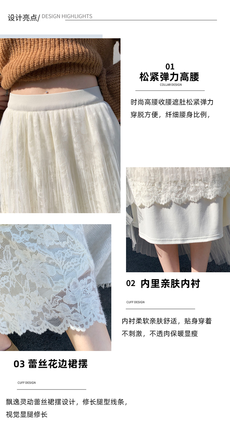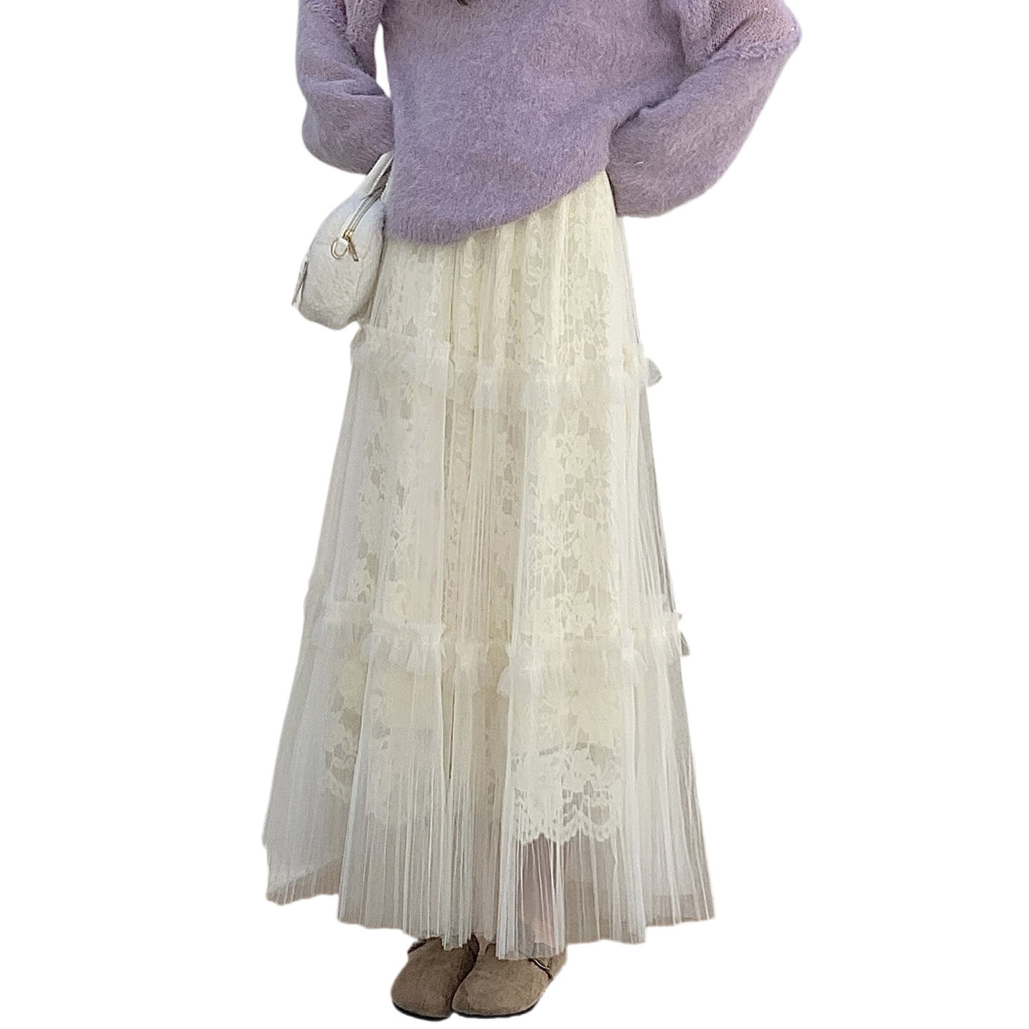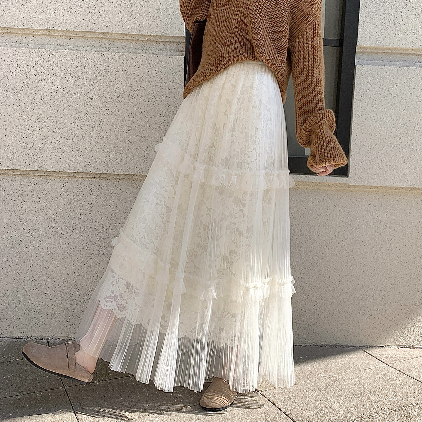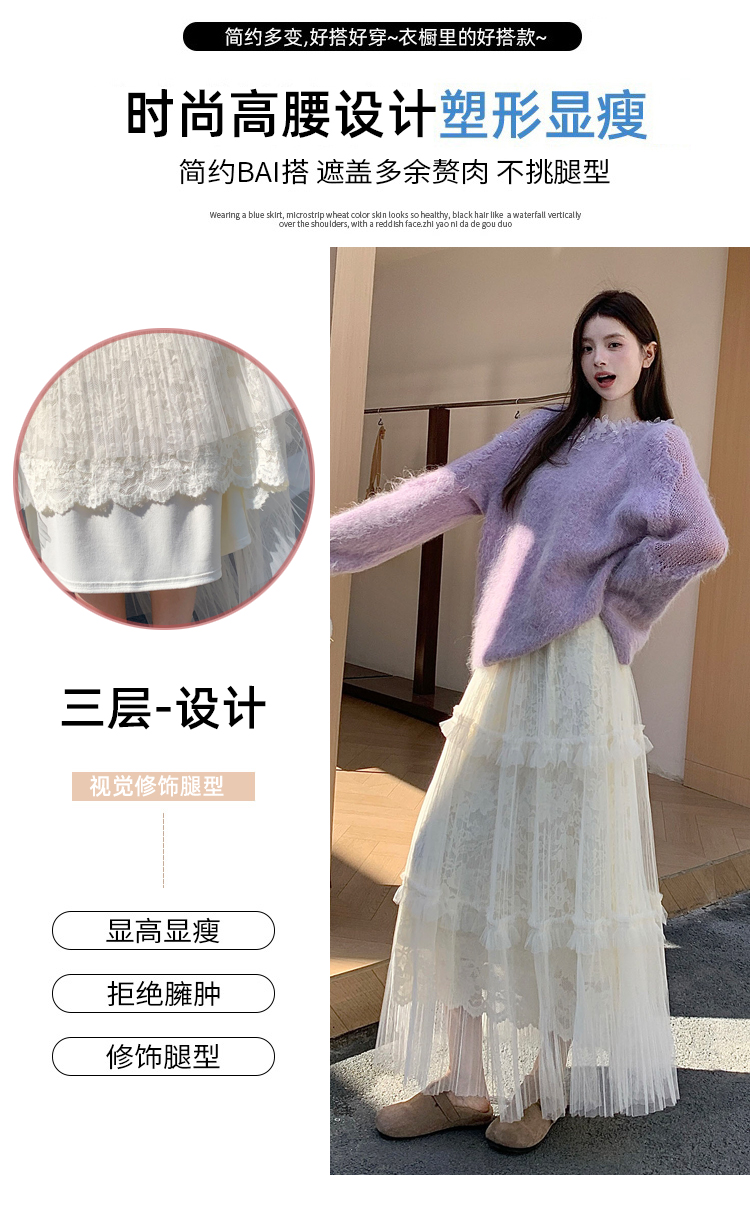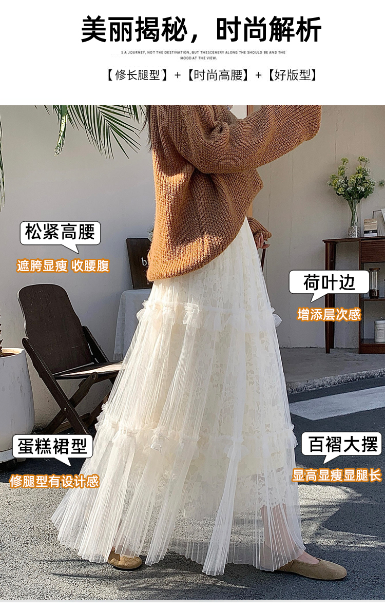 MY16134# 柔美网纱拼接蛋糕裙法式芭蕾风高腰A字中长款伞裙女裝貨源服裝批發