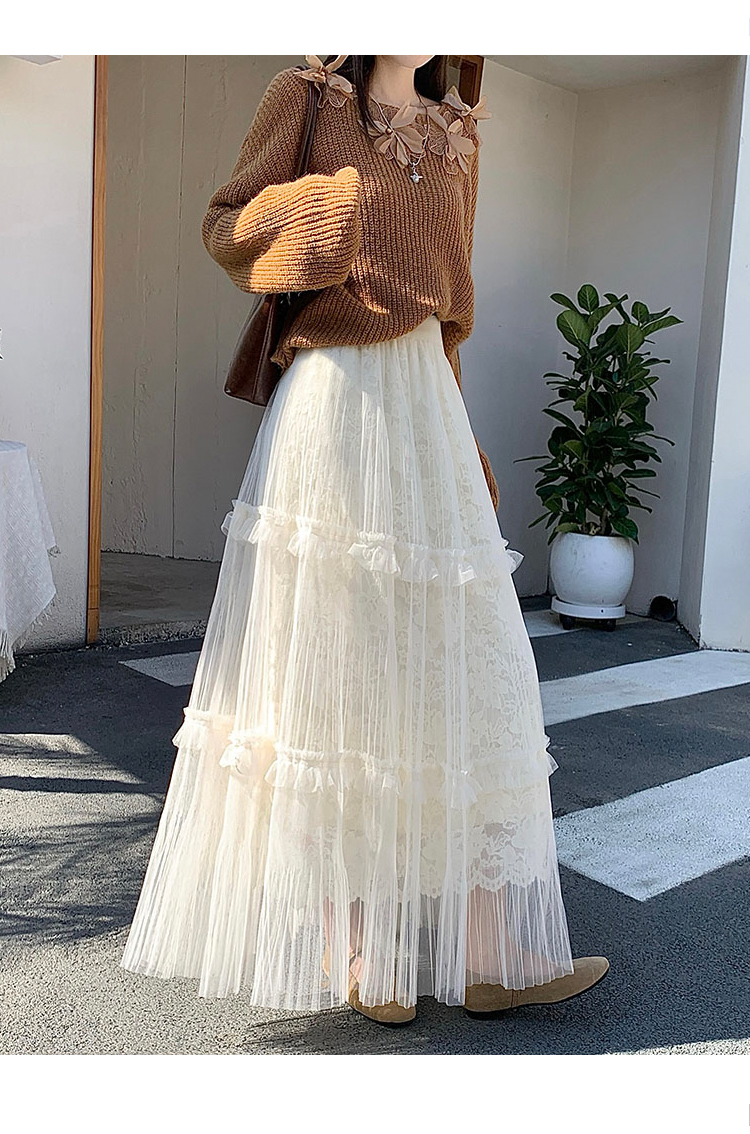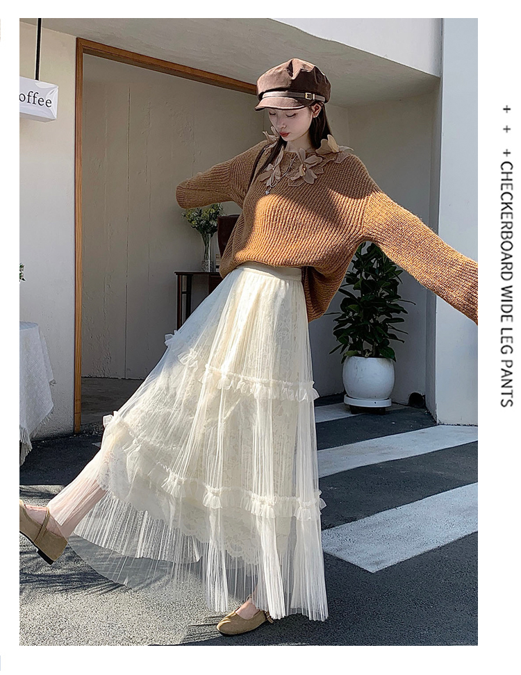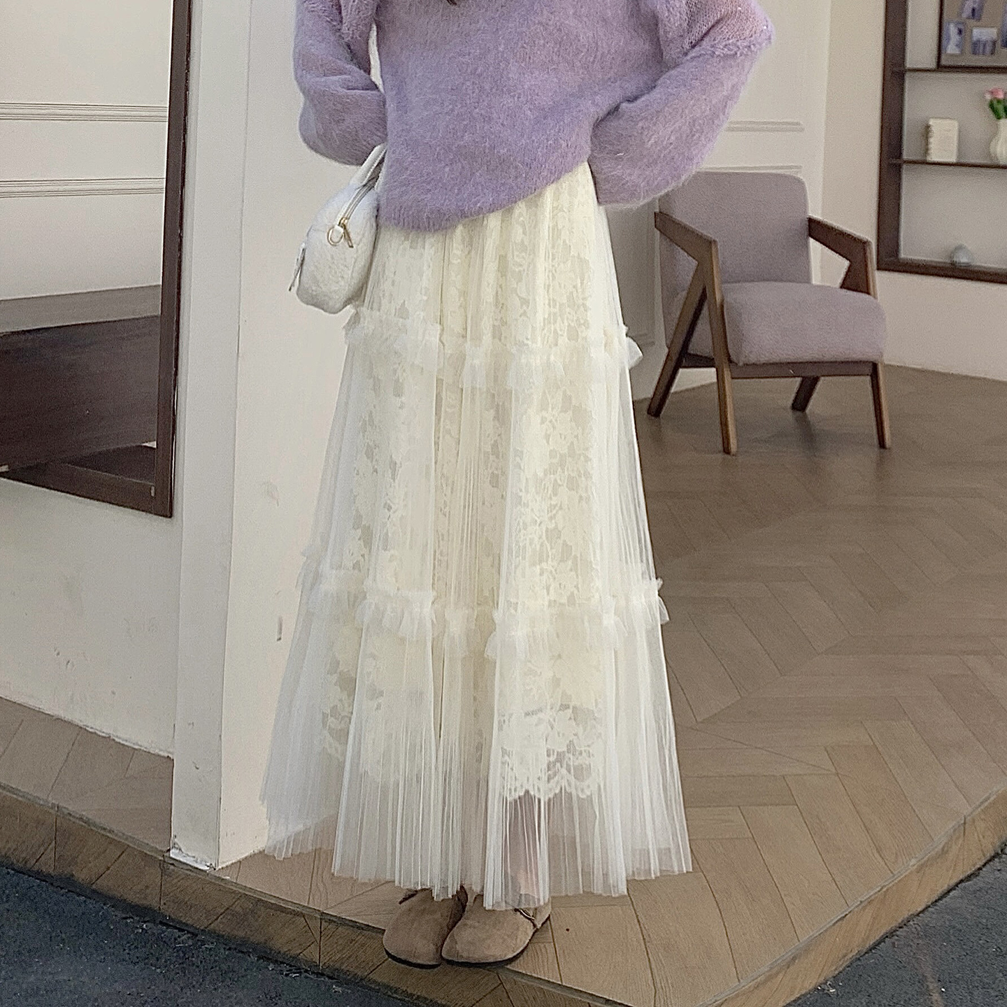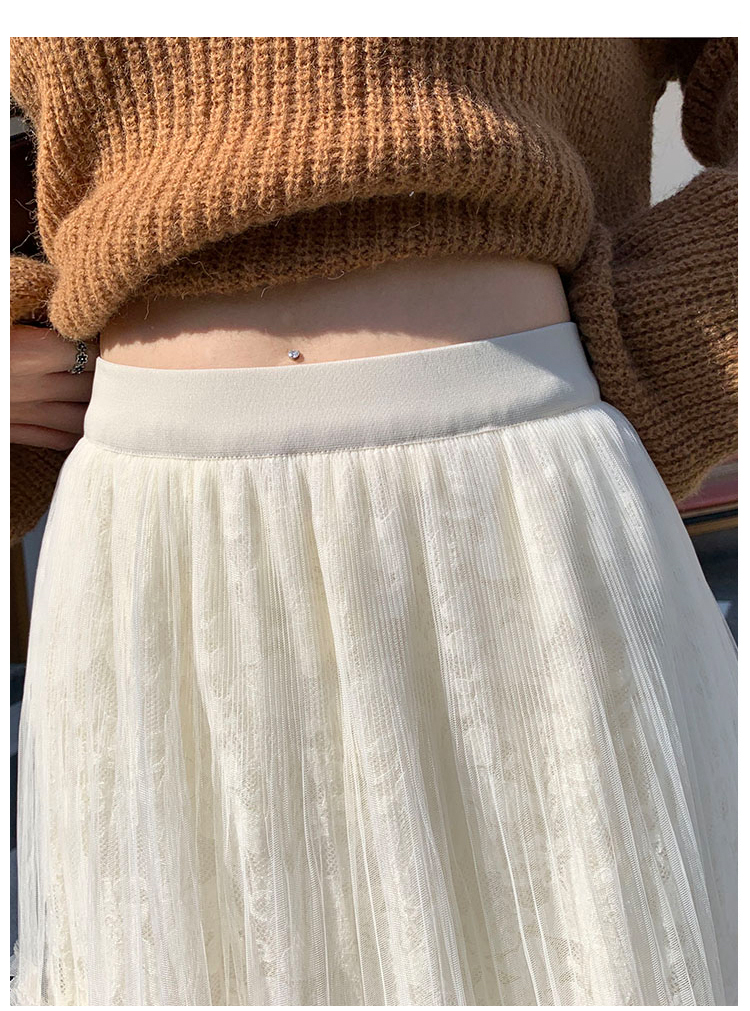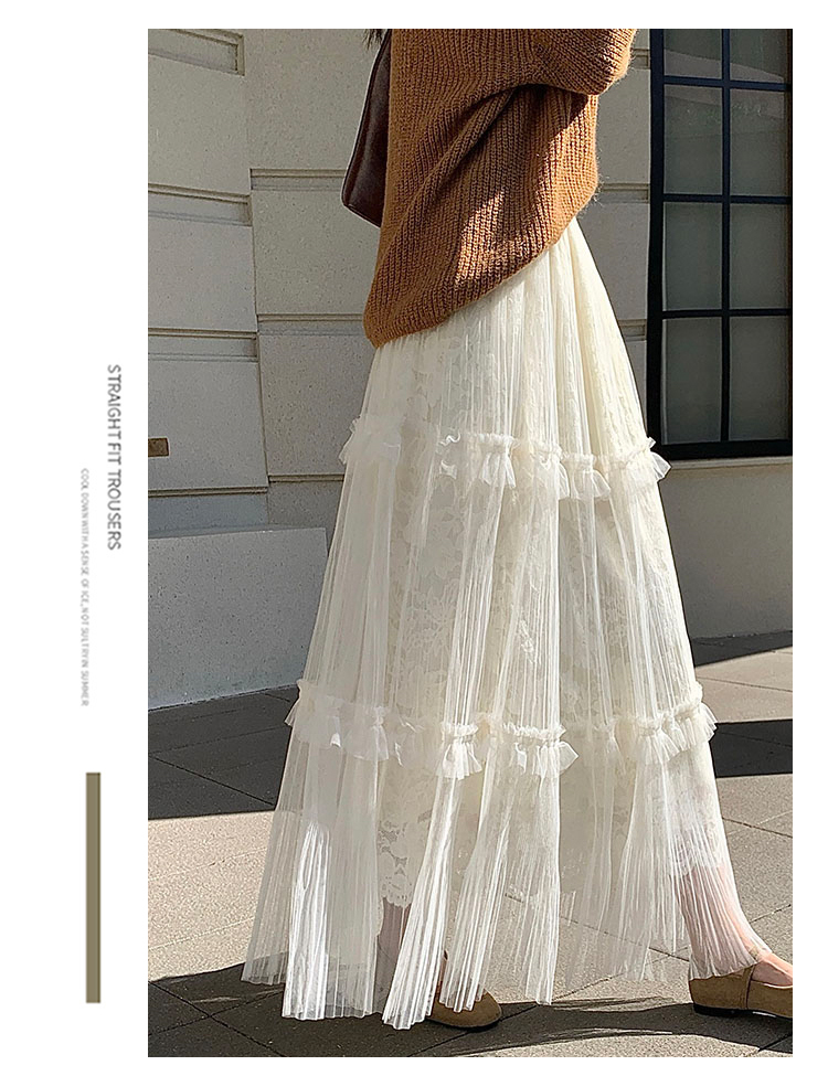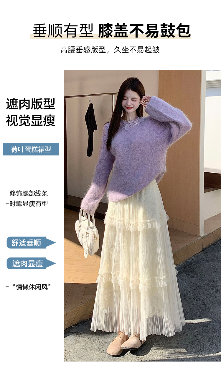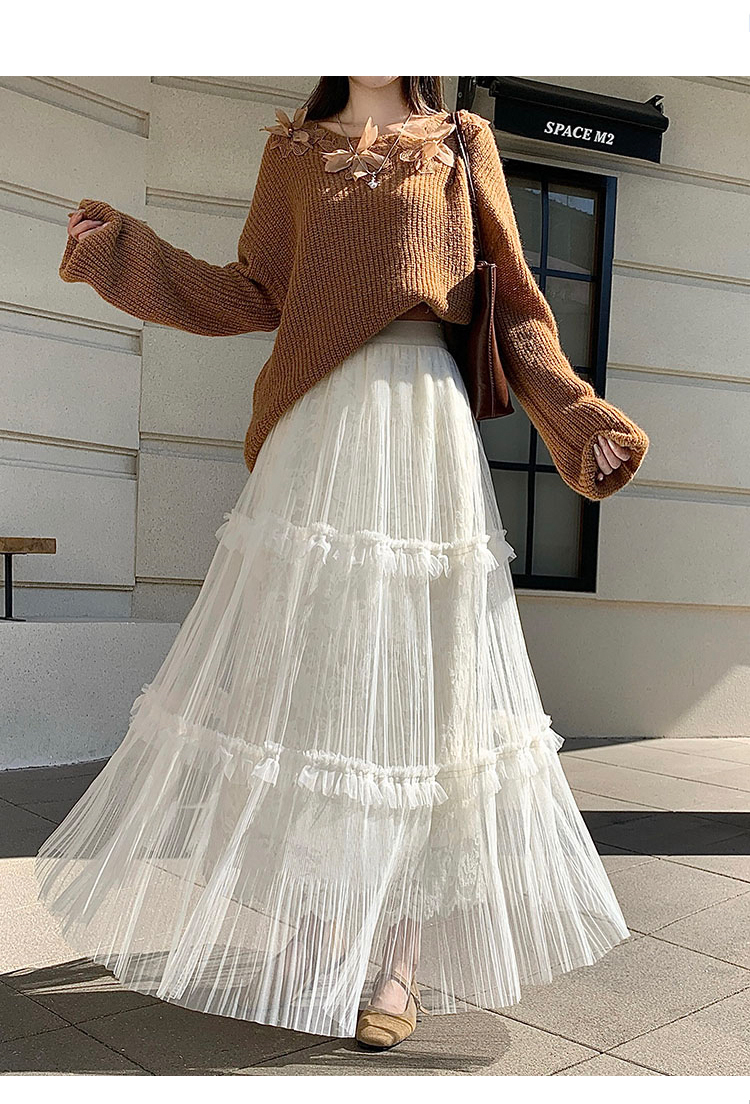 MY16134# 柔美网纱拼接蛋糕裙法式芭蕾风高腰A字中长款伞裙女裝貨源服裝批發