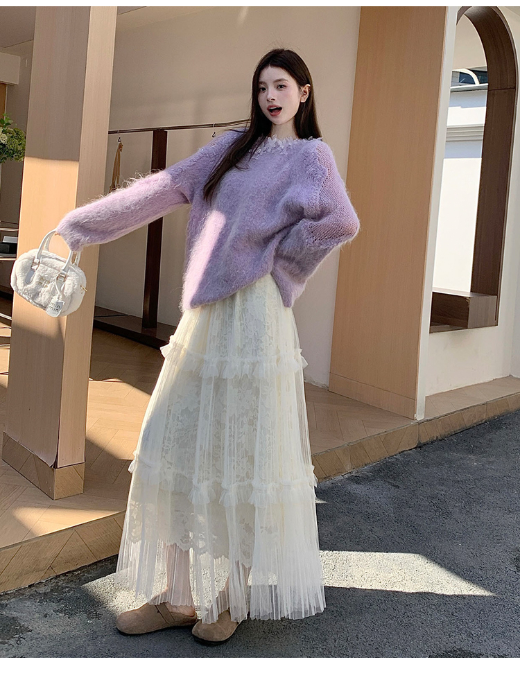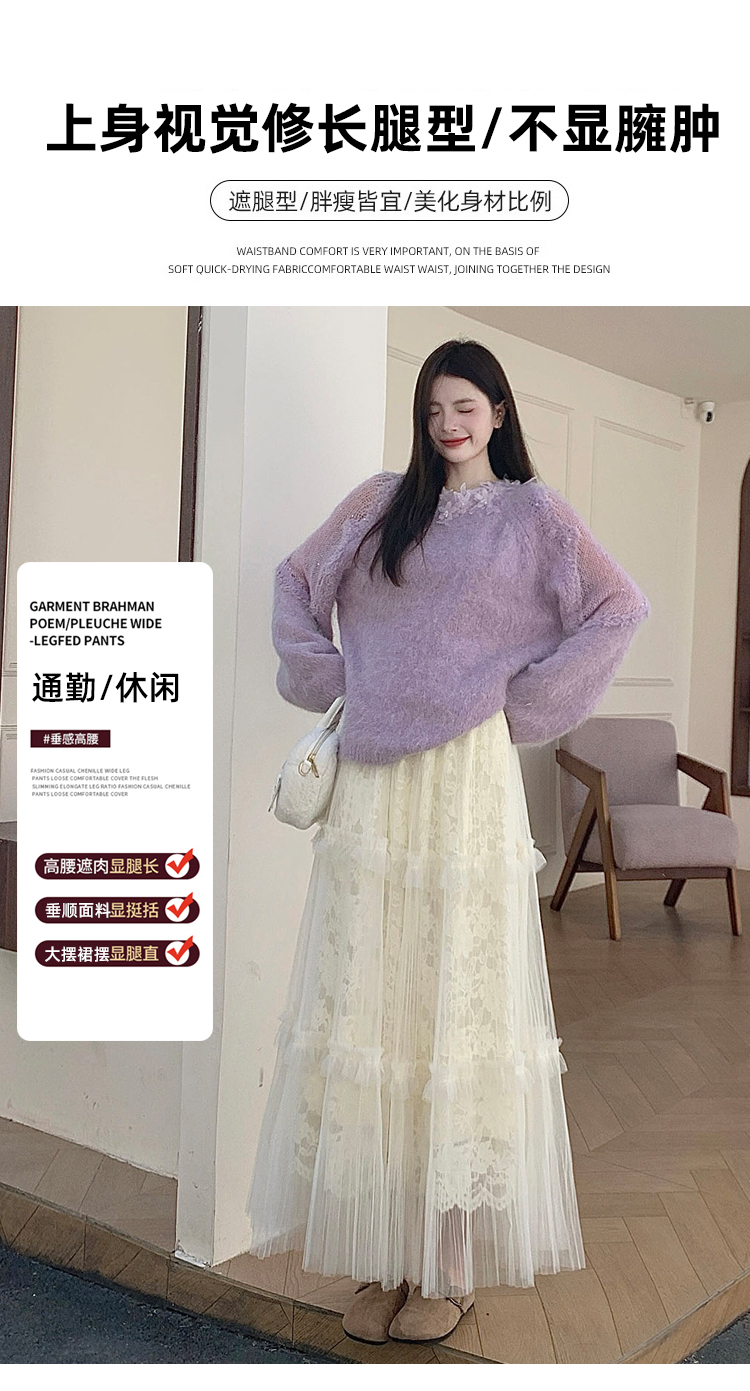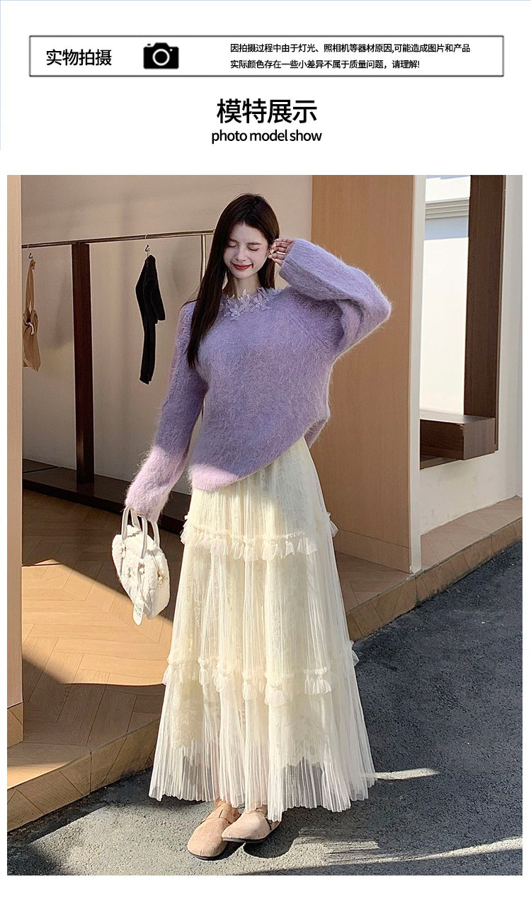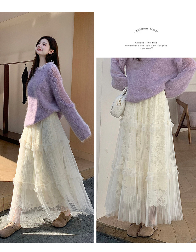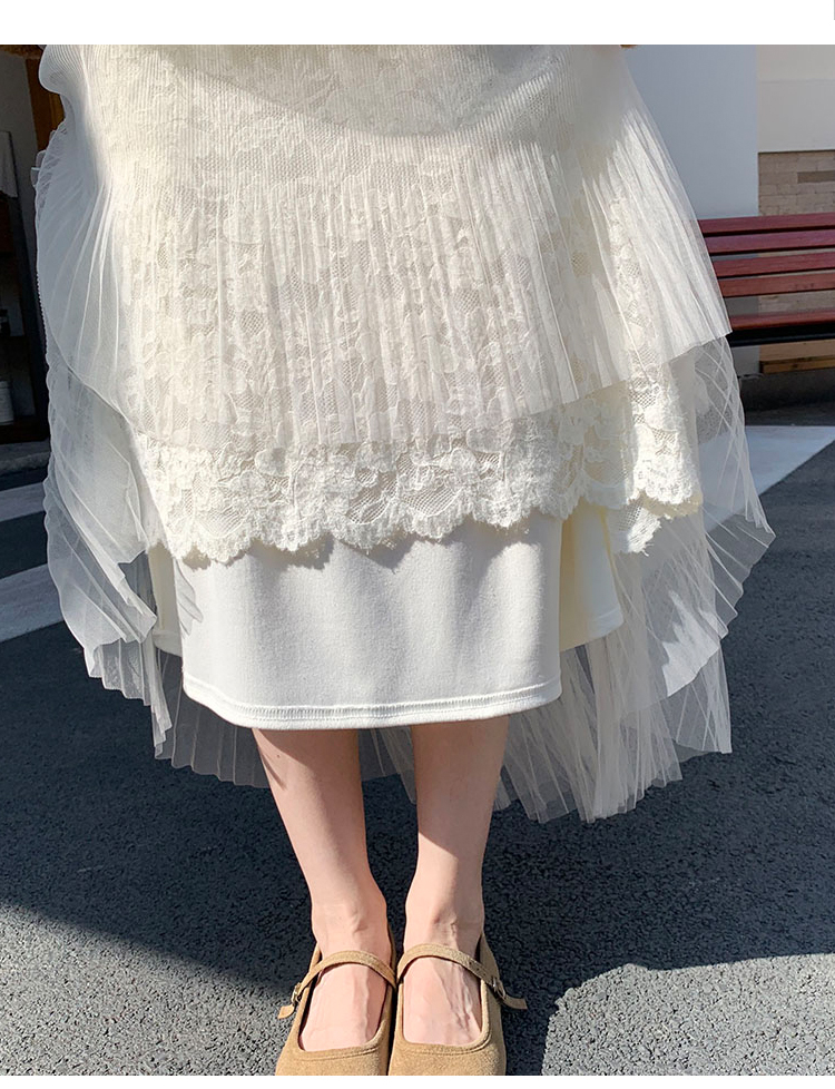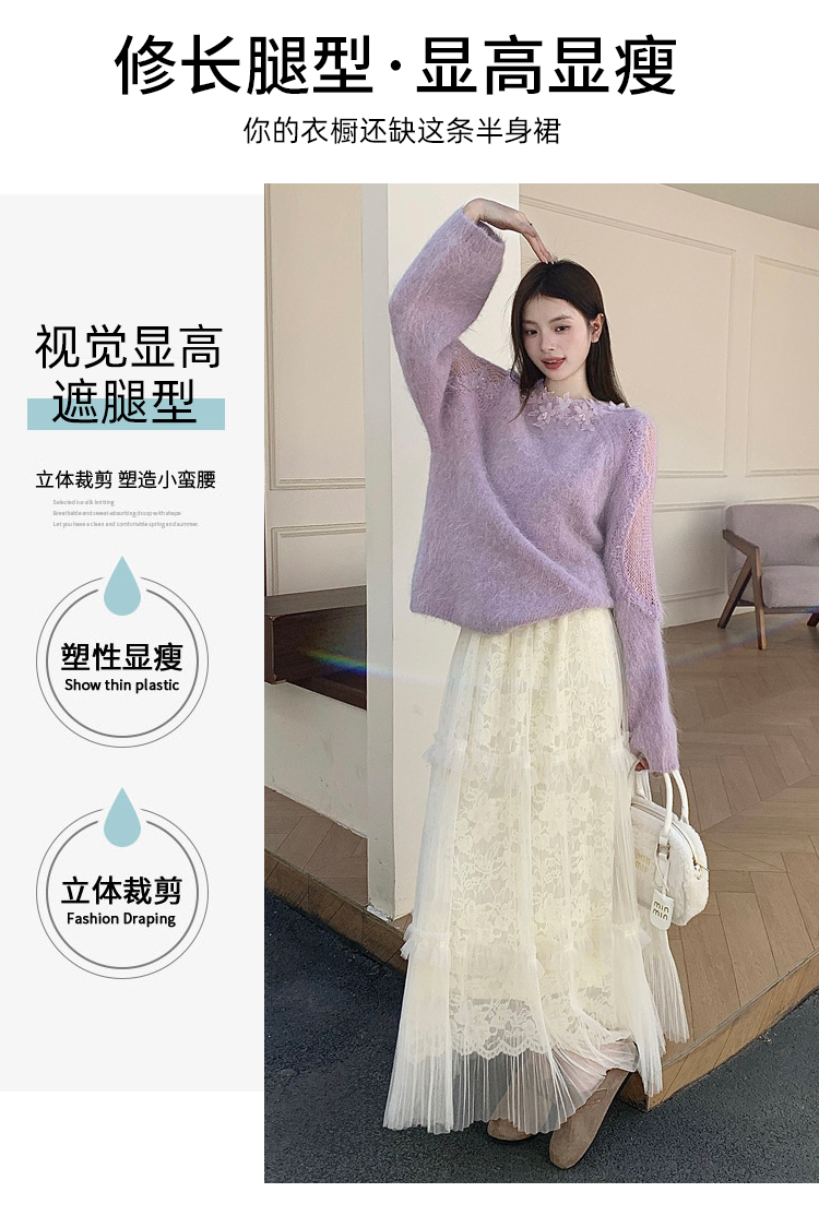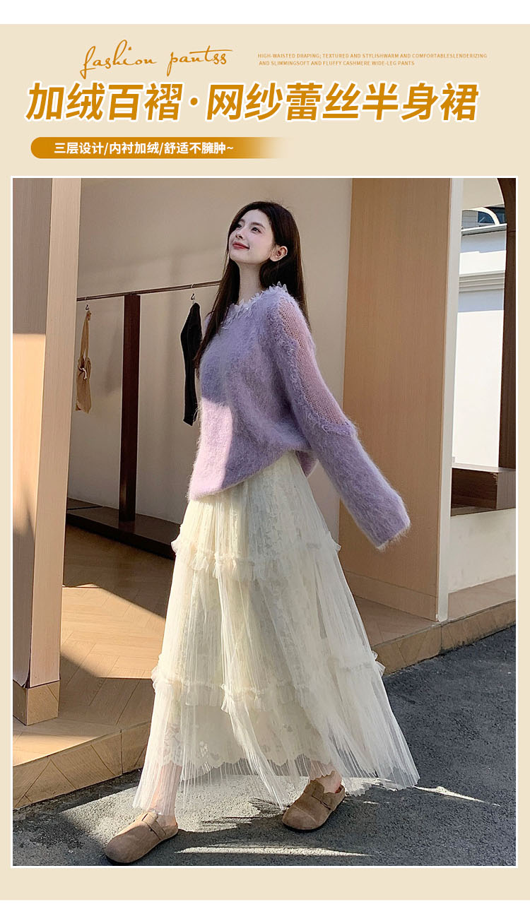 MY16134# 柔美网纱拼接蛋糕裙法式芭蕾风高腰A字中长款伞裙女裝貨源服裝批發