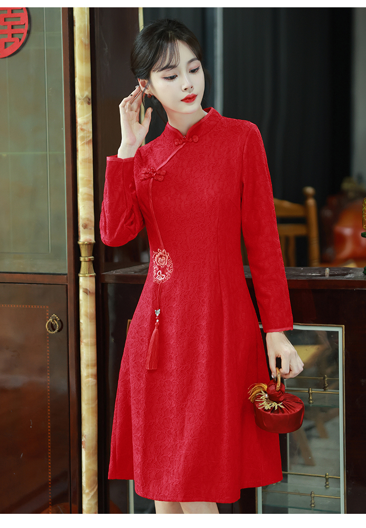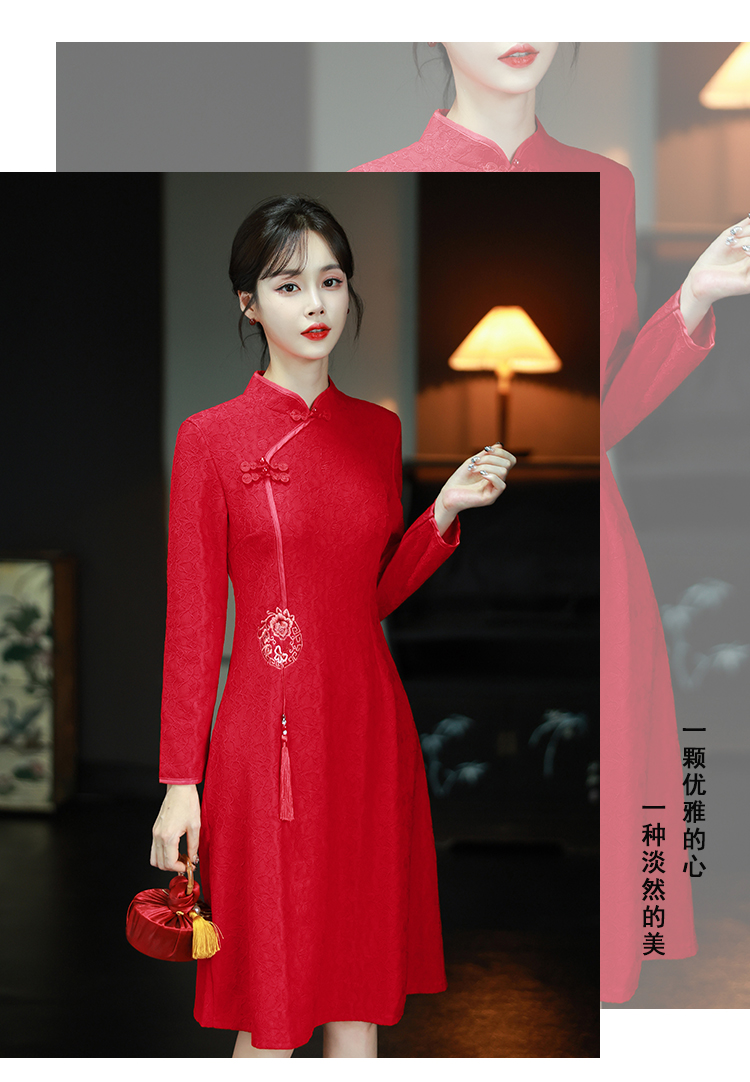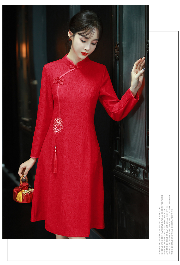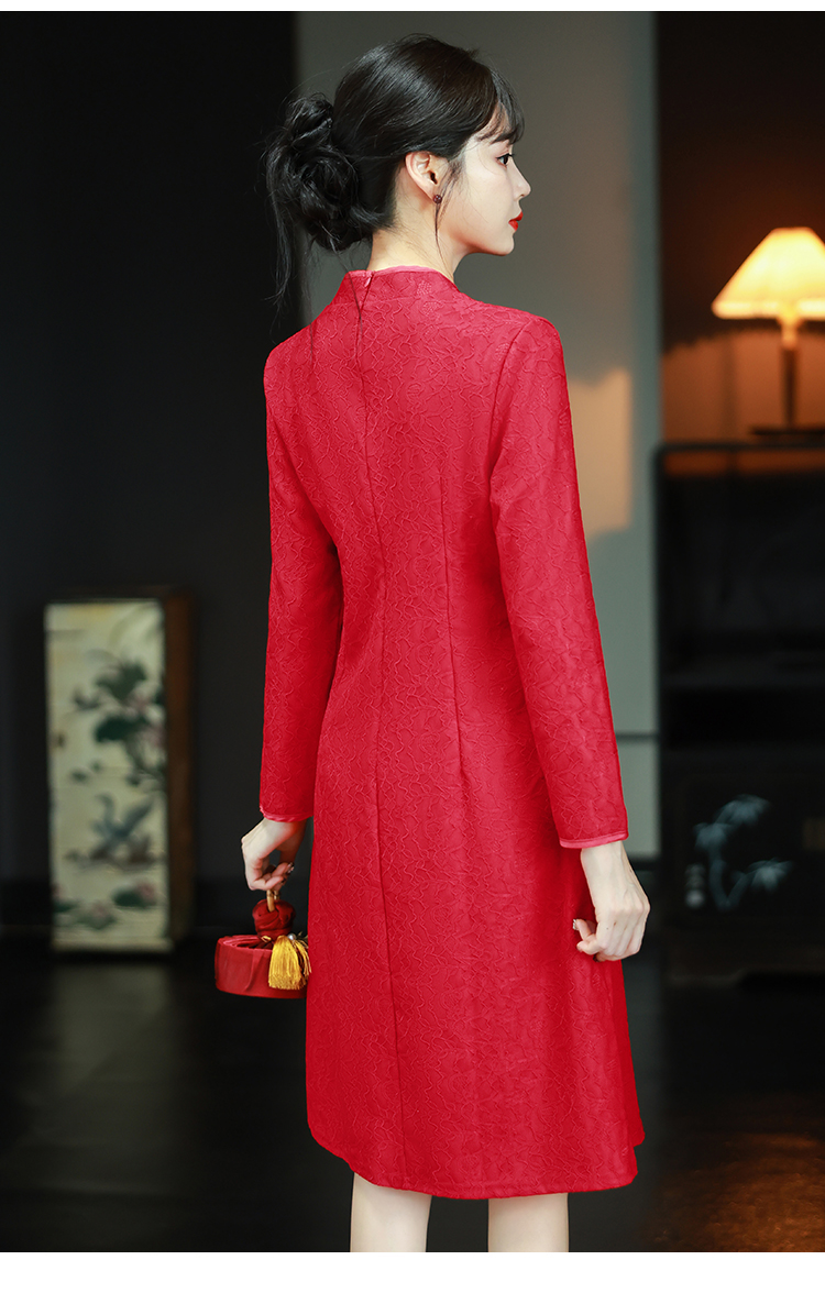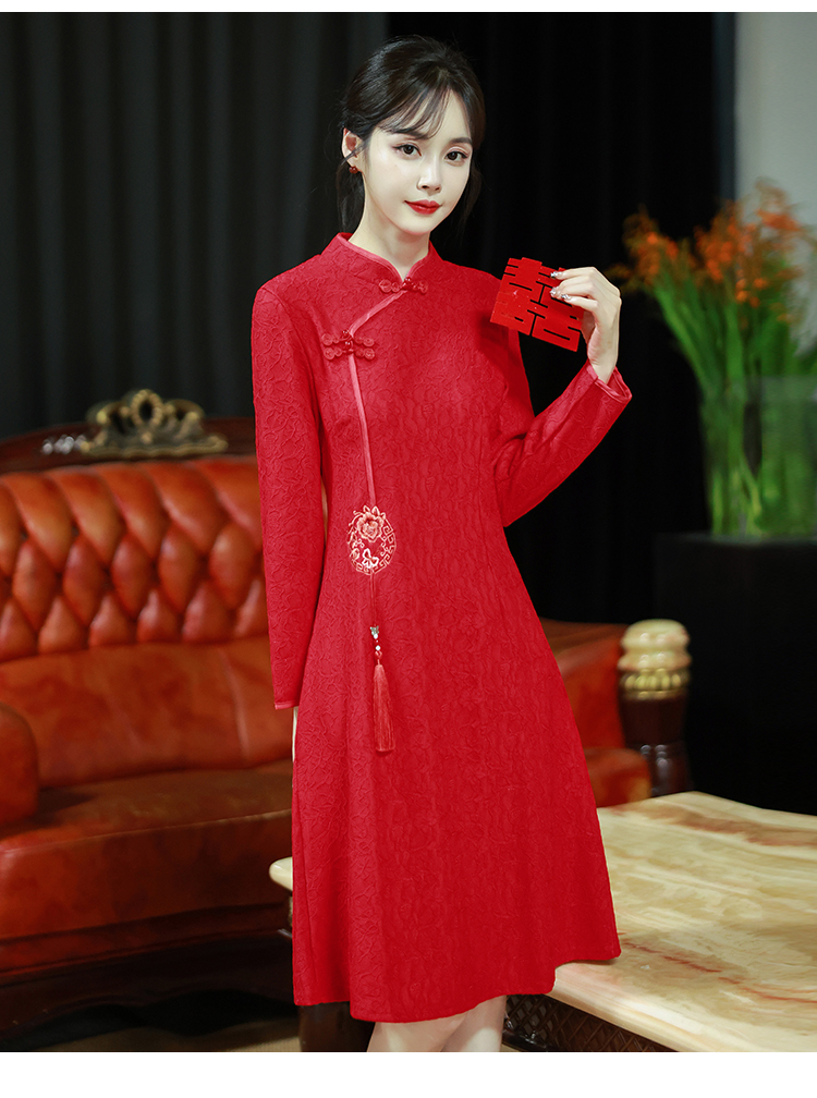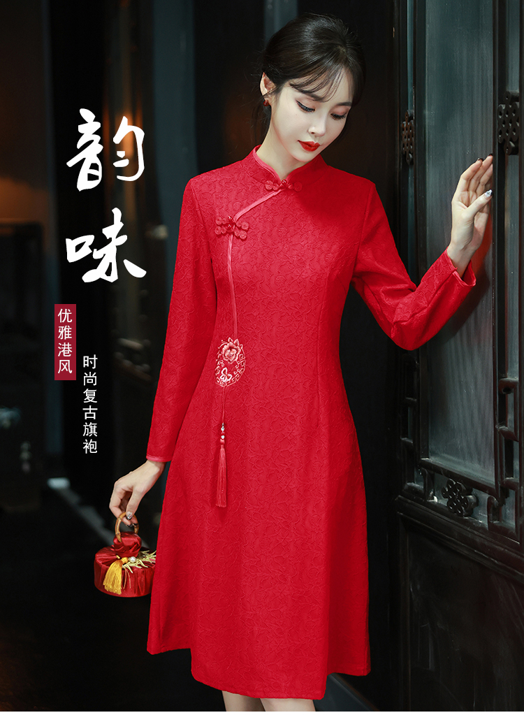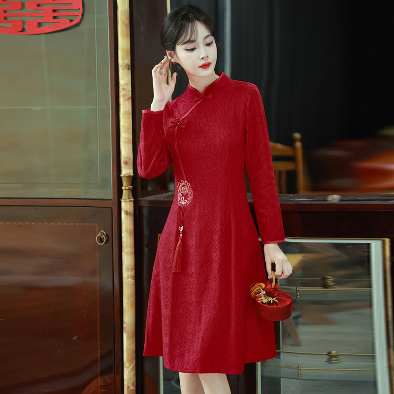 MY16137#新款国风红色大码旗袍新娘敬酒服回门复古高级感连衣裙长袖女裝貨源服裝批發