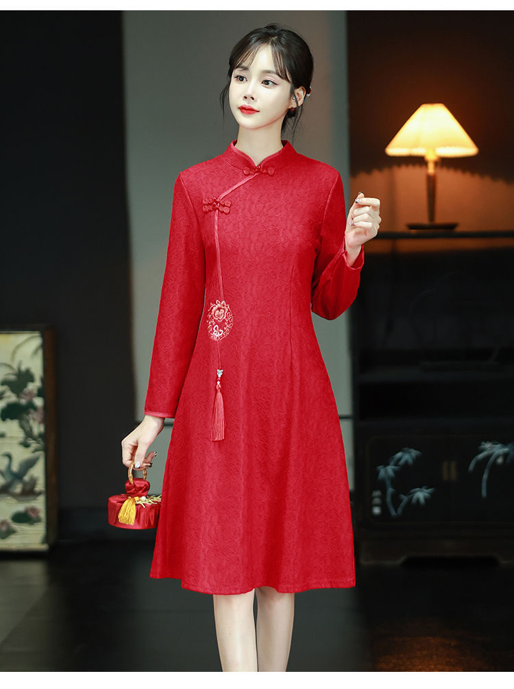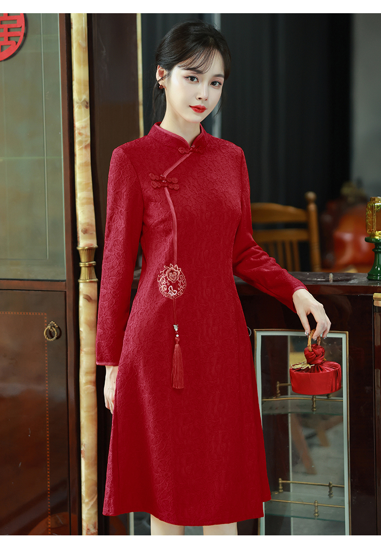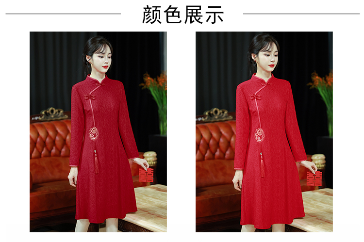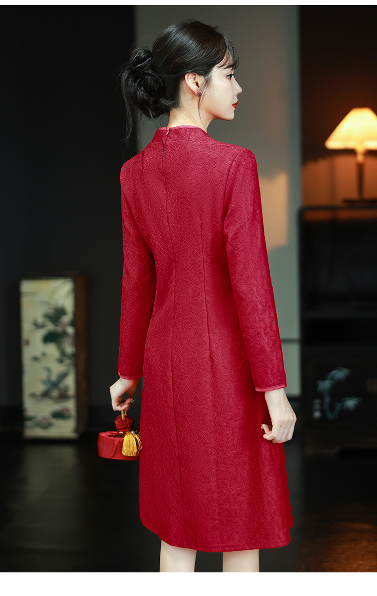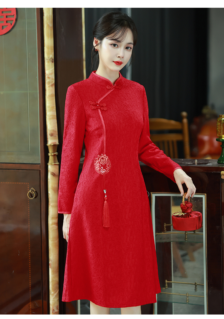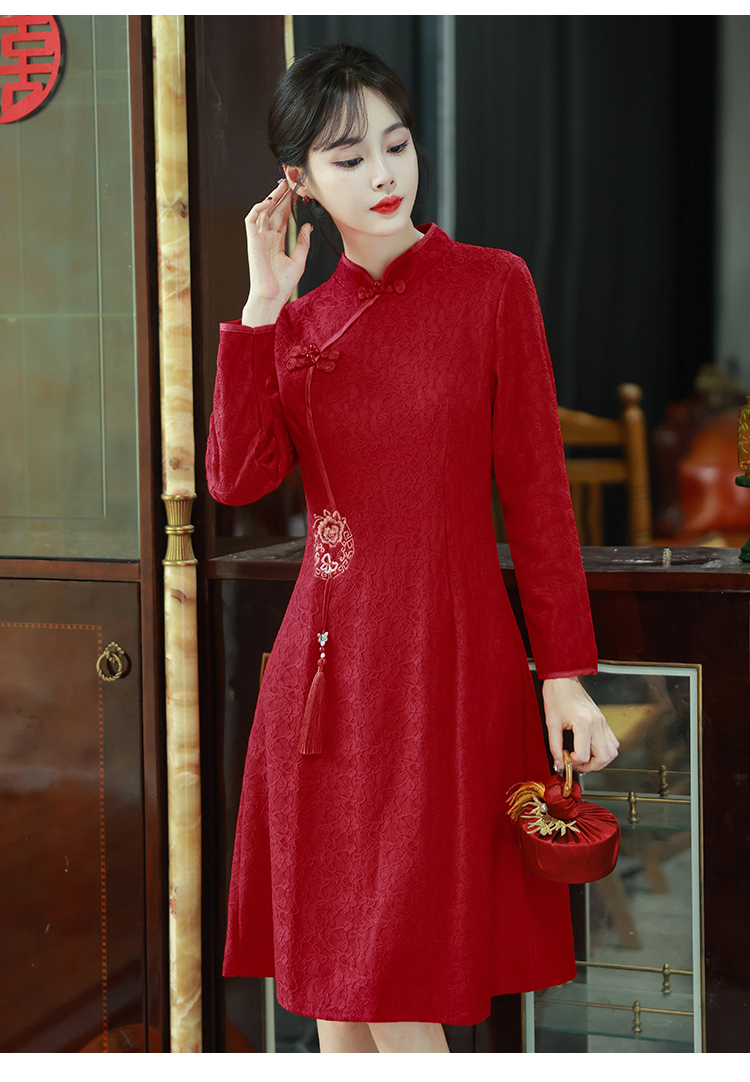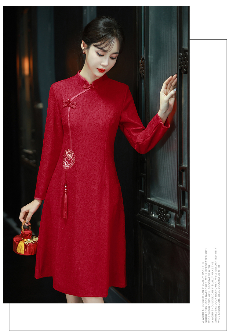 MY16137#新款国风红色大码旗袍新娘敬酒服回门复古高级感连衣裙长袖女裝貨源服裝批發