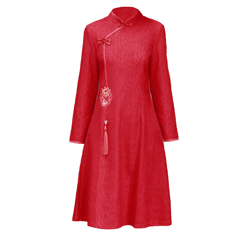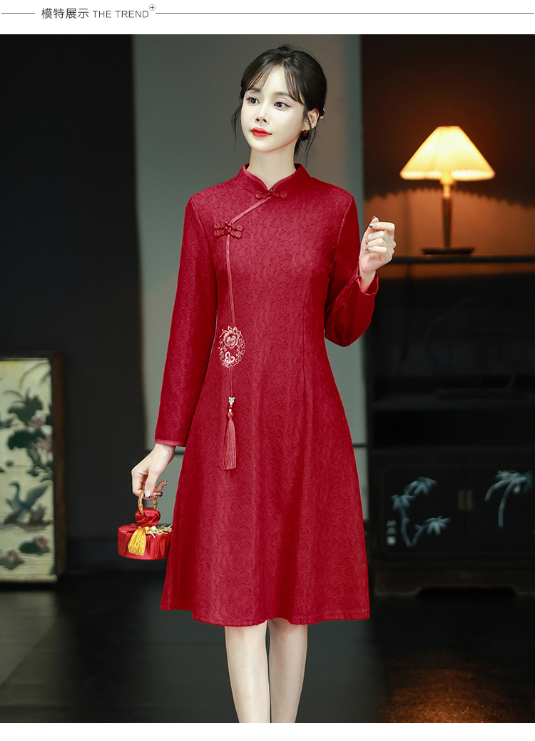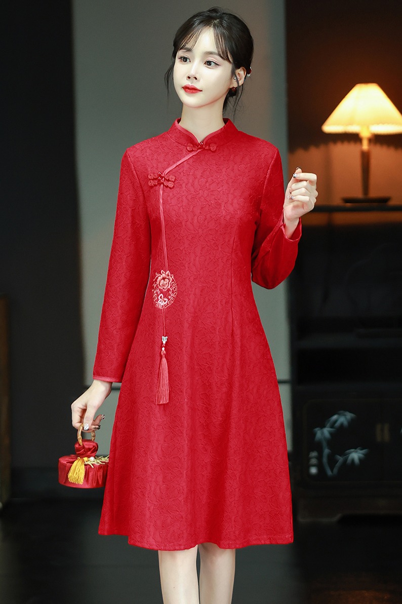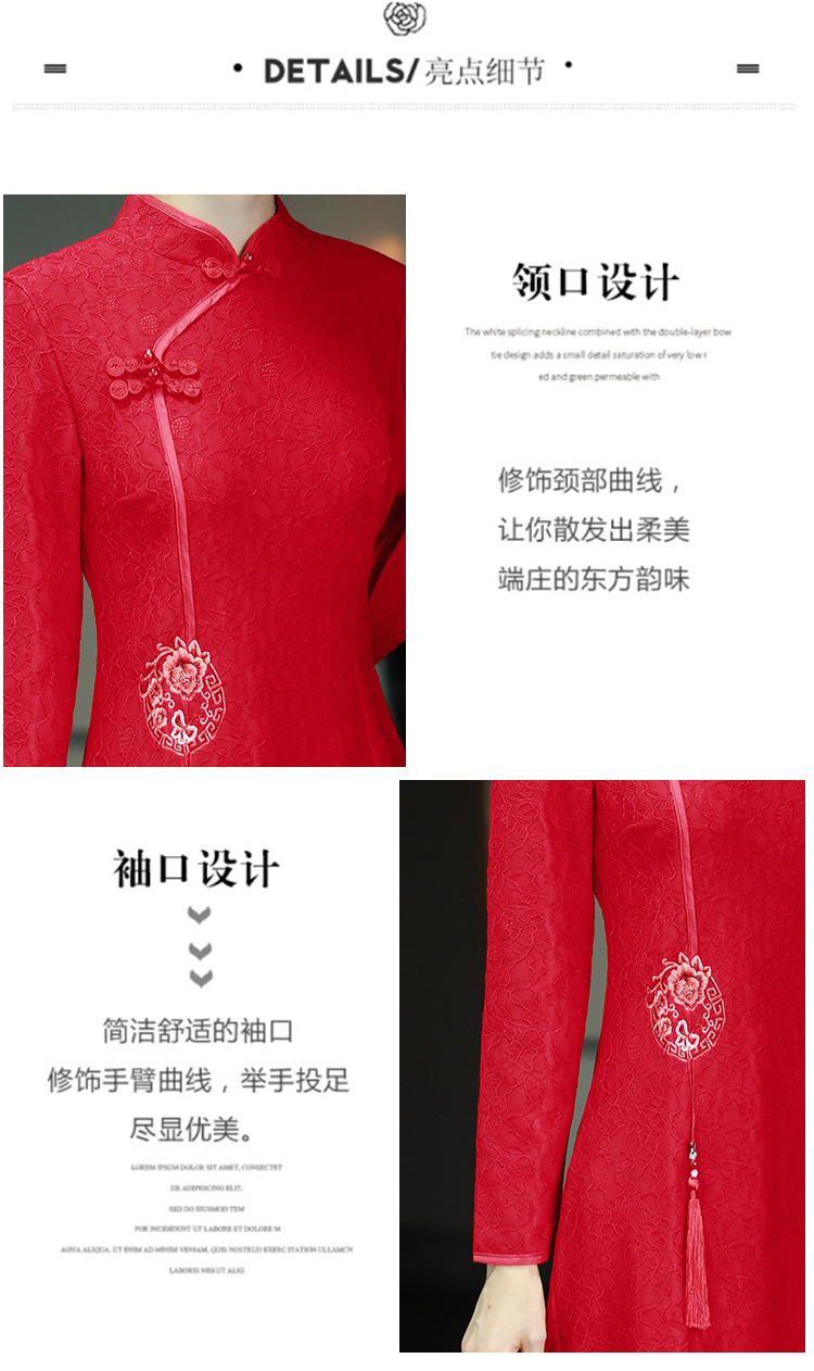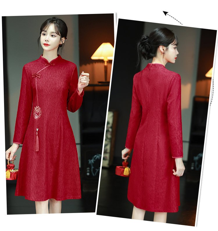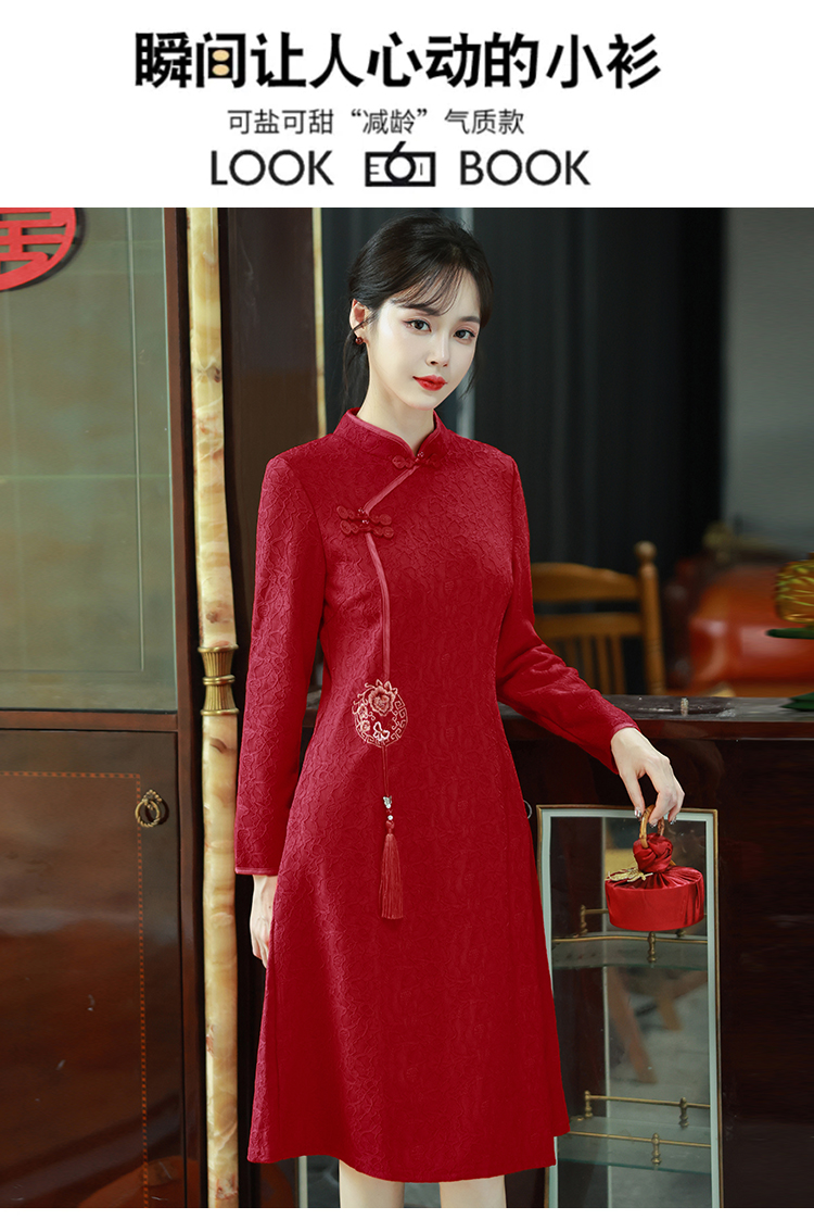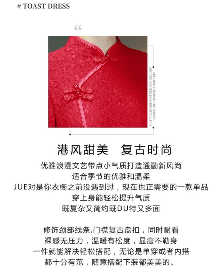 MY16137#新款国风红色大码旗袍新娘敬酒服回门复古高级感连衣裙长袖女裝貨源服裝批發