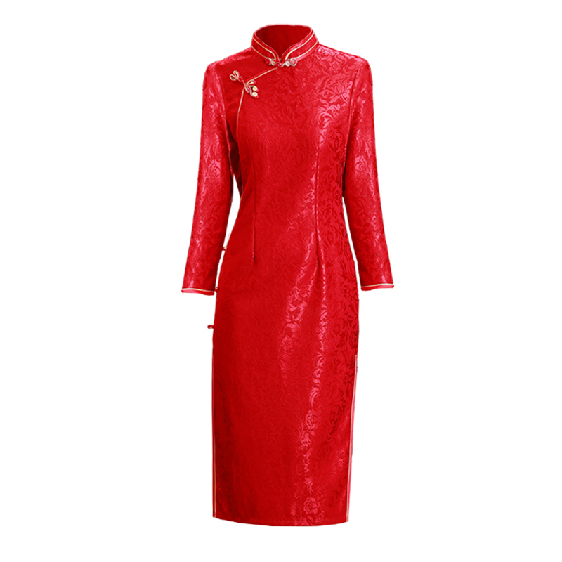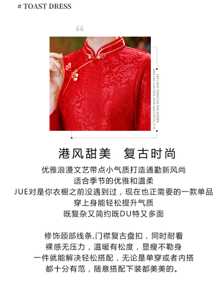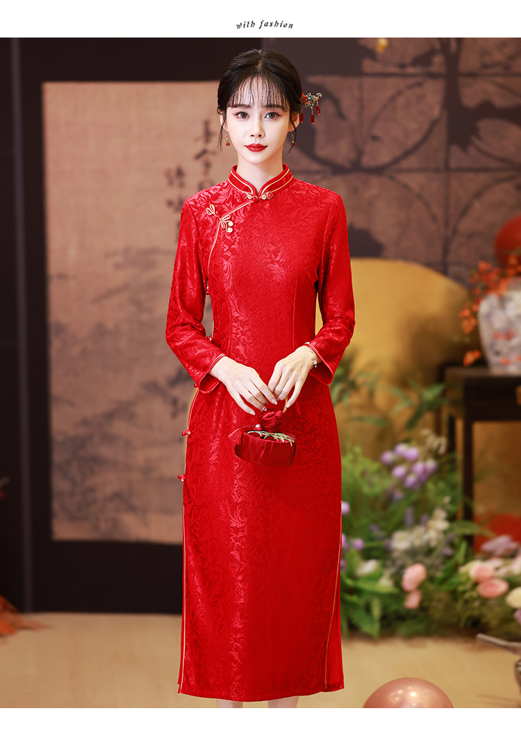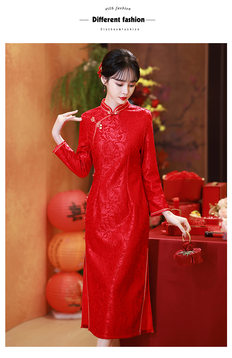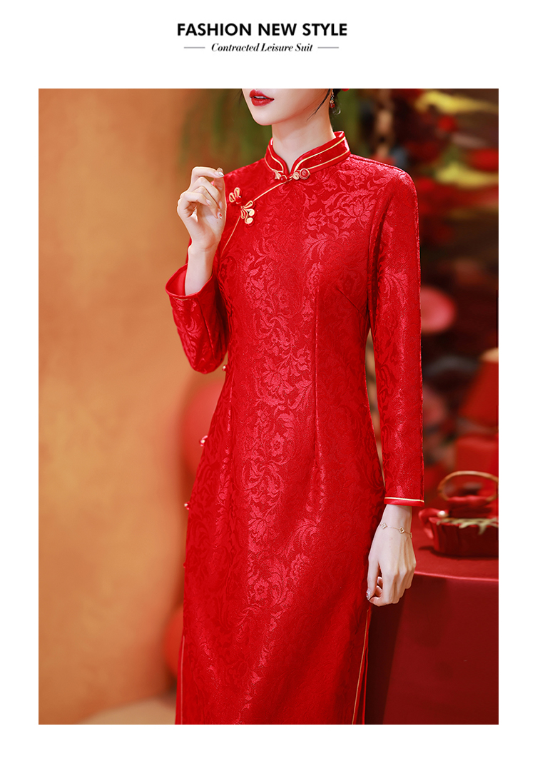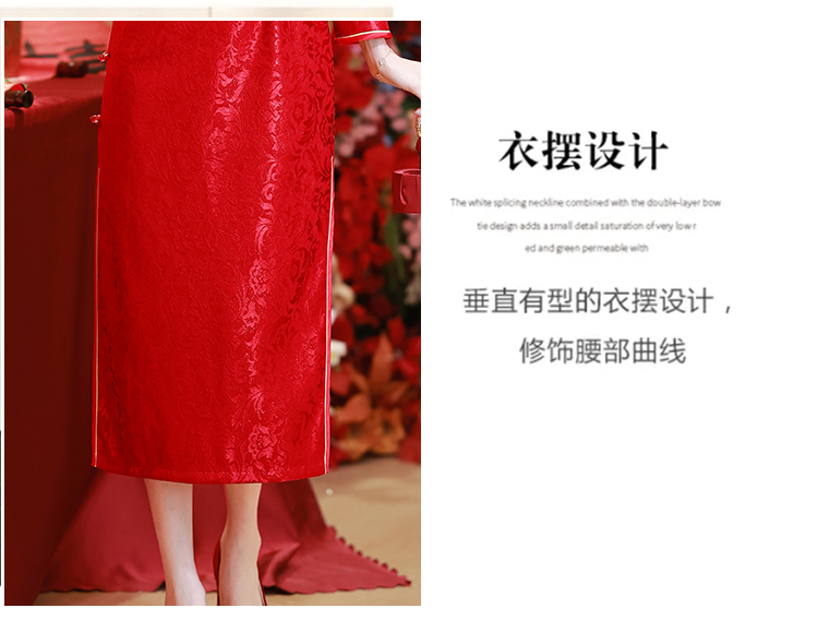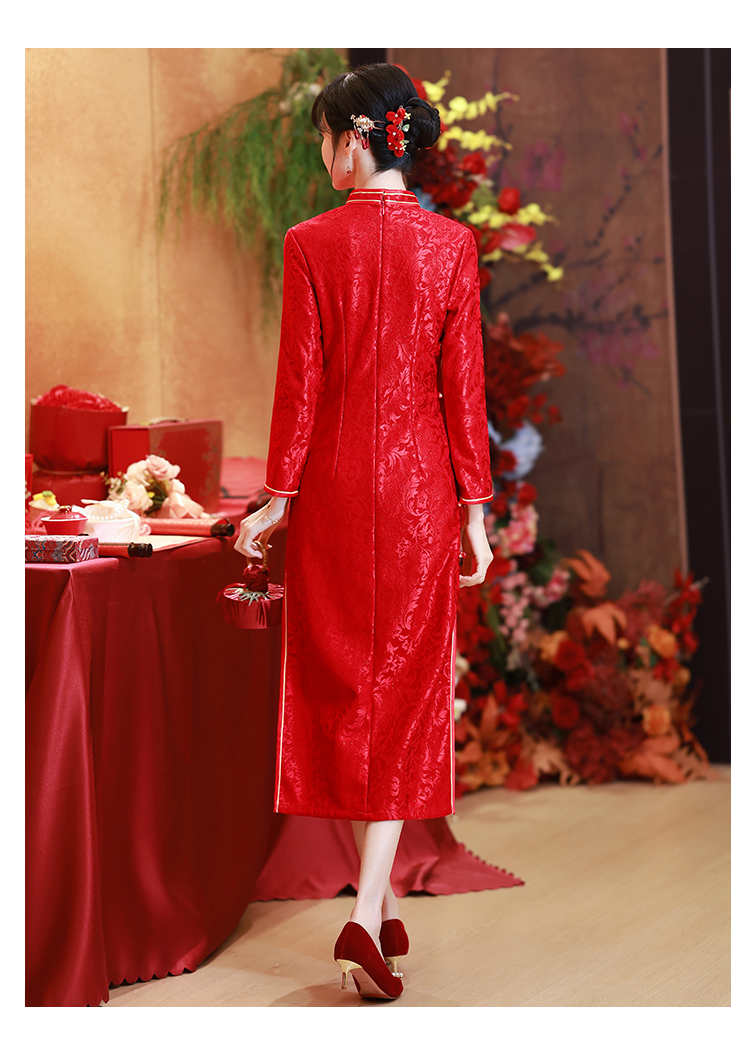 MY16138#新款改良旗袍敬酒服回娘家红色结婚订婚新中式礼服长袖女裝貨源服裝批發