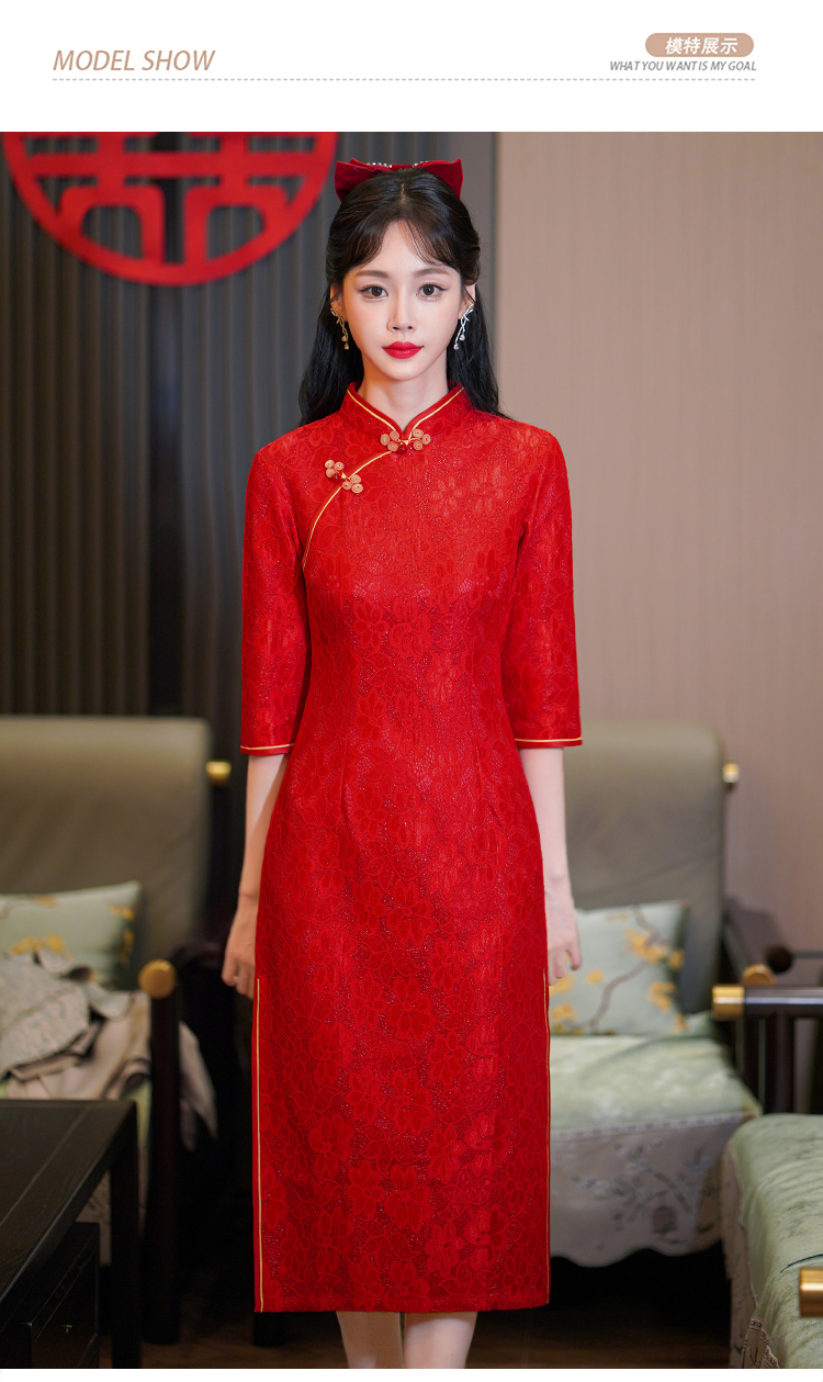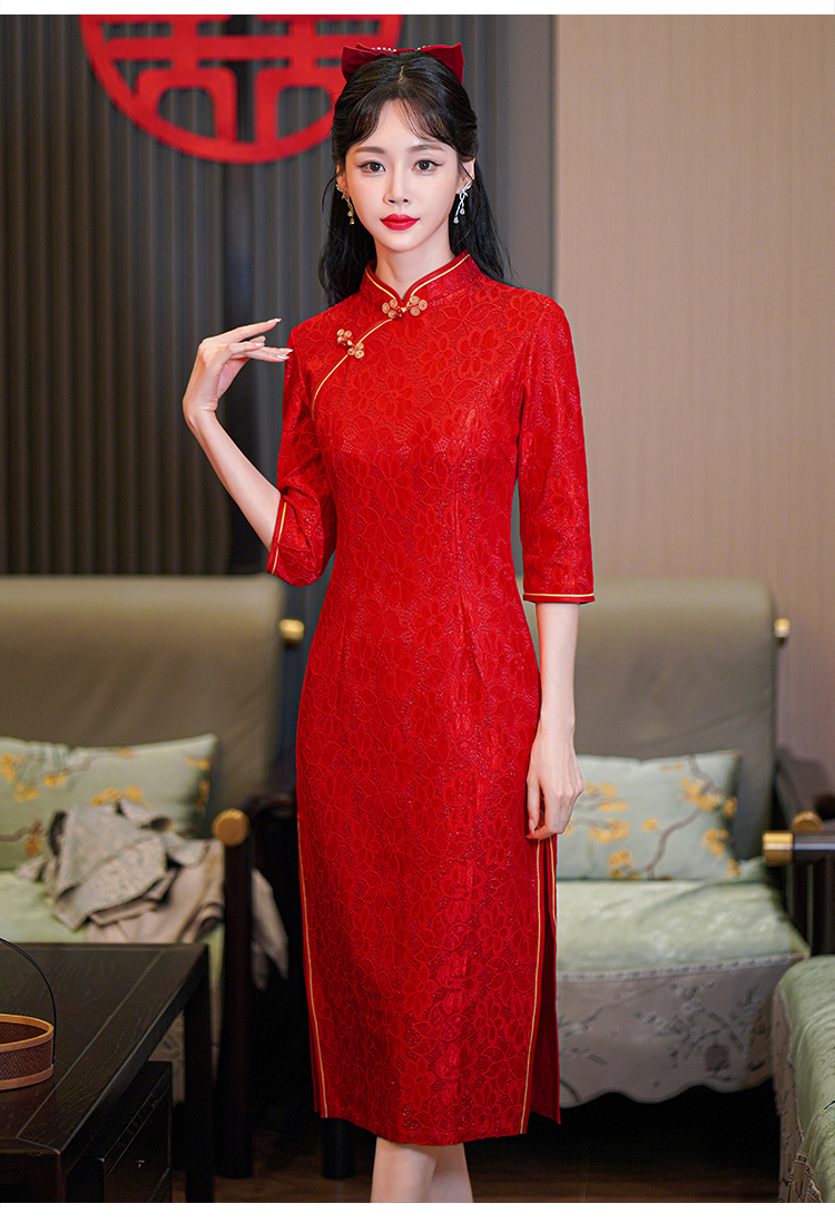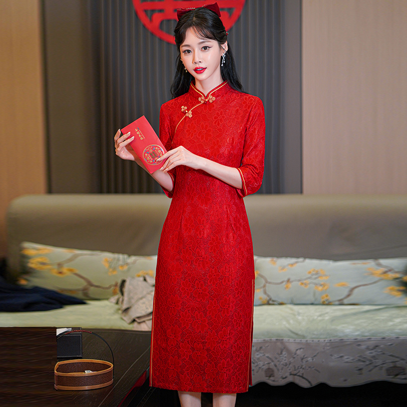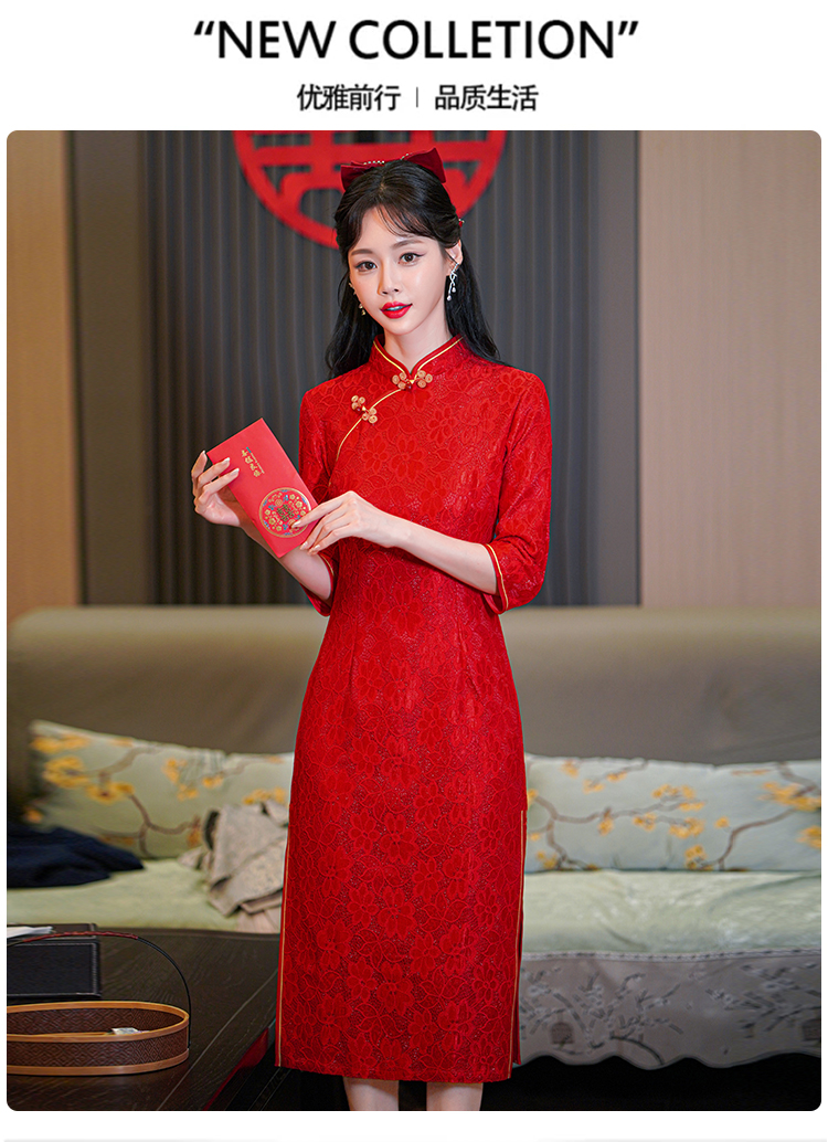 MY16139#新款红色旗袍敬酒服新娘高级感订婚结婚礼服连衣裙女裝貨源服裝批發