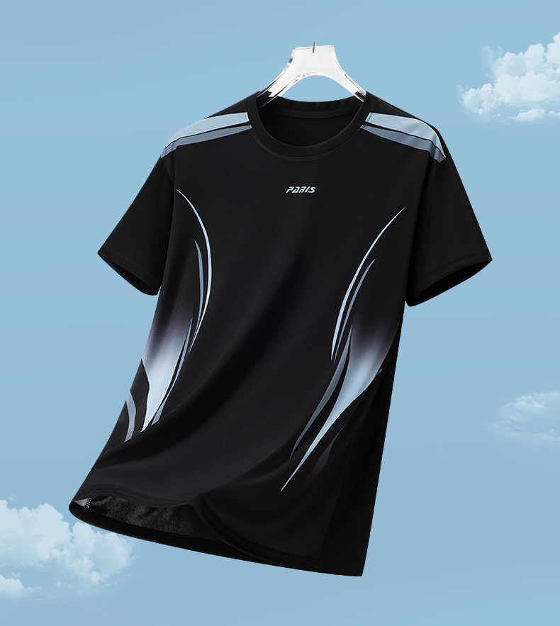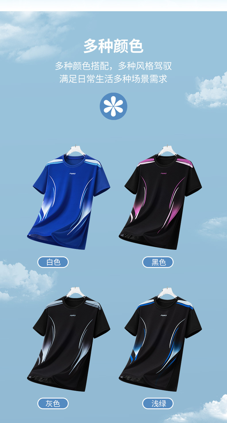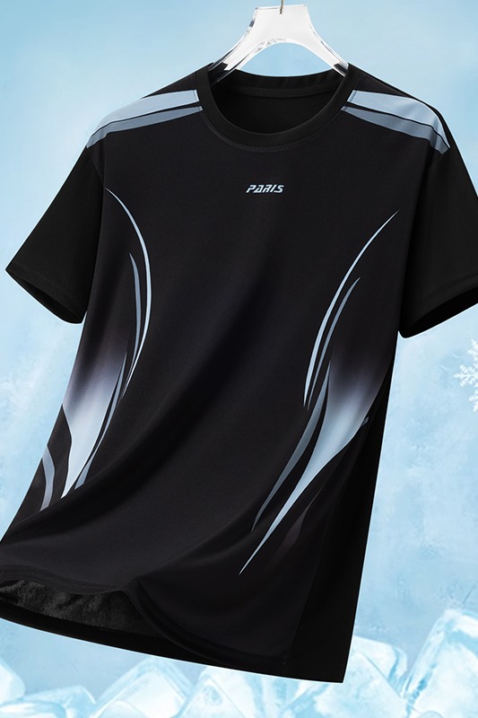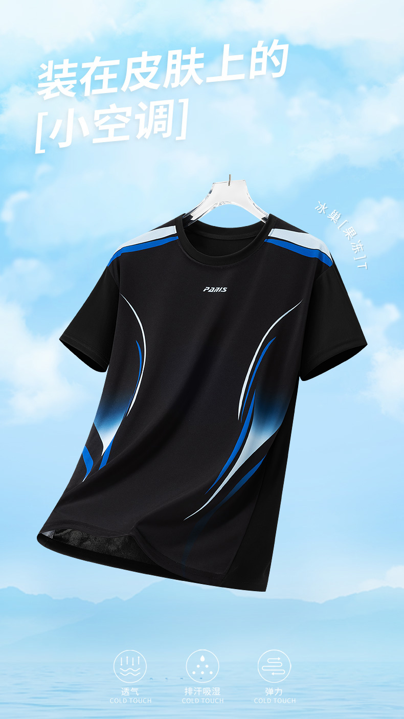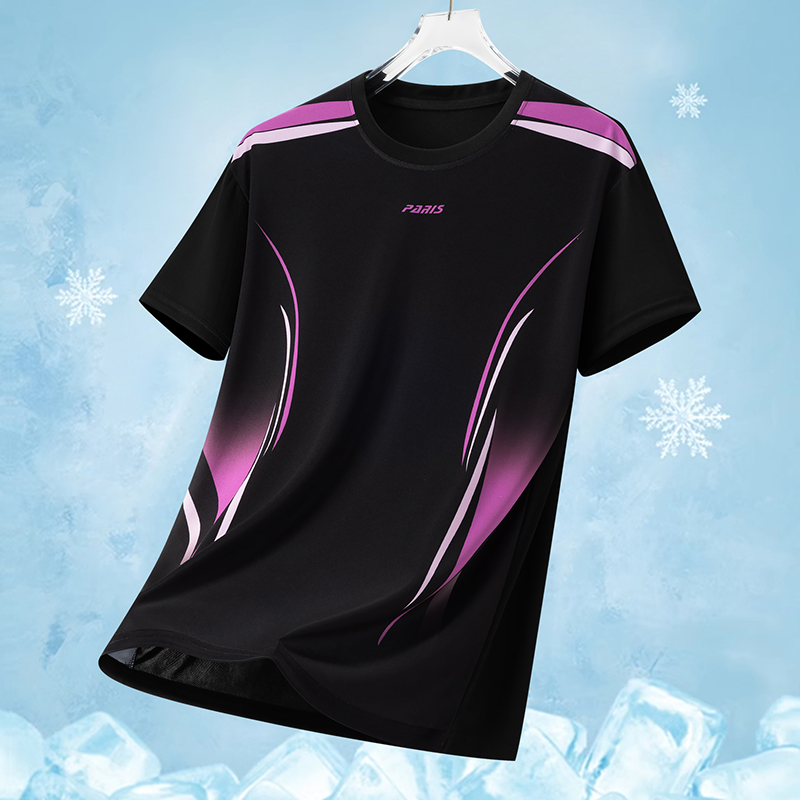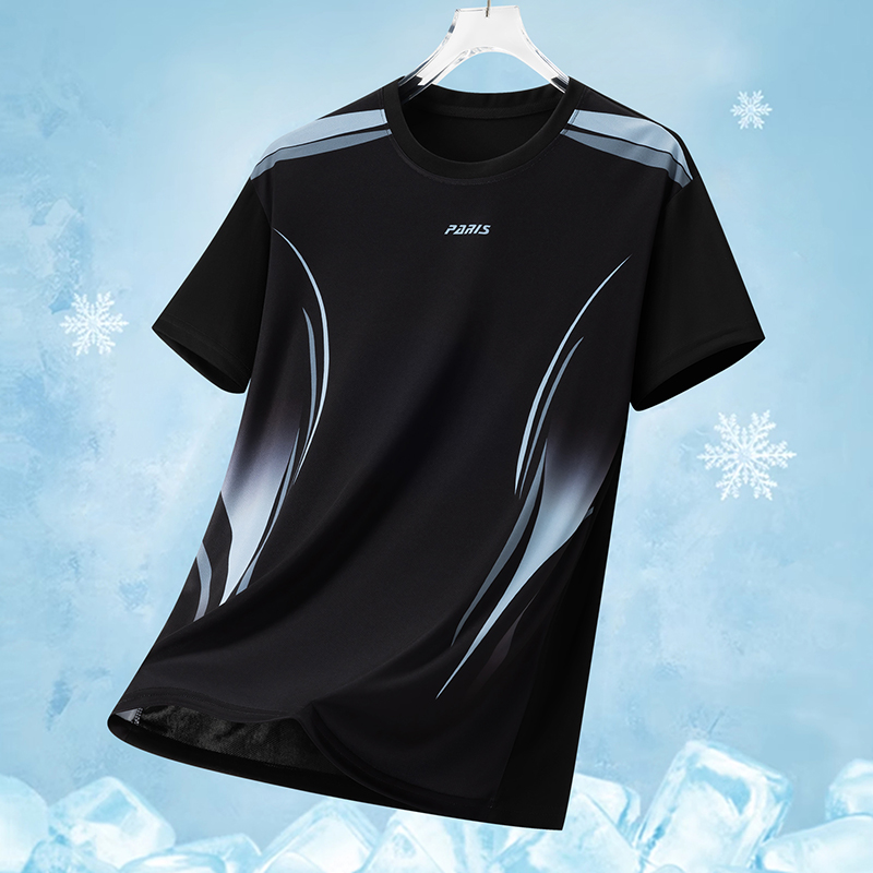 MY16161# 新款时尚休闲运动冰丝T恤男青年短袖轻薄速干冰丝圆领上衣女裝貨源服裝批發