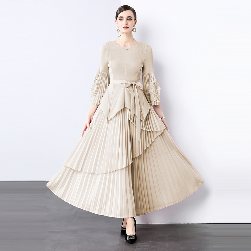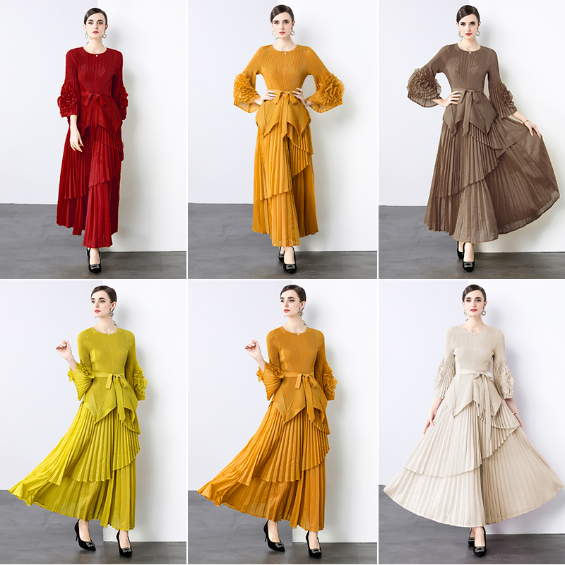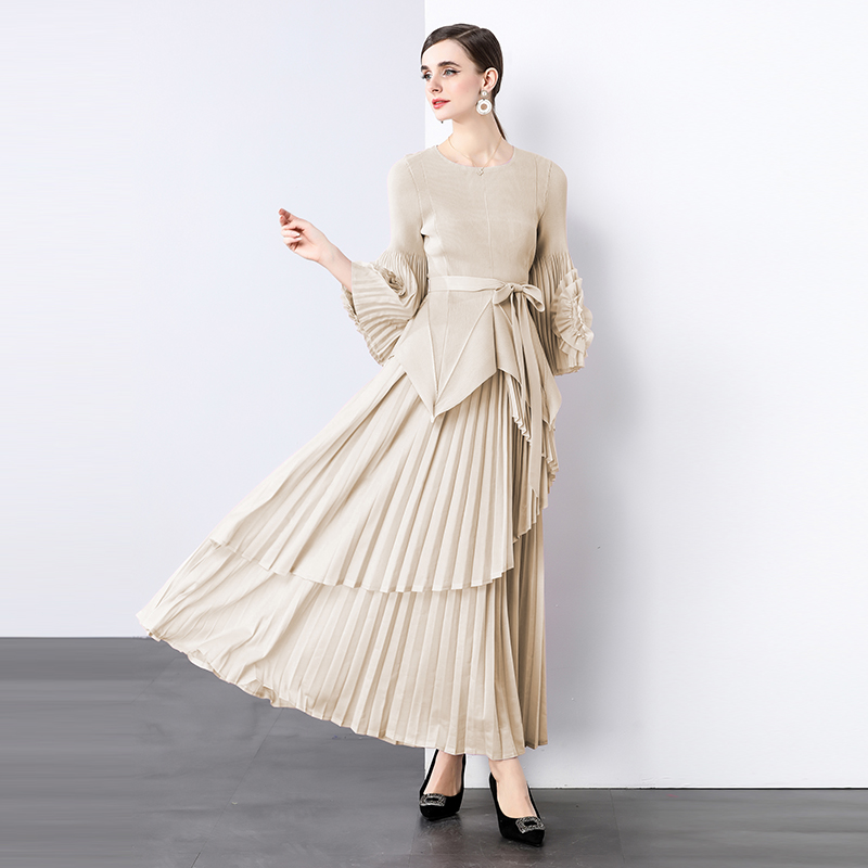 MY16727# 新款法式轻奢气质优雅时尚褶衣两件套气质不规则裙子女裝貨源服裝批發