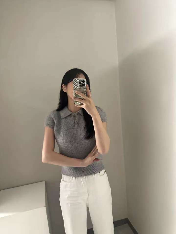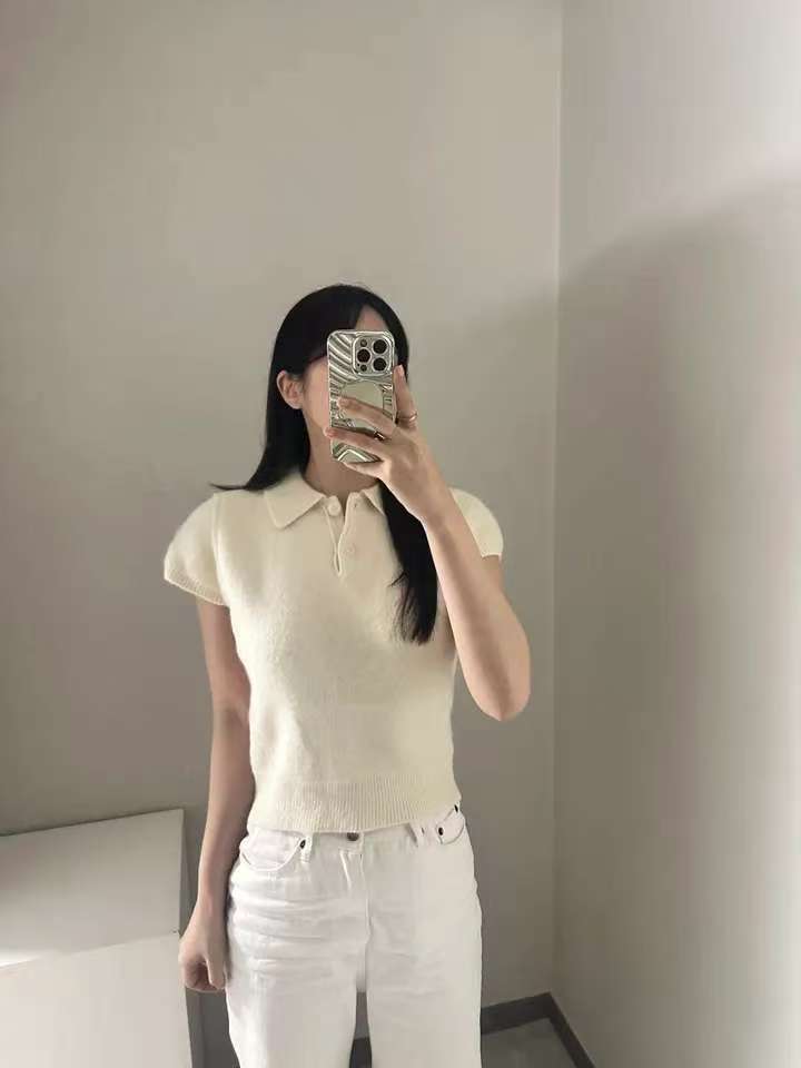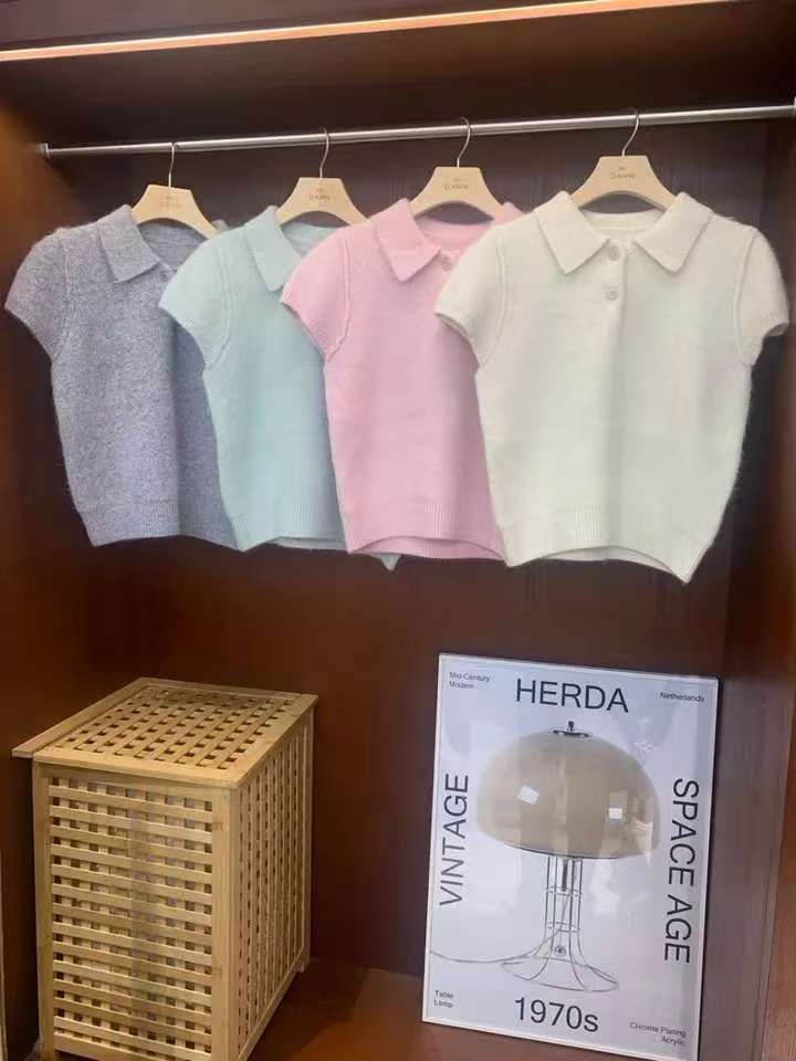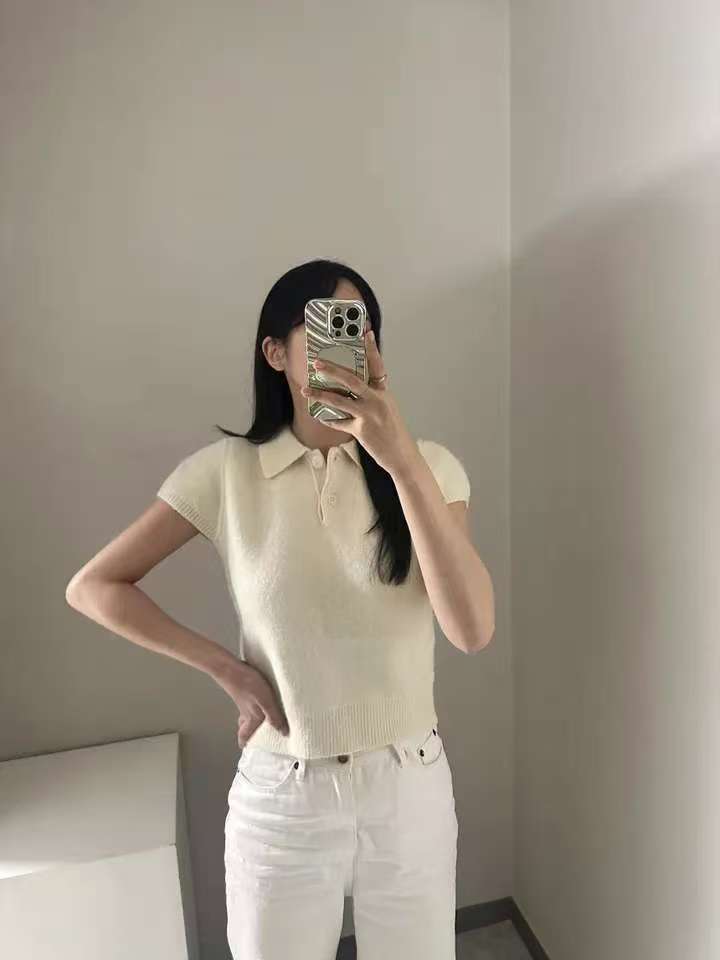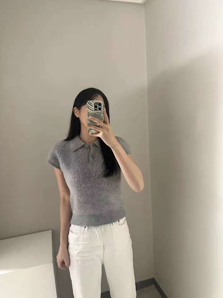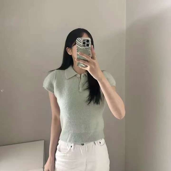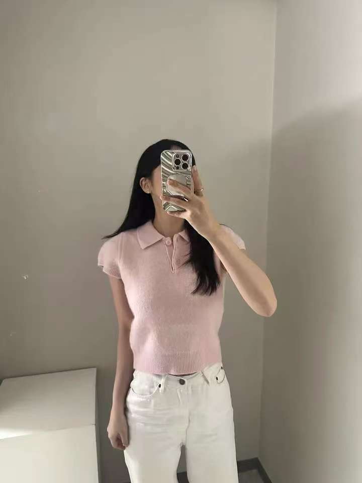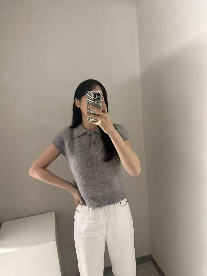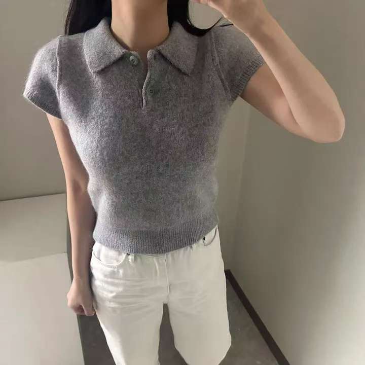 MY16819# 韩国ins 甜美气质POLO领休闲纯色短袖软糯针织上衣女裝貨源服裝批發