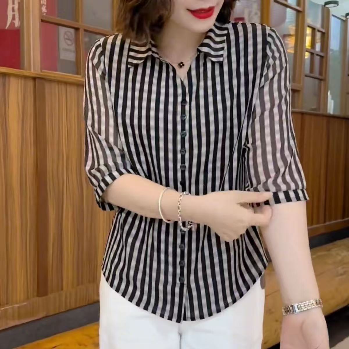 MY16983# 新款洋气小衫时尚衬衣气质显瘦遮肚减龄衬衫宽松上衣女裝貨源服裝批發