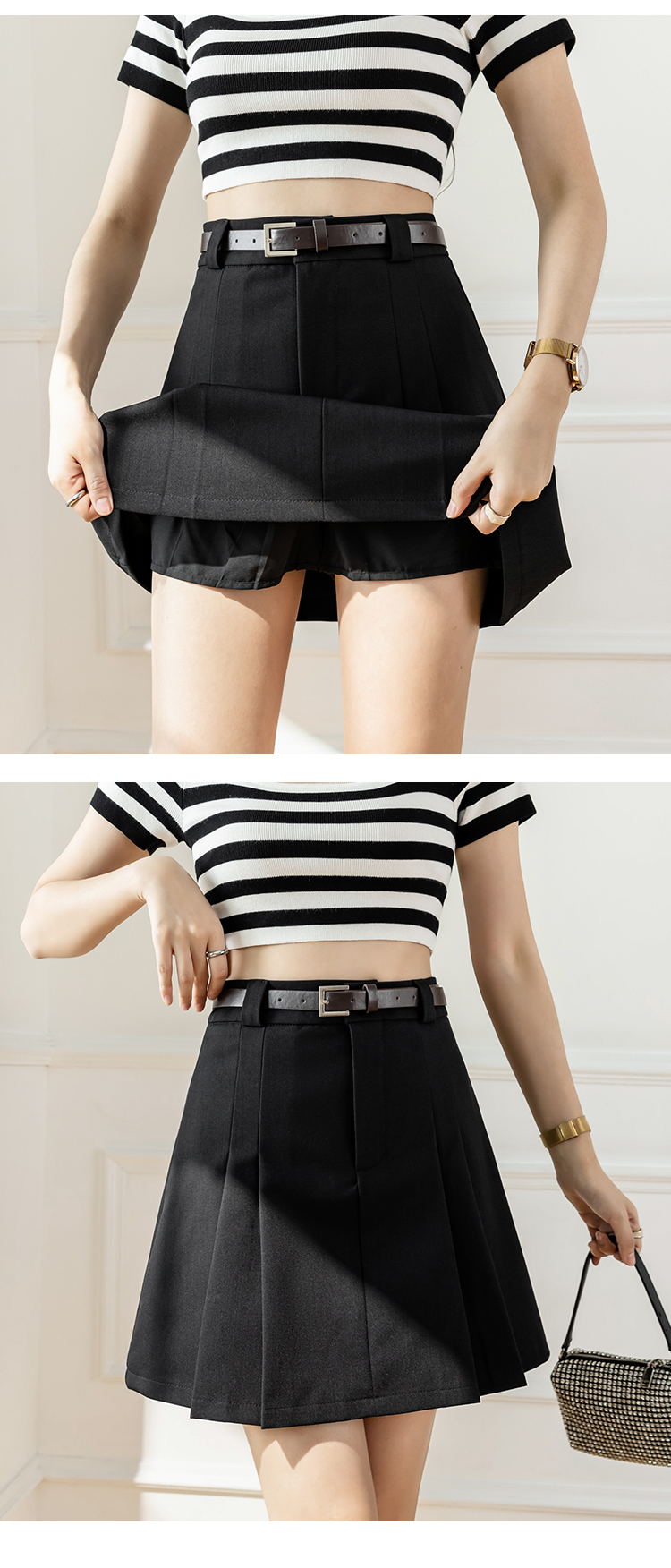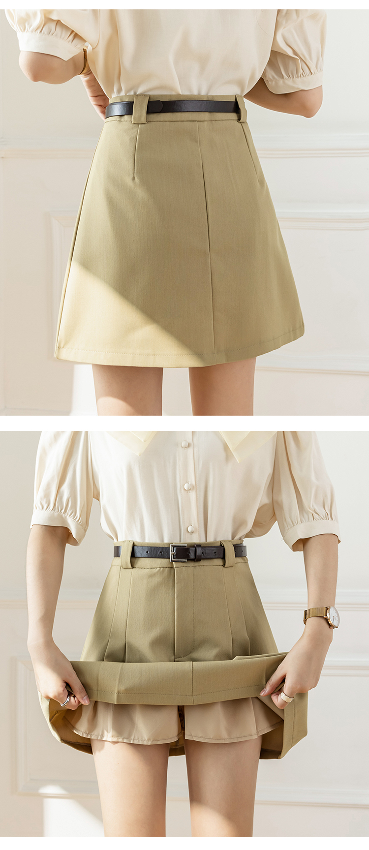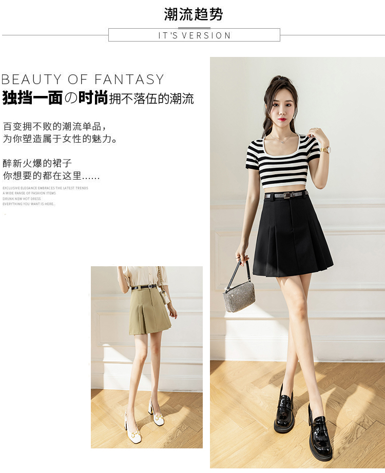 MY17610# A字短裙新款百褶裙高腰百搭显瘦防走光短裤裙半身裙子女裝貨源服裝批發
