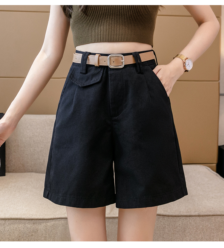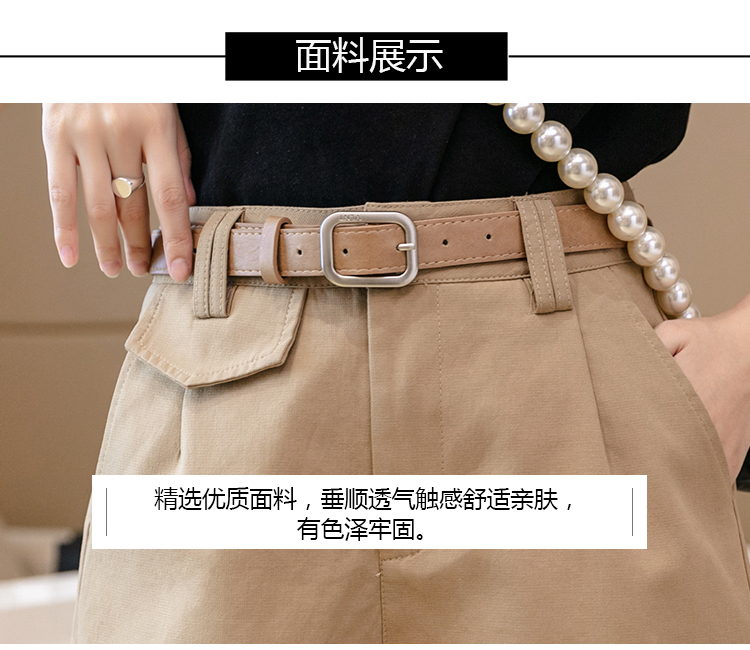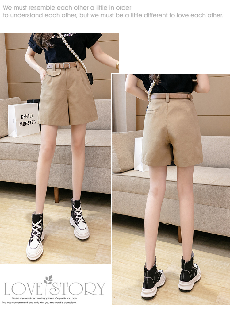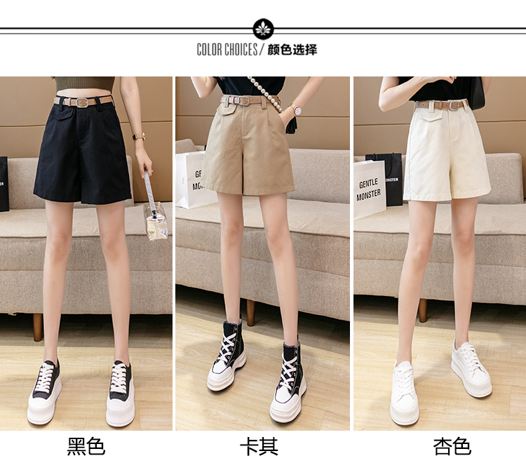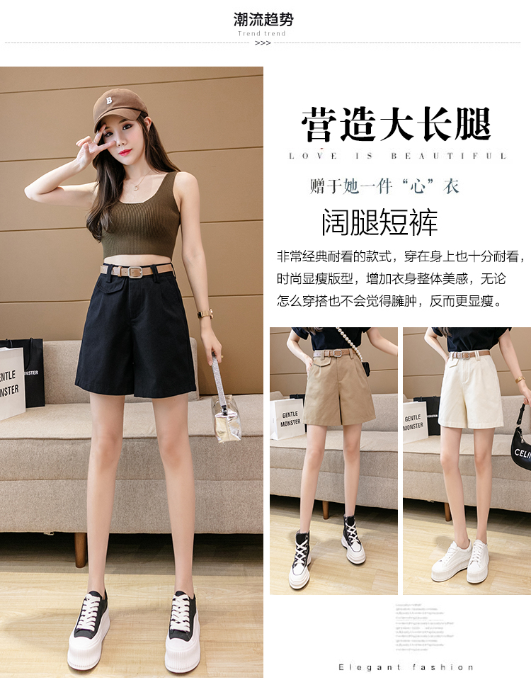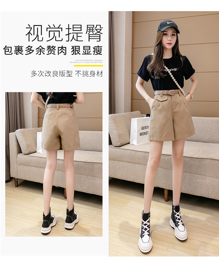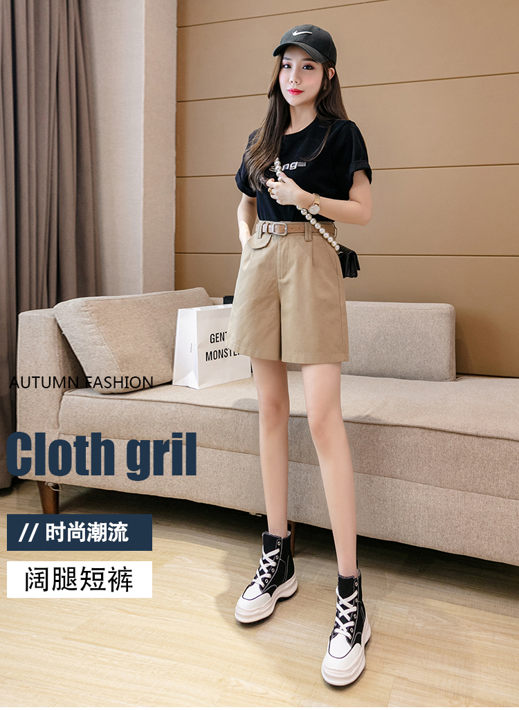MY17614# 休闲裤百搭工装裤阔腿裤高腰A字短裤腰带中裤外穿女裝貨源服裝批發