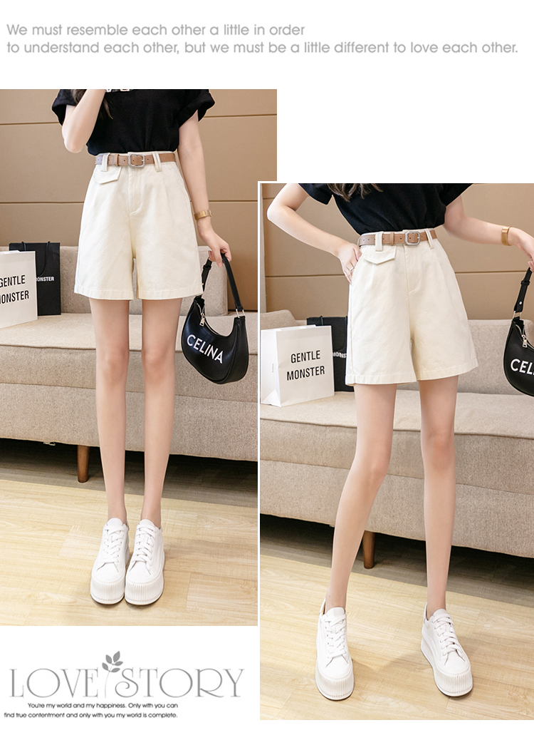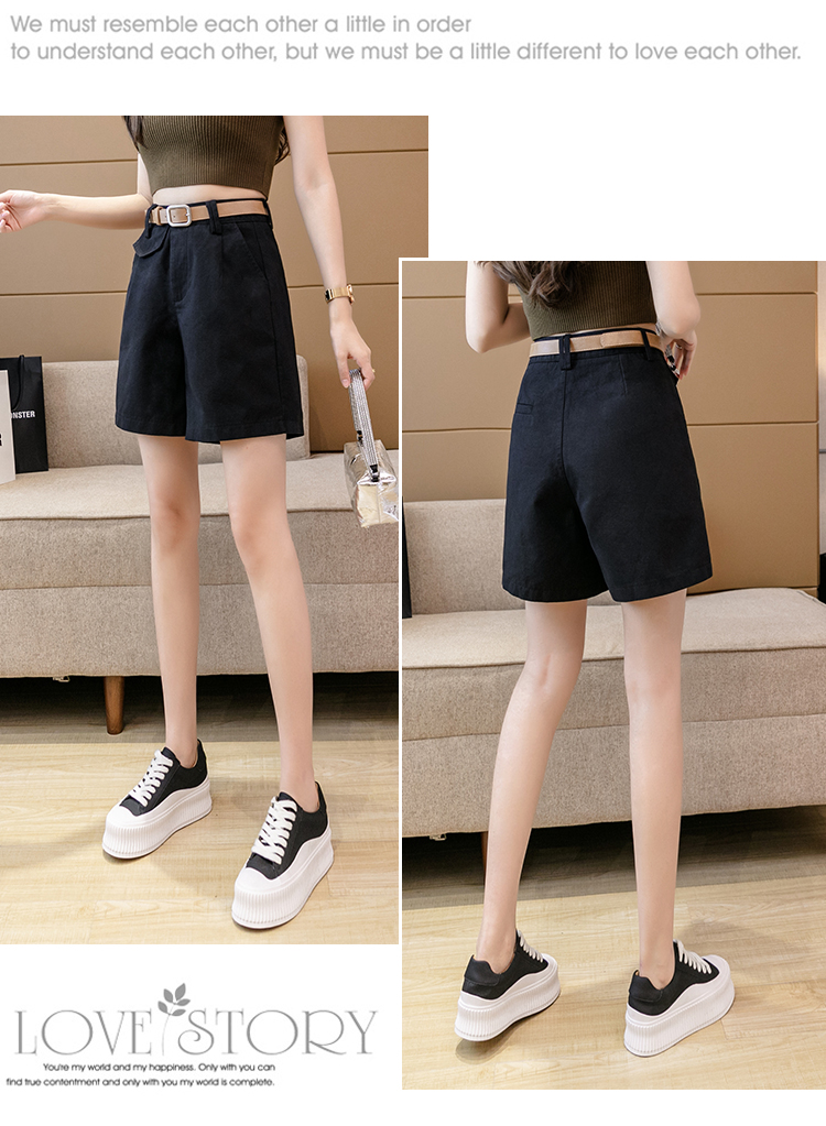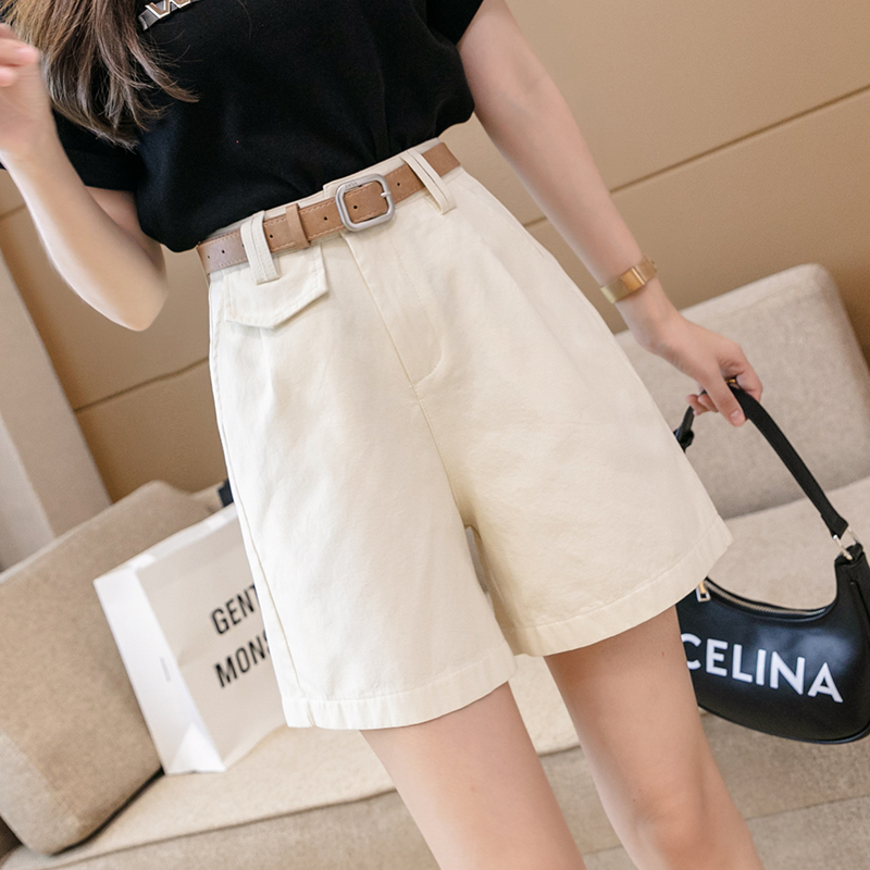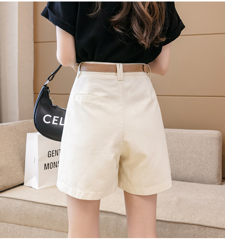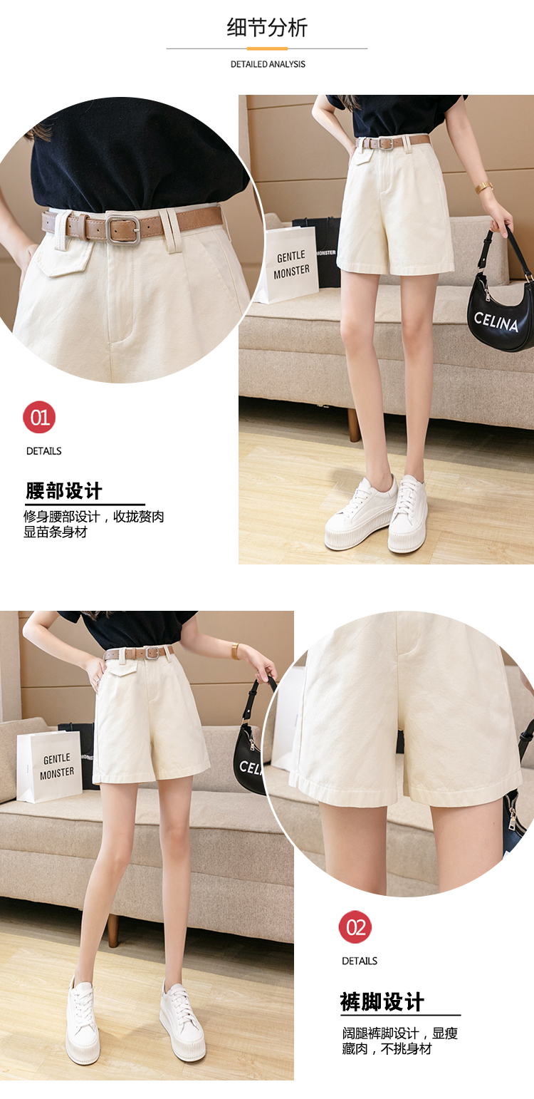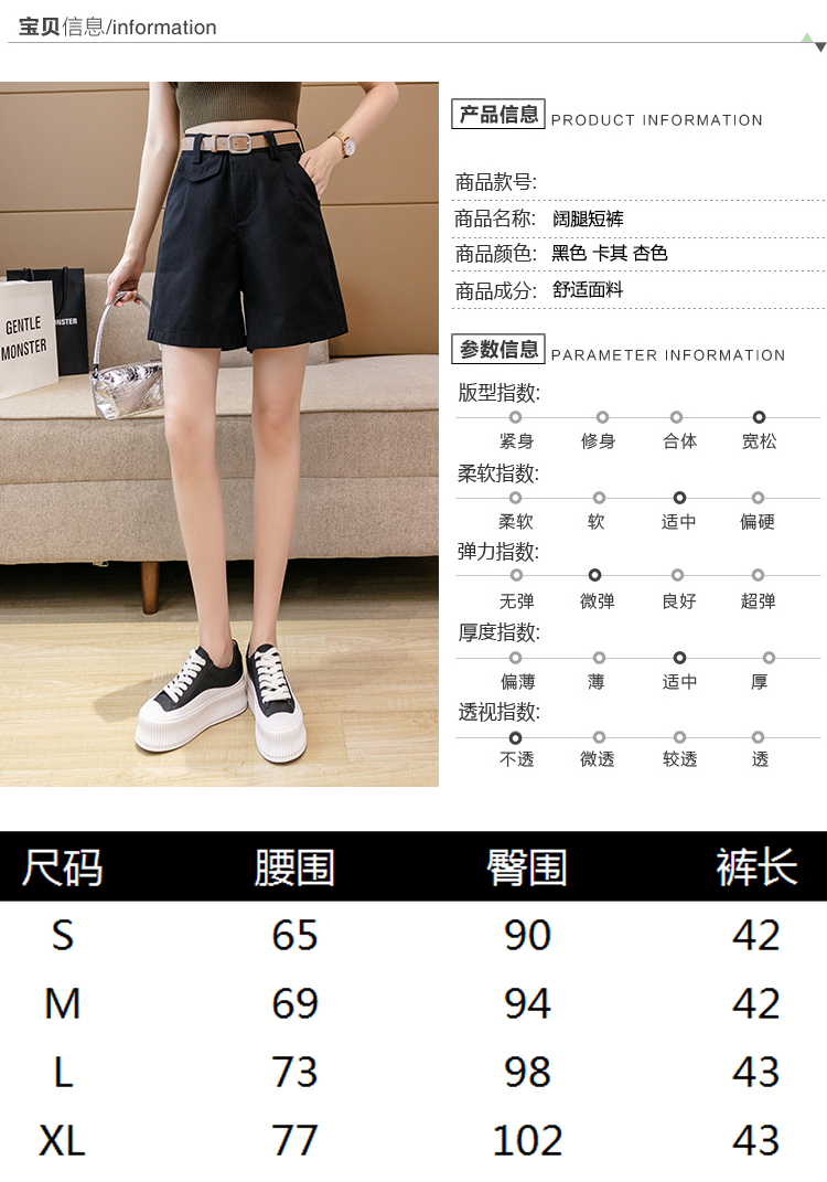 MY17614# 休闲裤百搭工装裤阔腿裤高腰A字短裤腰带中裤外穿女裝貨源服裝批發