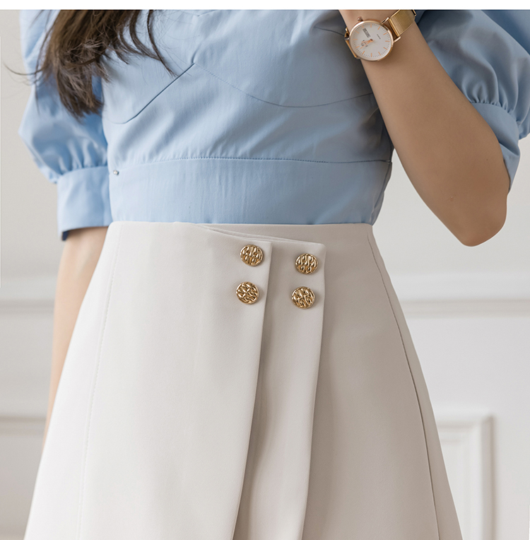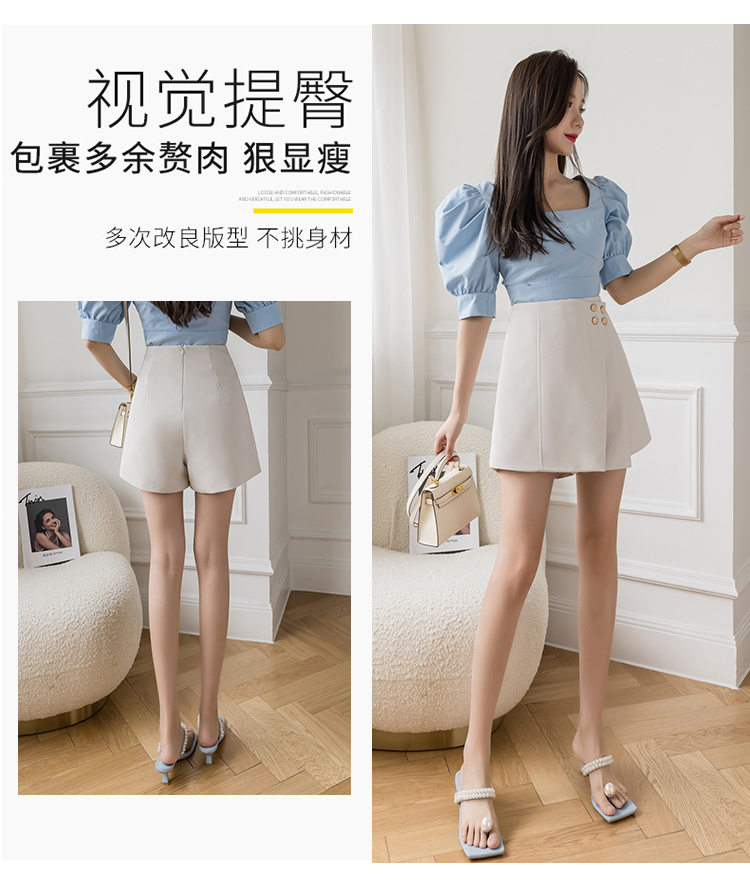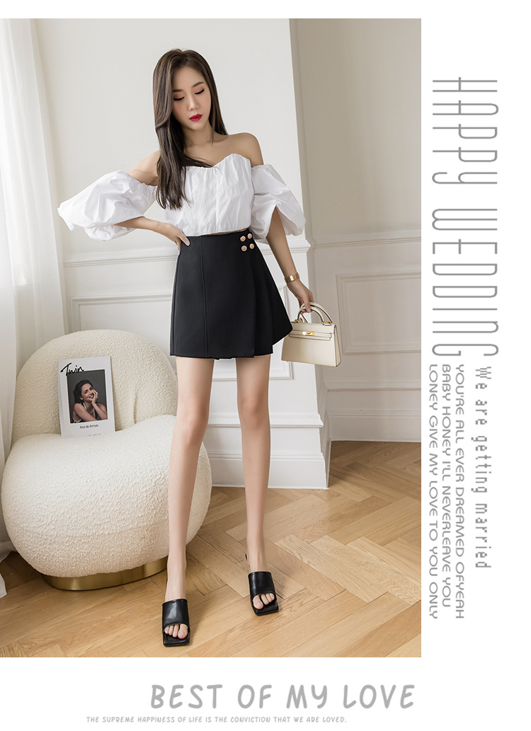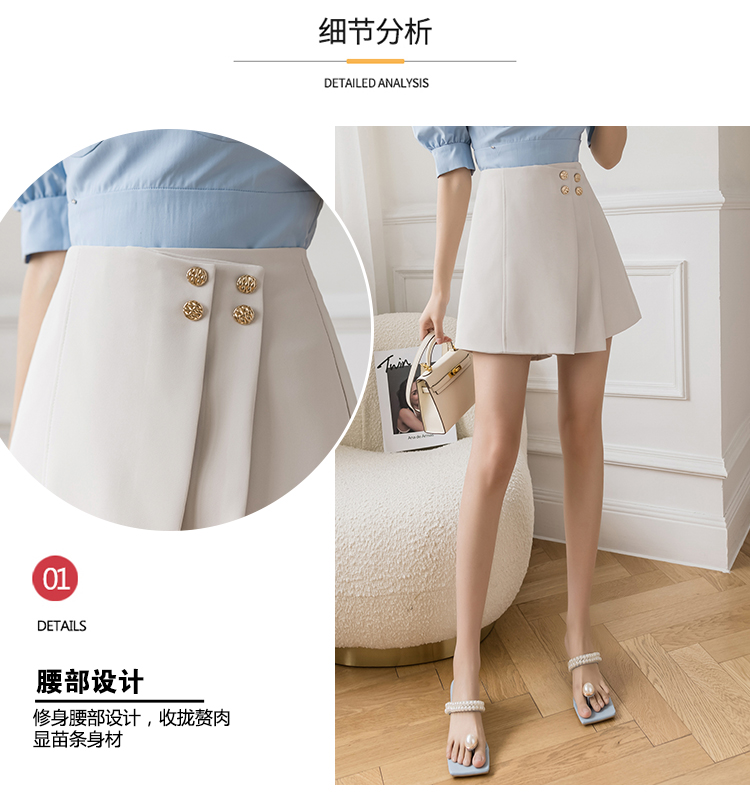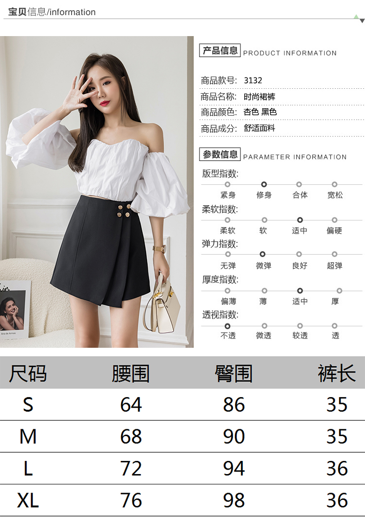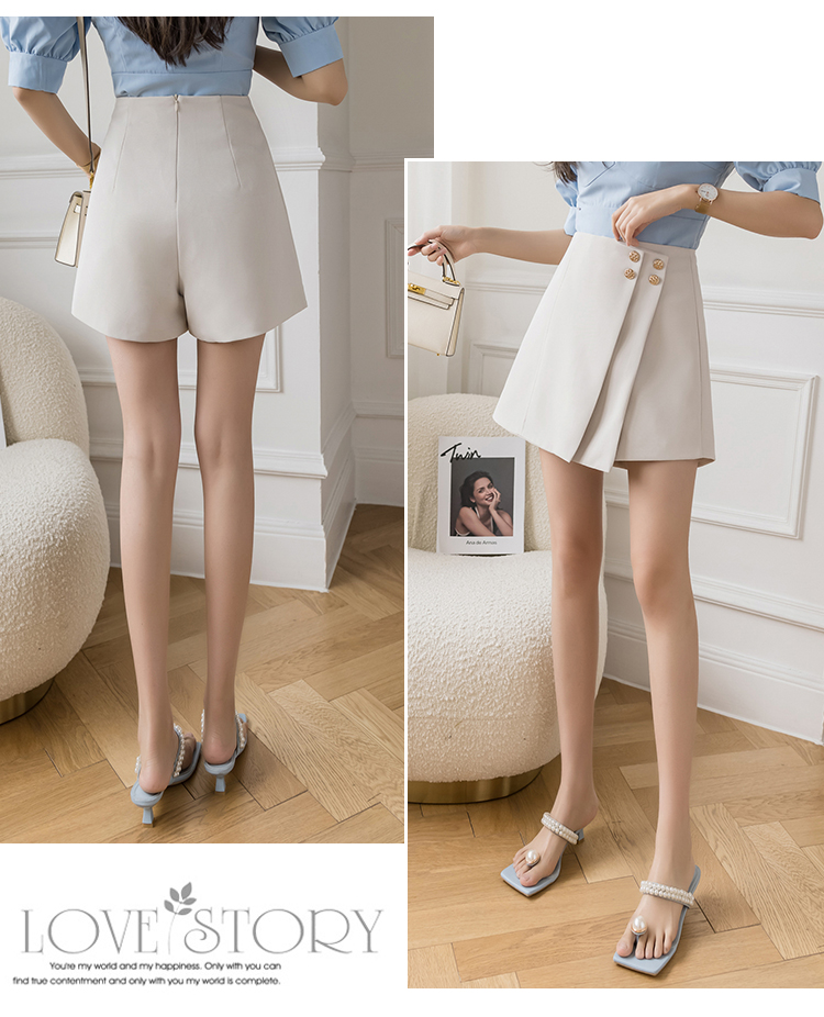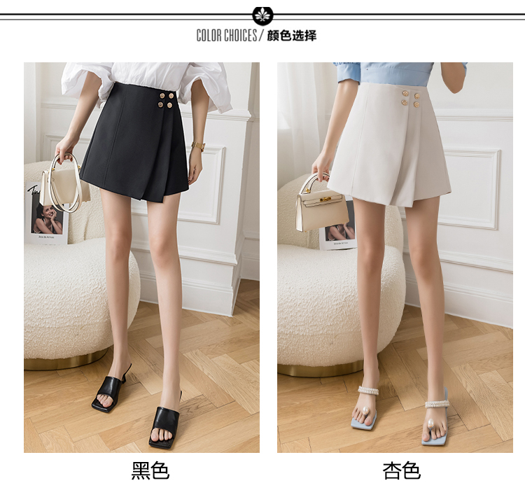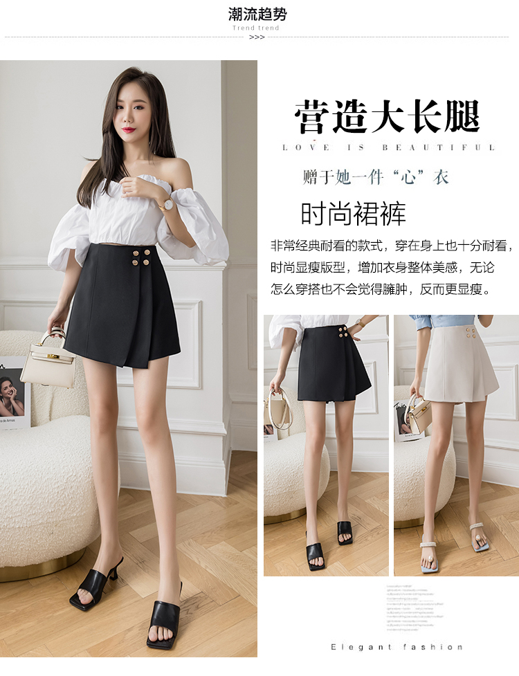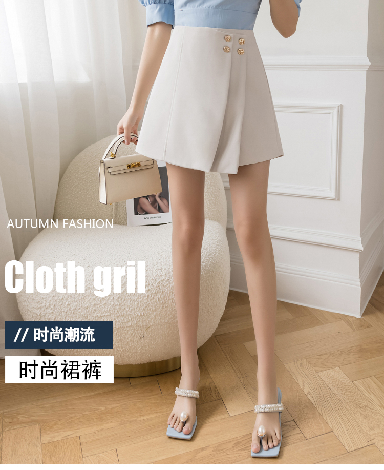 MY17616# 韩版A字半身裙裤百搭金属纽扣阔腿短裤外穿裤裙女女裝貨源服裝批發