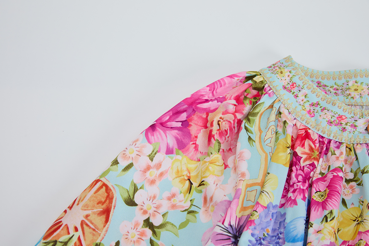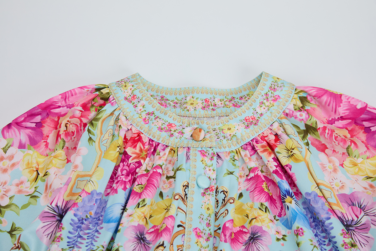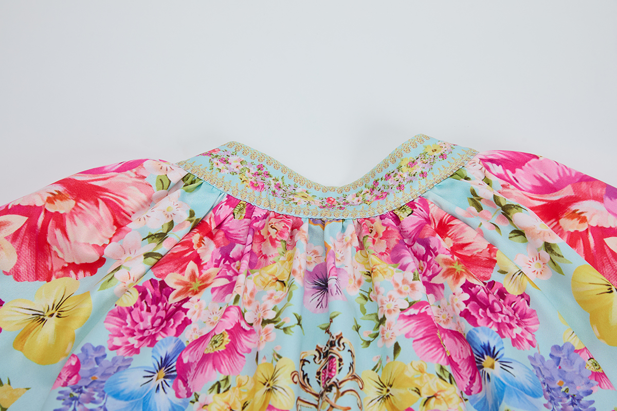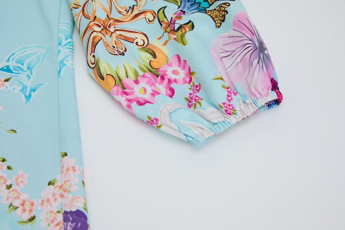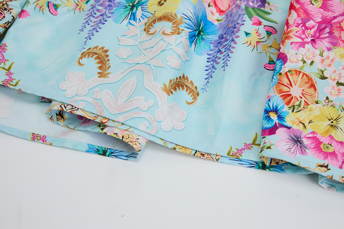 MY17625# 欧美定位印花立领系带收腰连衣裙 三层大摆长裙女裝貨源服裝批發