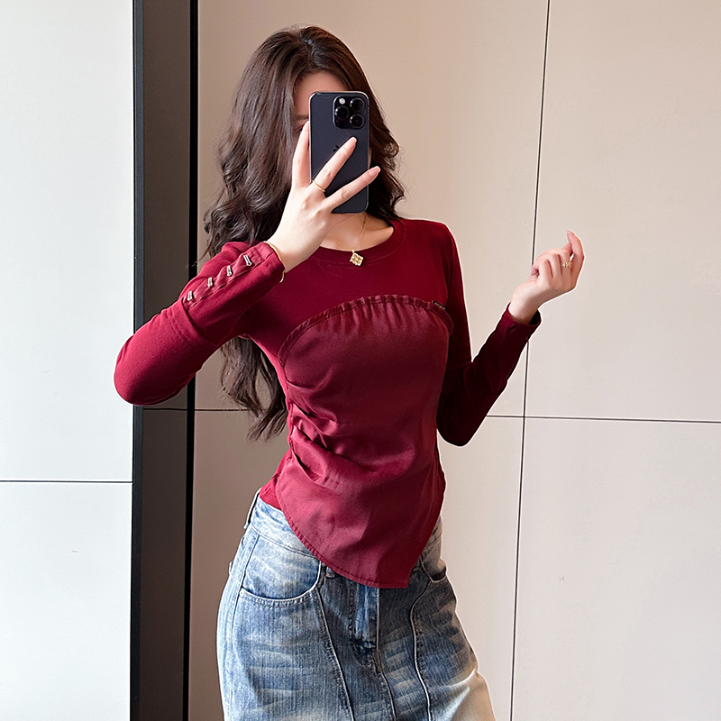 MY17629# 新款高级感超好看软糯慵懒风拼接减龄拼接针织衫长袖女女裝貨源服裝批發