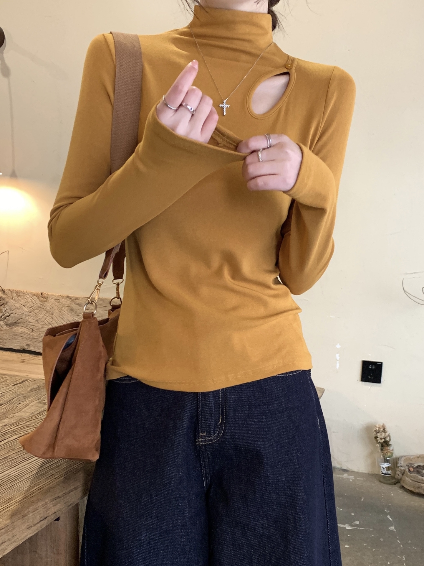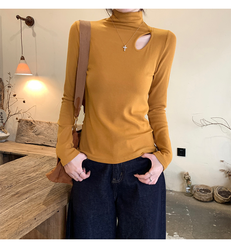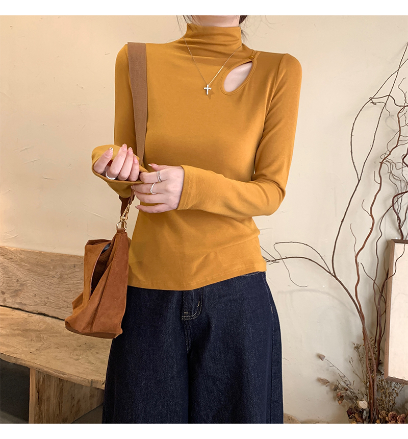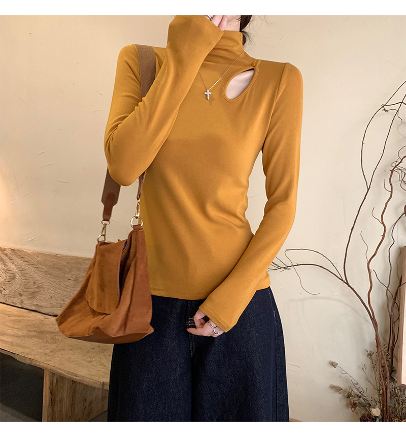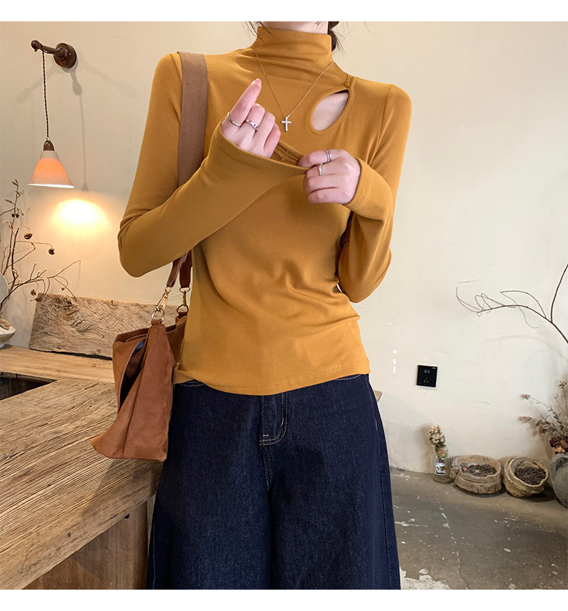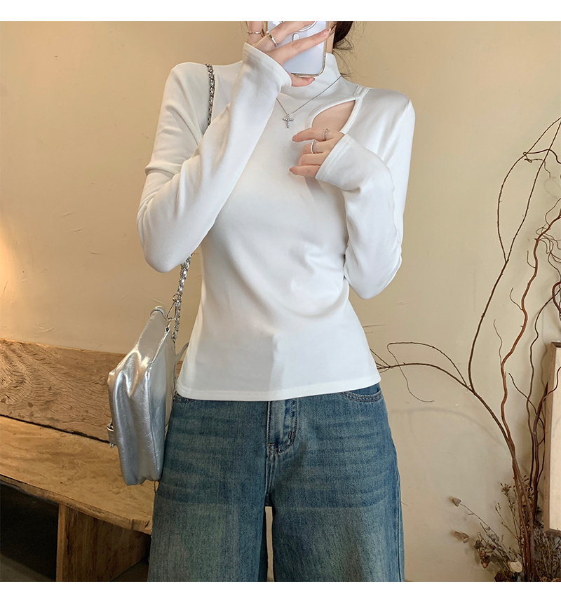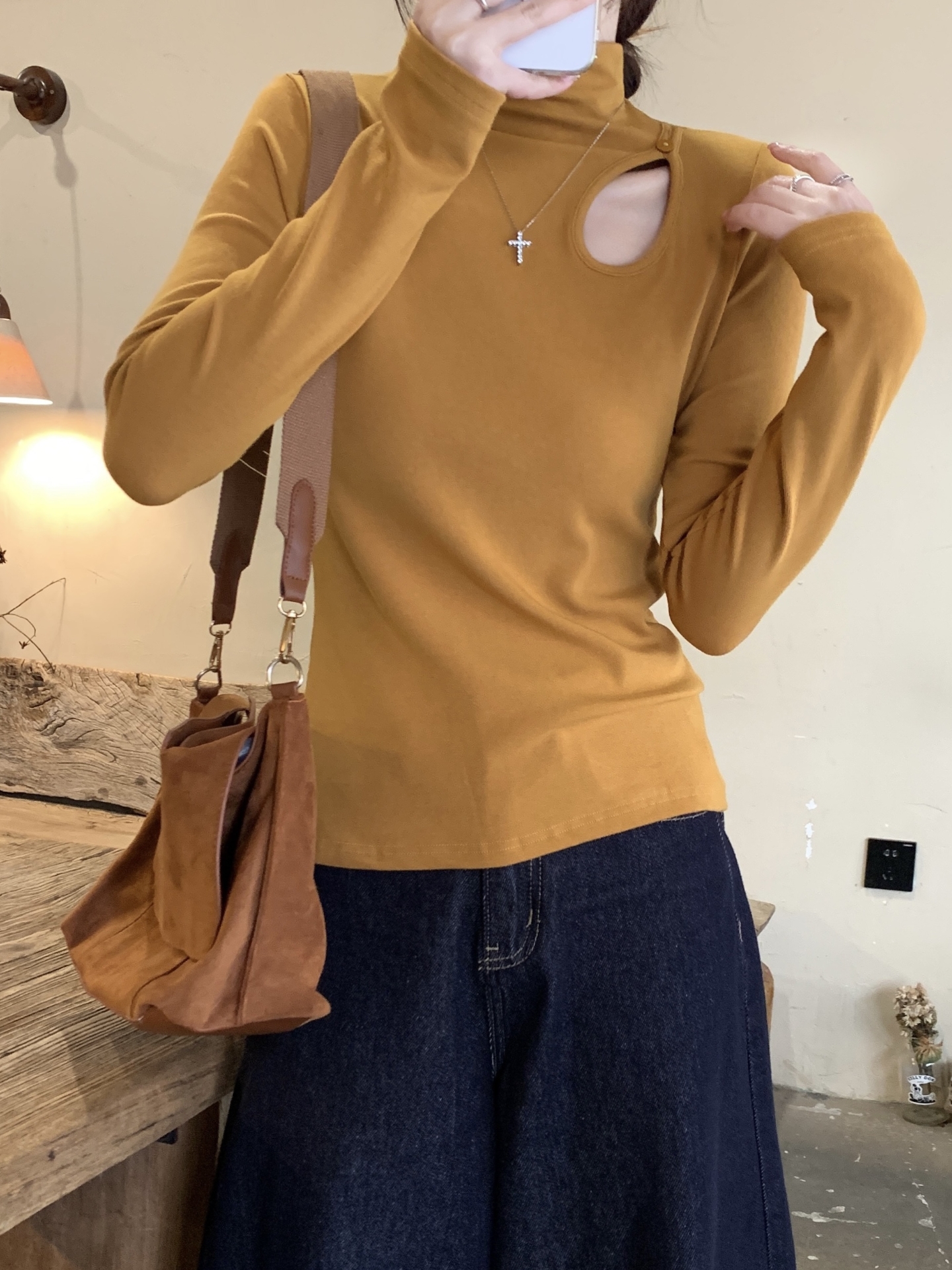 MY17654# 镂空露肩长袖t恤新款洋气磨毛薄绒修身内搭打底衫上衣女裝貨源服裝批發