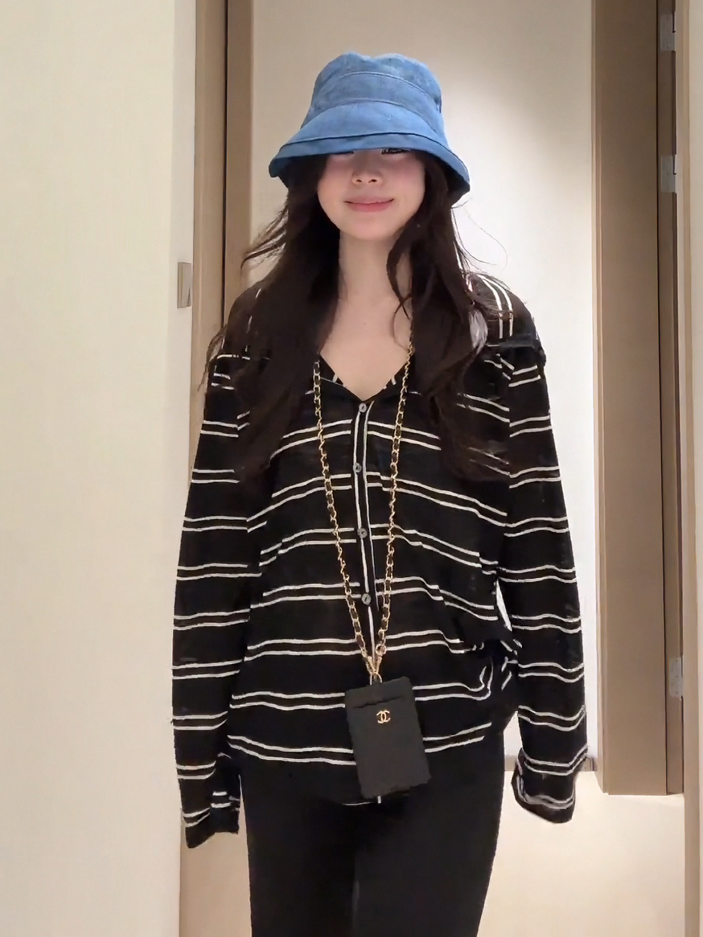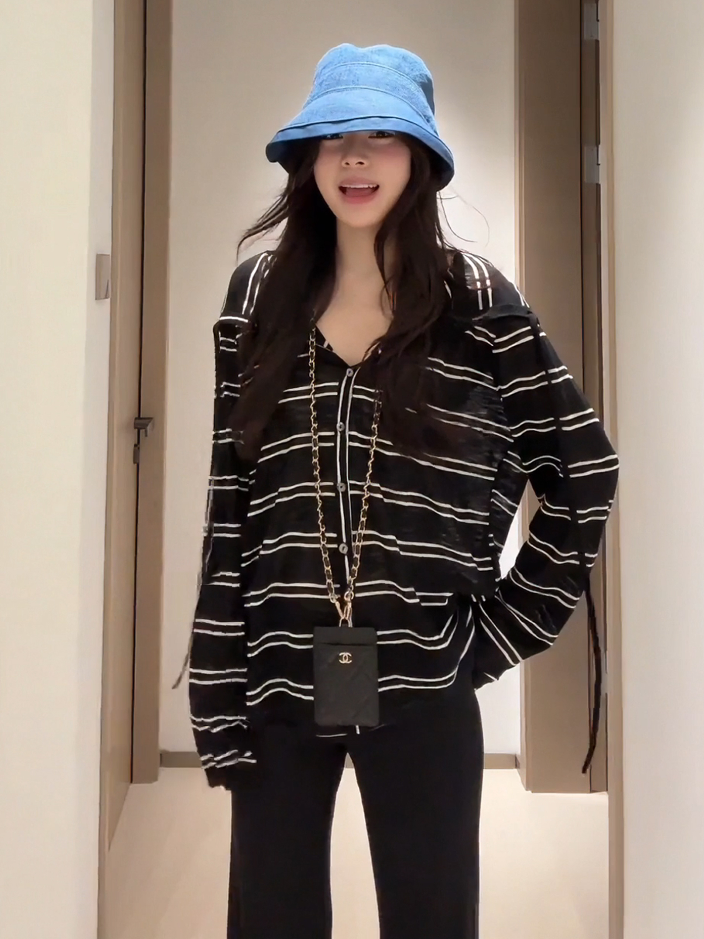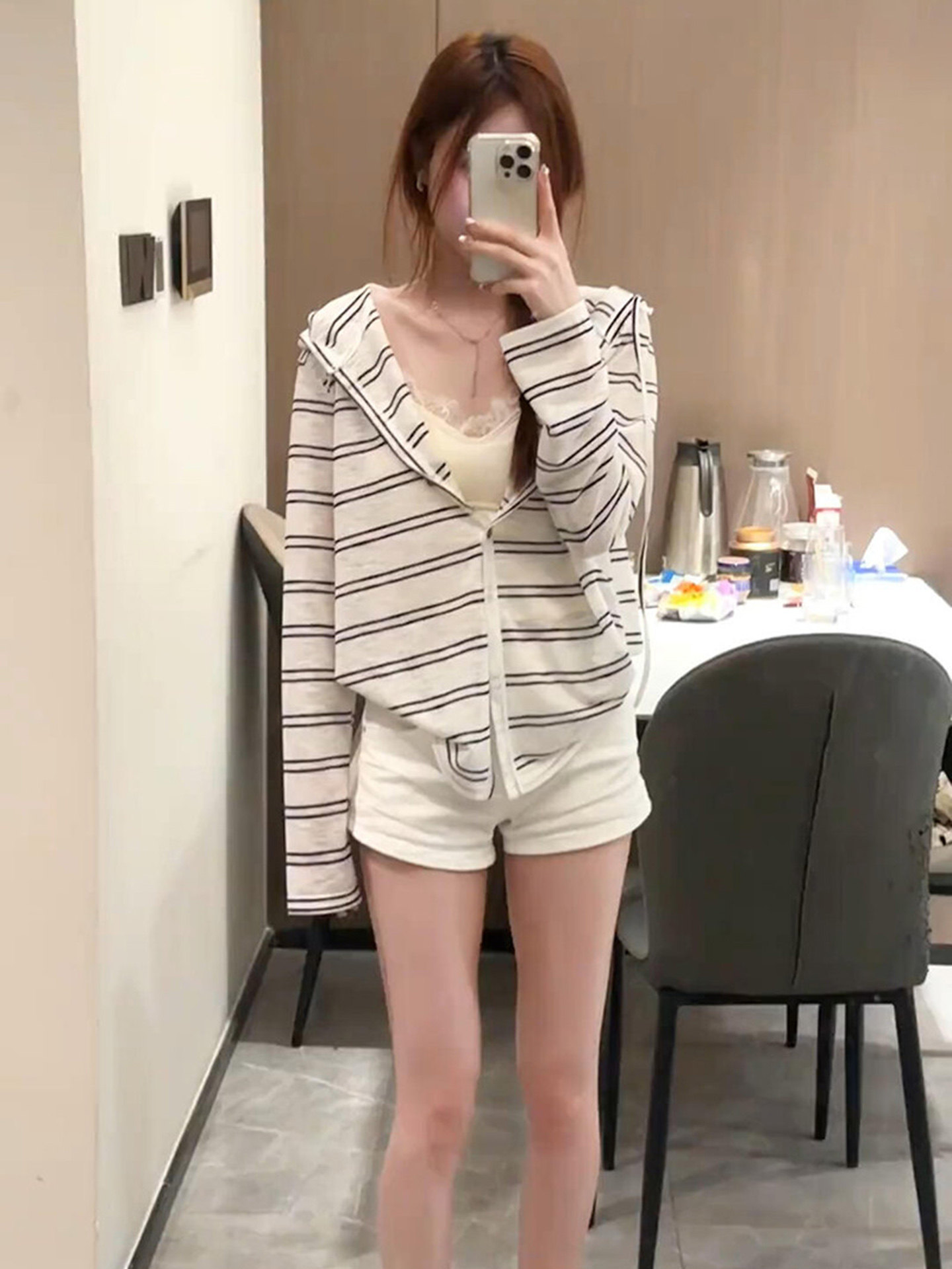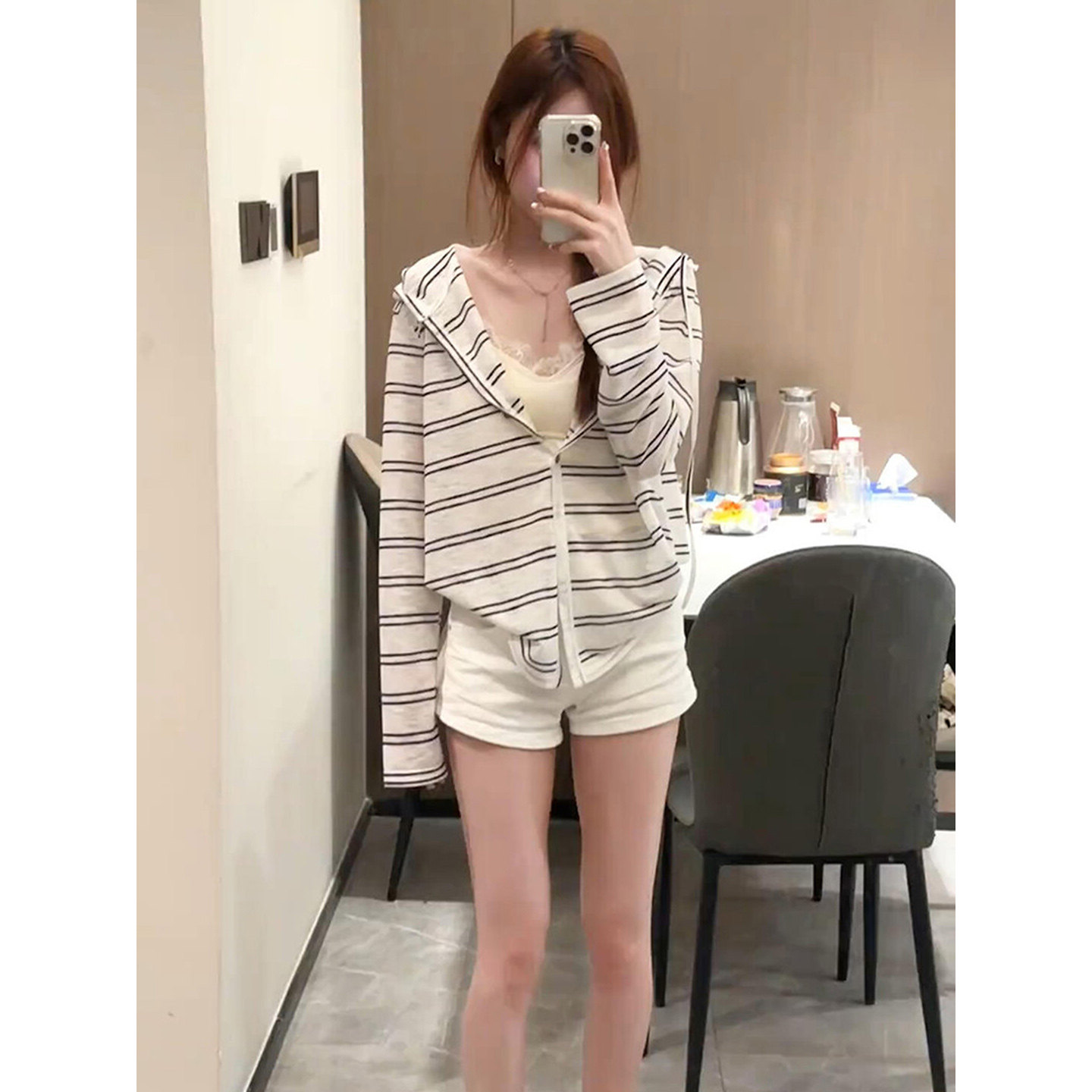 RY70055# 连帽条纹开衫女春秋韩系慵懒风上衣小外套