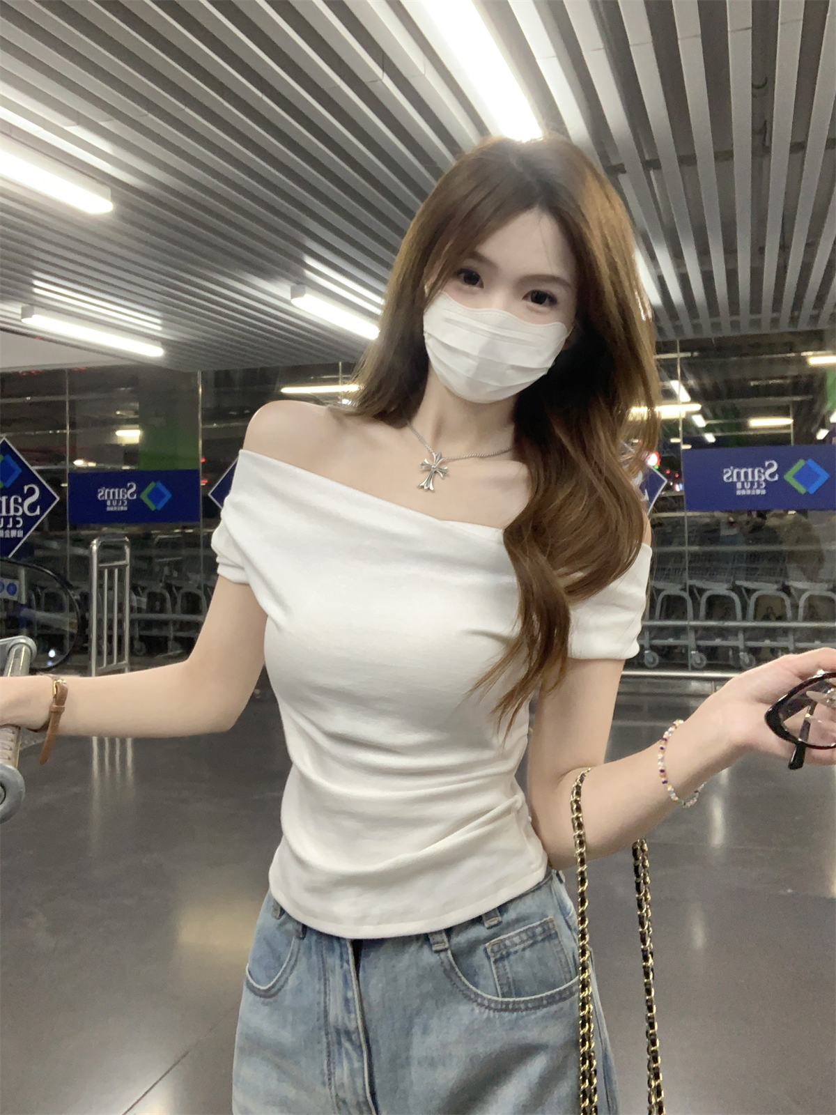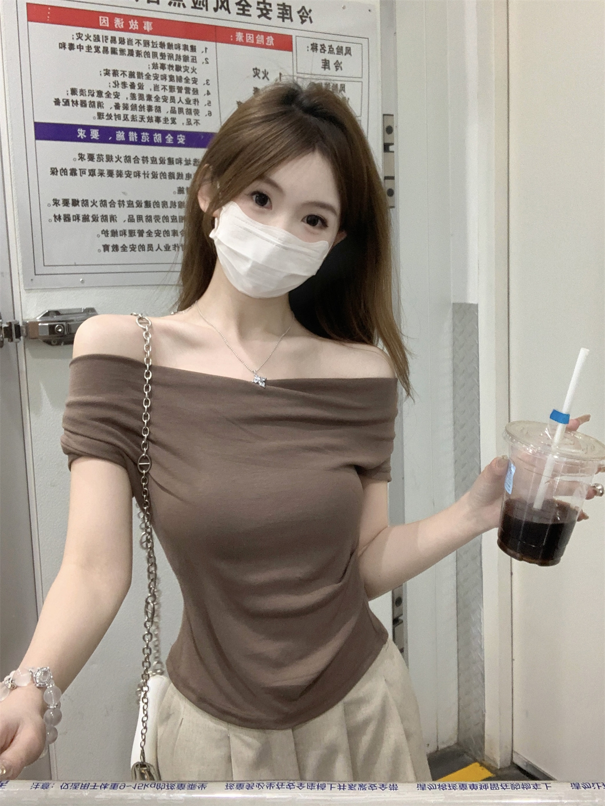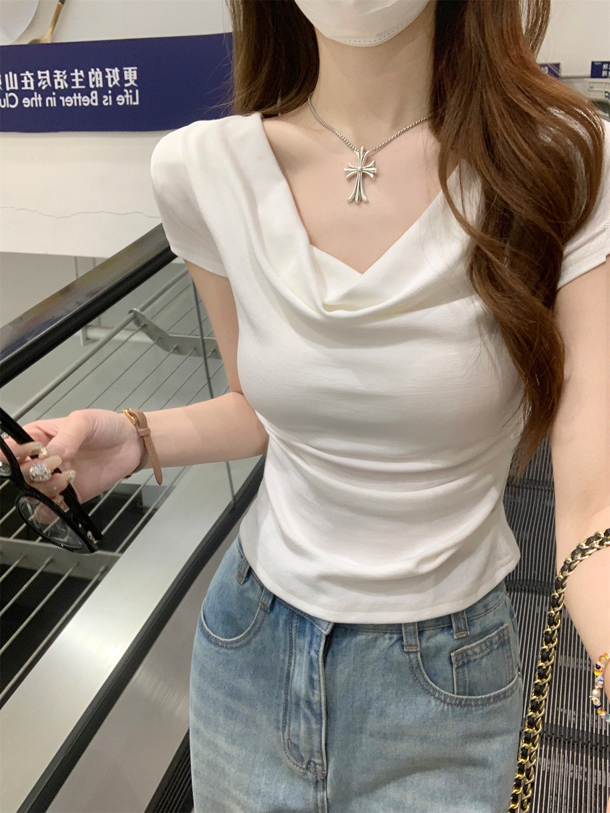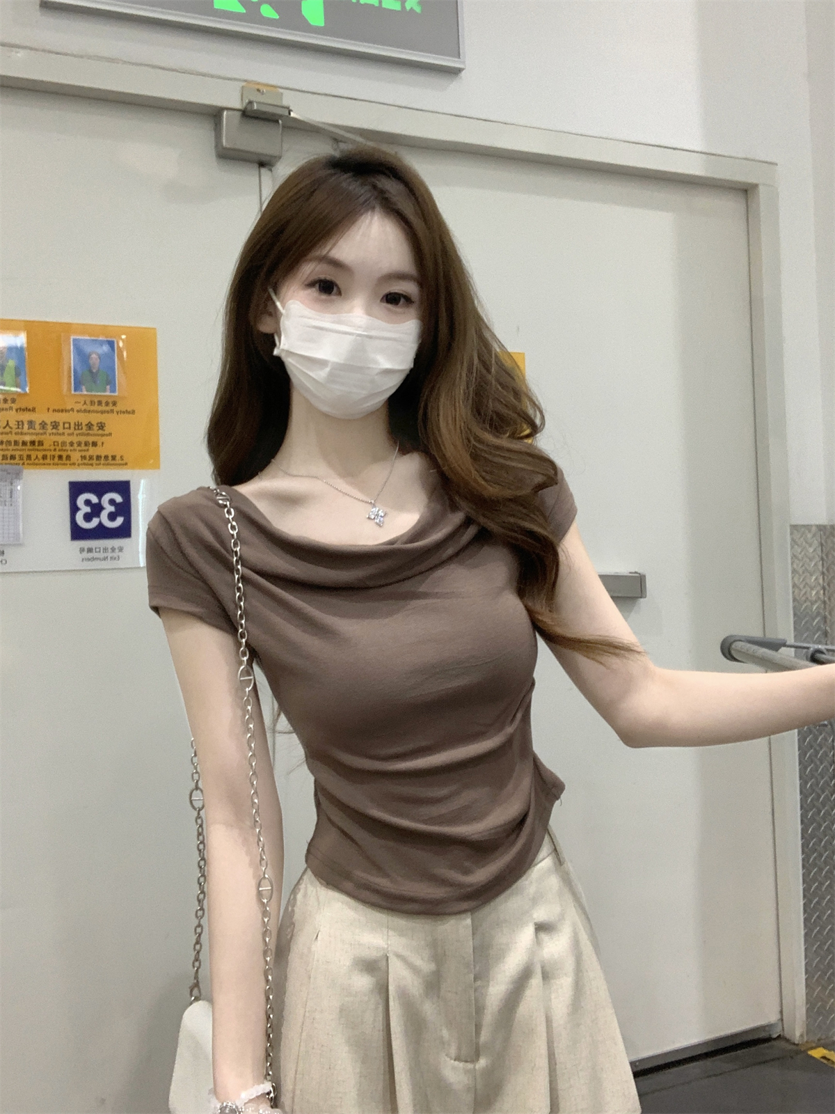 RY70130# 春夏韩版纯欲荡领气质一字肩修身显瘦设计短袖T恤上衣女