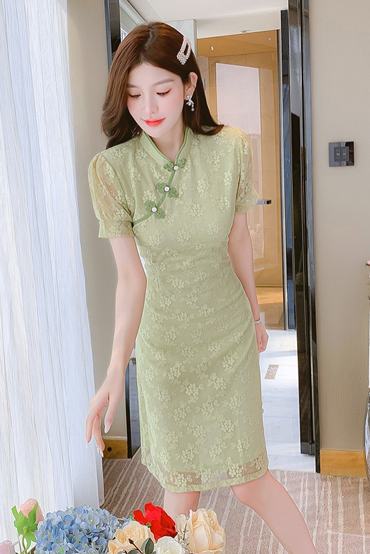 RY145# 新中式国风改良旗袍高级感年轻款少女日常时尚气质显瘦蕾丝连衣裙