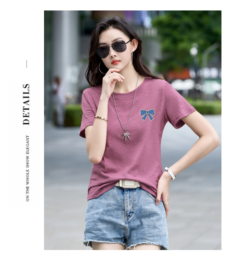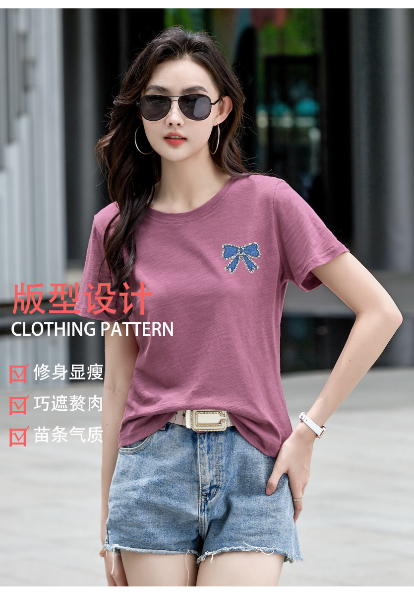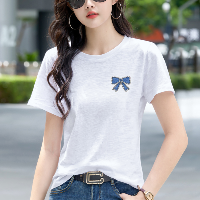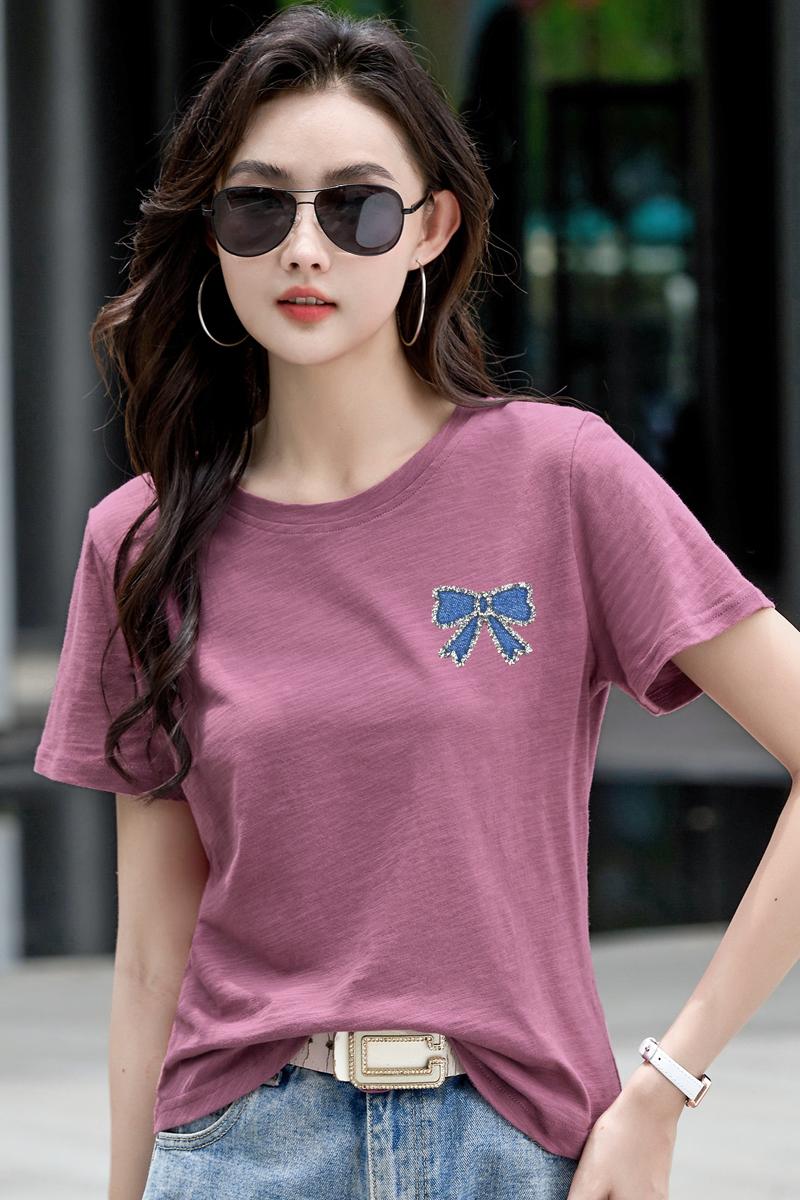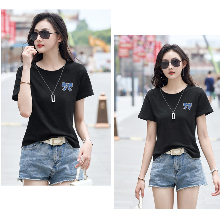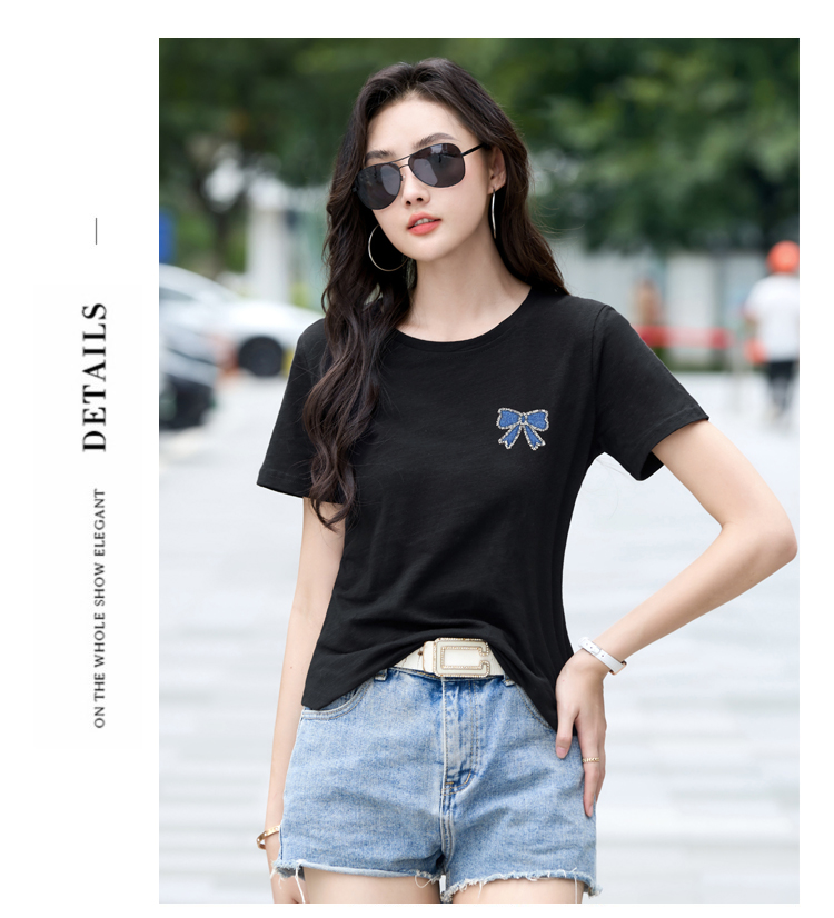 RY153# 2026新款正肩纯棉短袖T恤女ins时尚百搭洋气减龄显瘦上衣体恤夏季